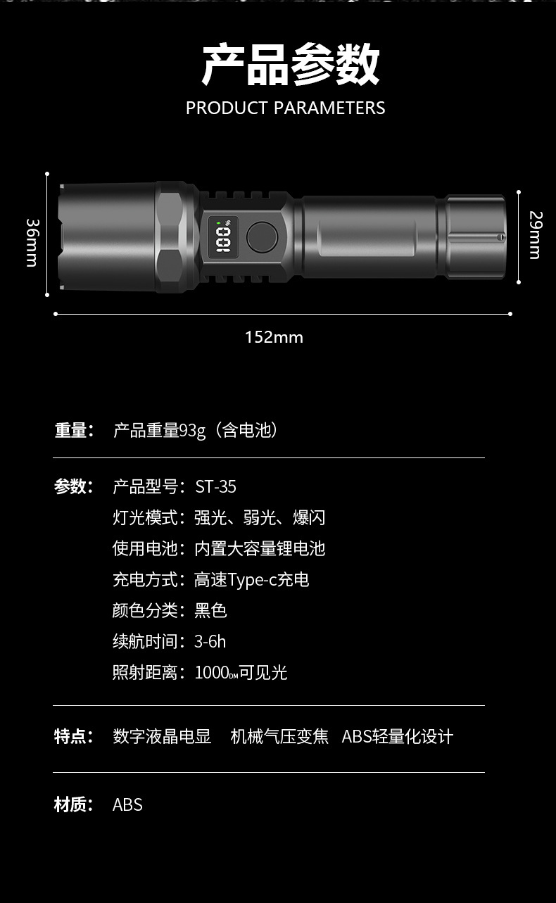 • 흰색 레이저 심지 LCD 디지털 디스플레이(손전등 + 충전 케이블 + 끈 + 색상 상자)
