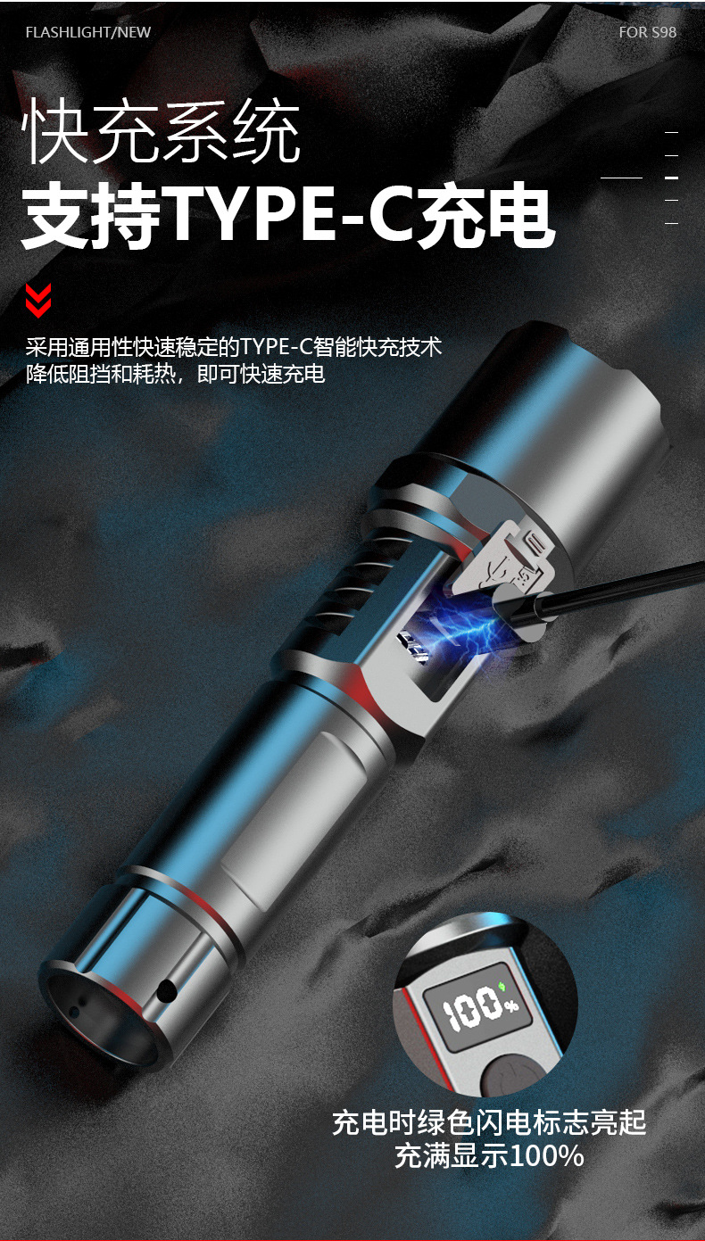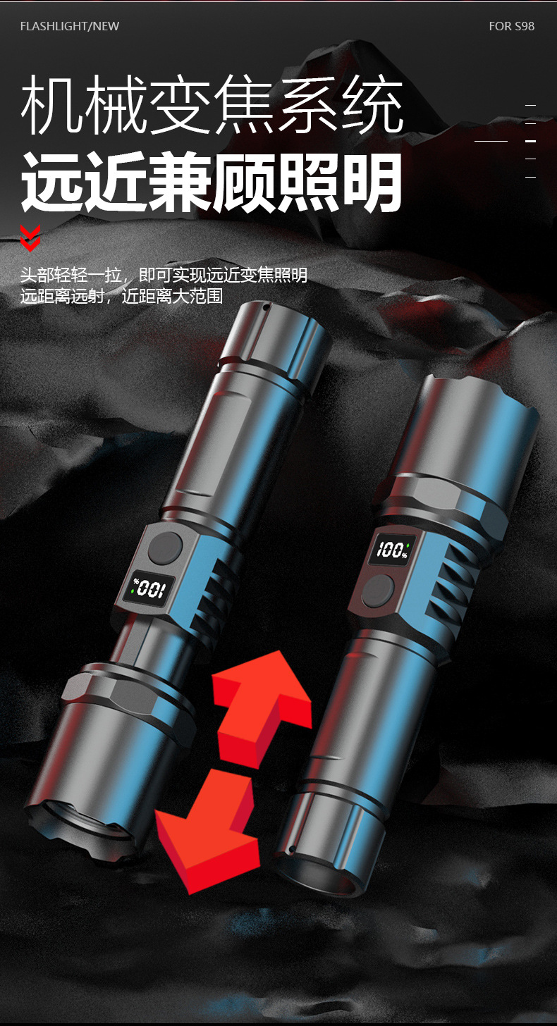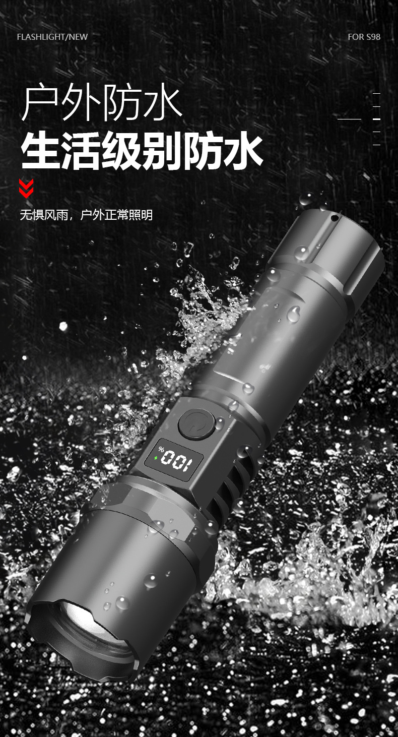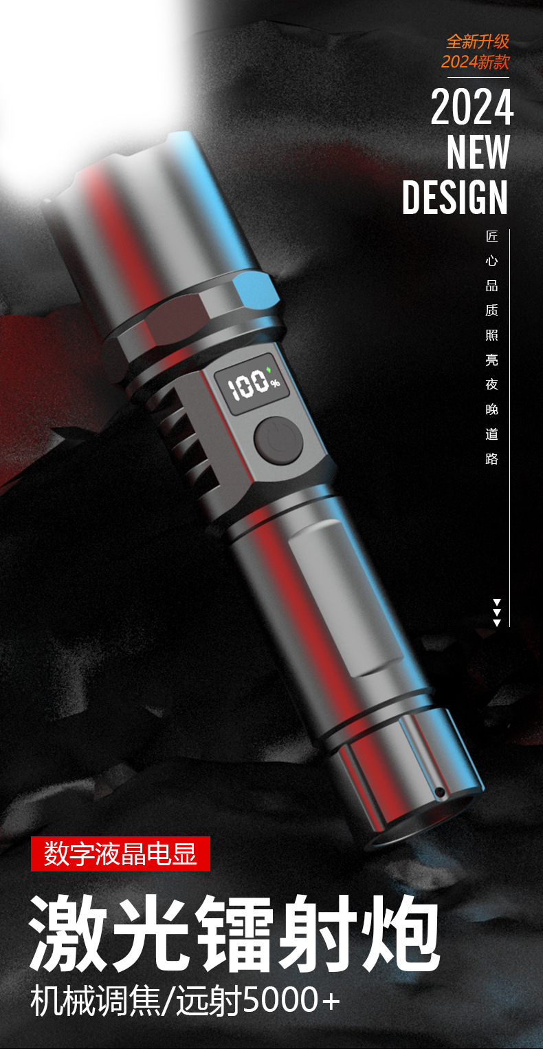 국경 간 디지털 디스플레이 손전등 충전 긴 배터리 수명 휴대용 led 울트라 밝은 줌 레이저 야외 조명 손전등스토어 가기