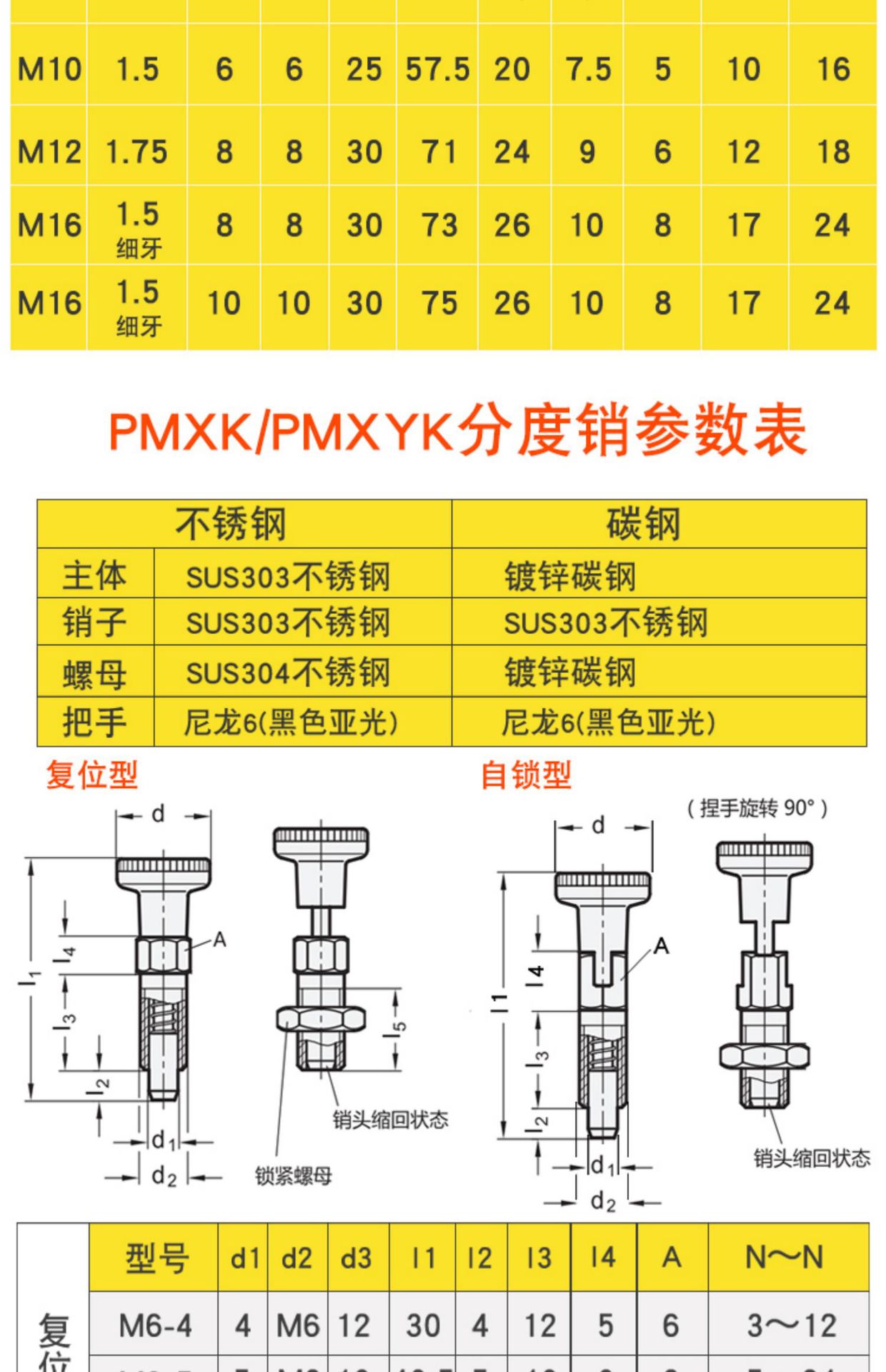링 인덱싱 핀 두께와 미세 치아 손잡이 플런저 자체 잠금 리셋 핀 스프링 포지셔닝 핀 PMXK/PMXYK