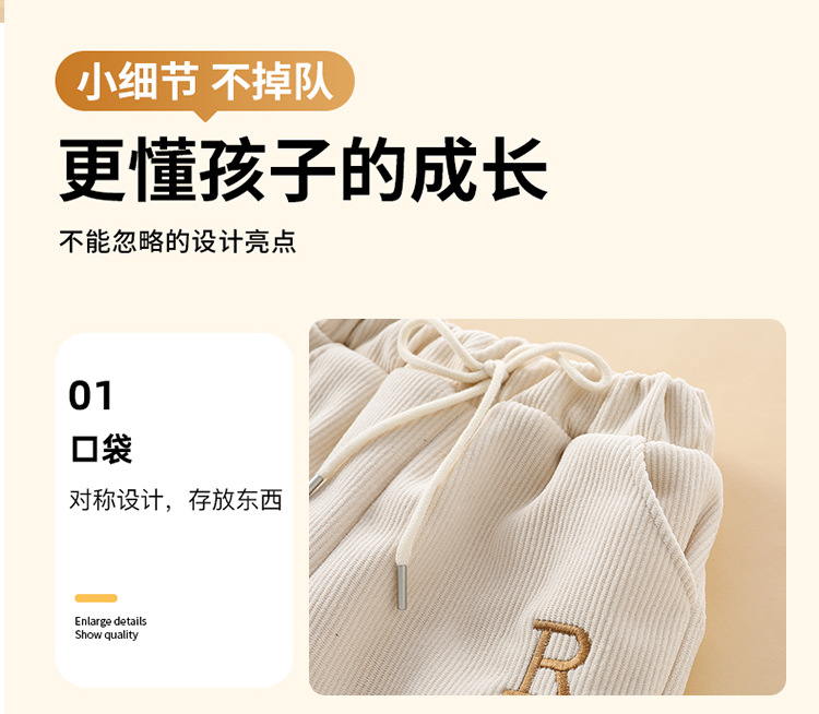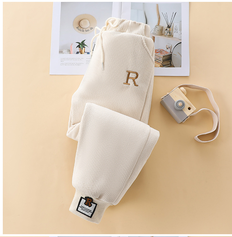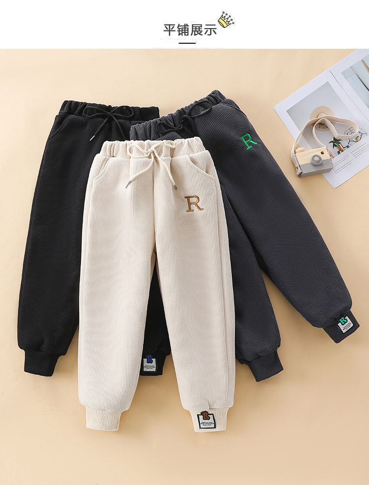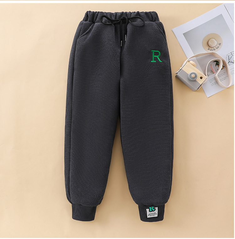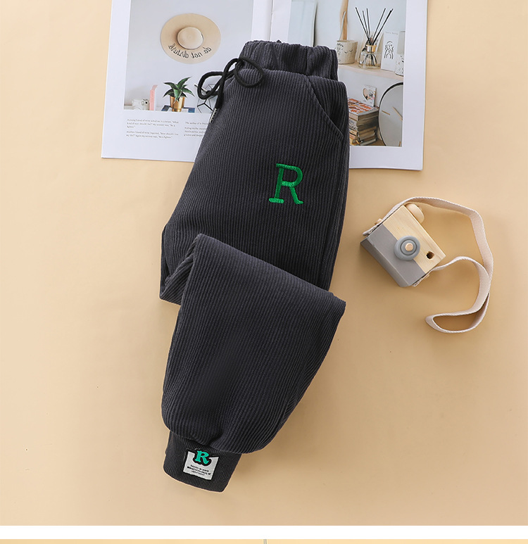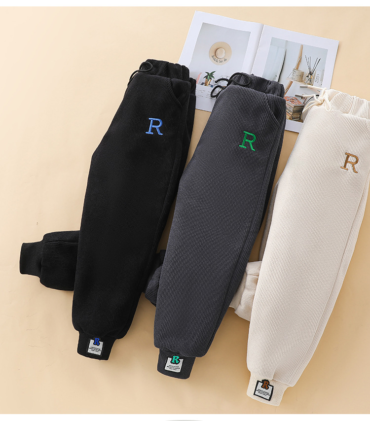 • 그레이 자수 R 두꺼운 코튼 팬츠