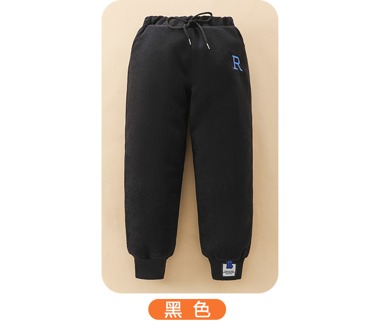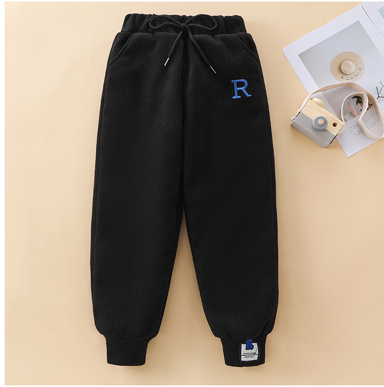 • 블랙 자수 R 두꺼운 코튼 팬츠