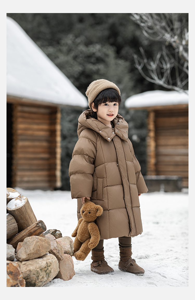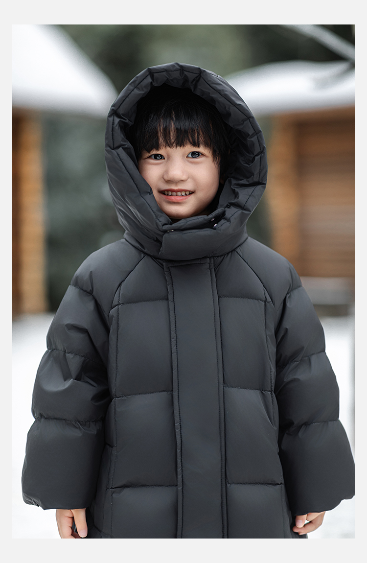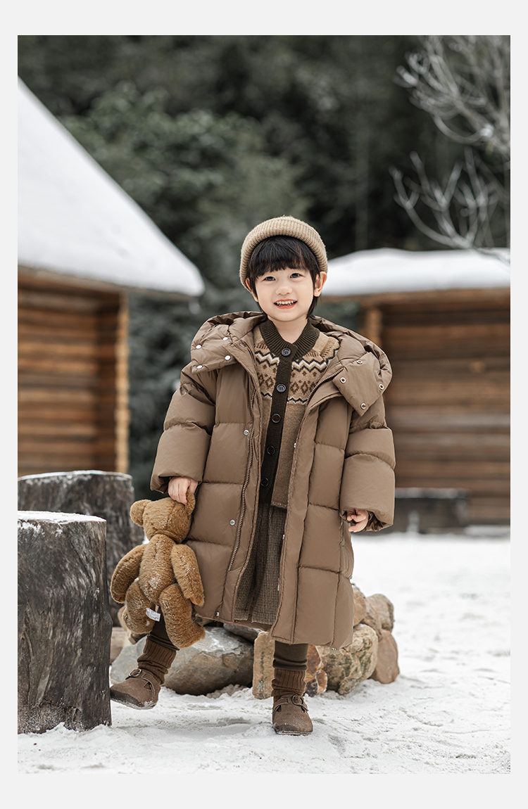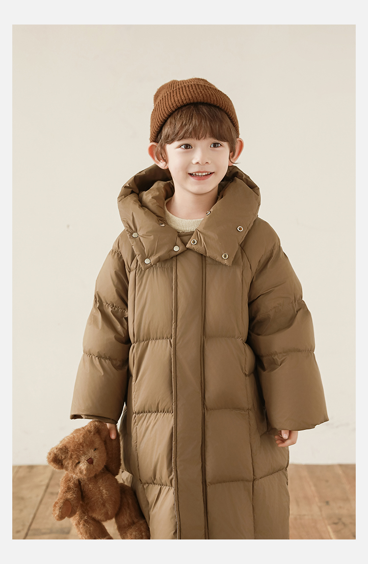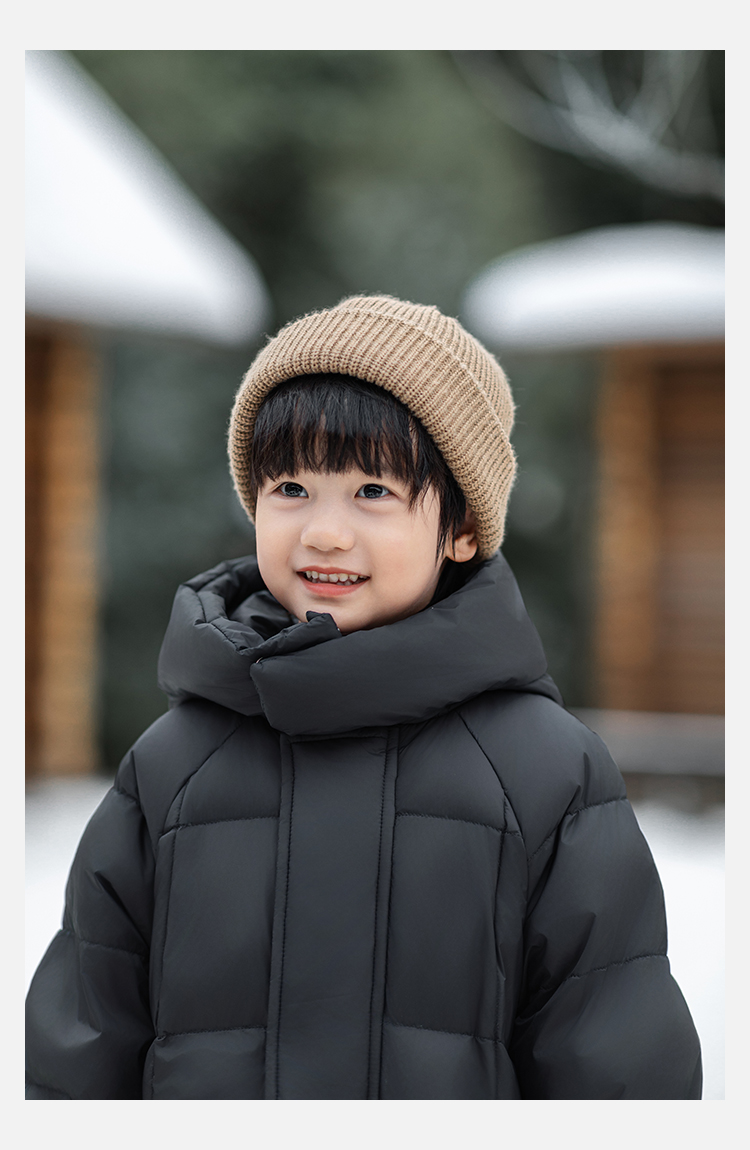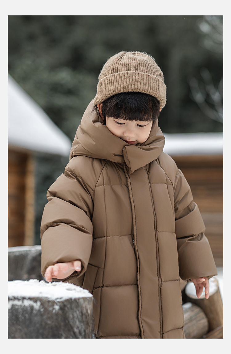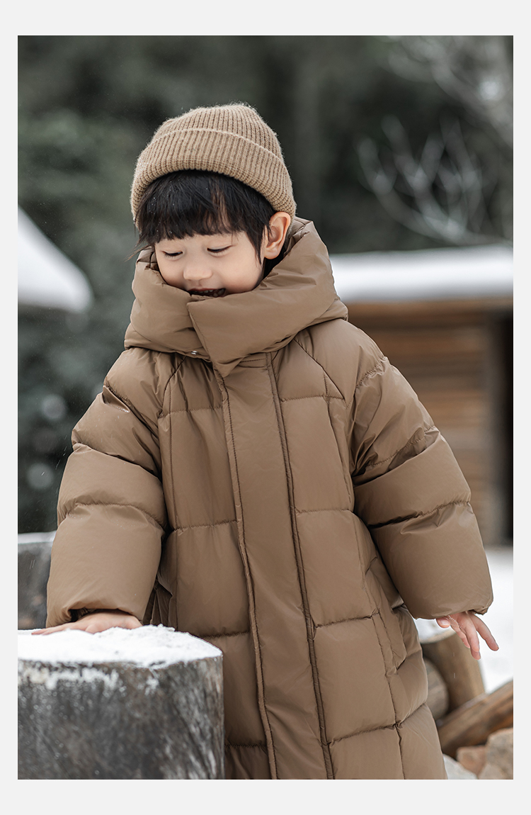 Wulibu Yinan 소년 다운 재킷 2025 신상 겨울 아동용 빨간색 중간 길이 후드 체크 무늬 두꺼운 재킷