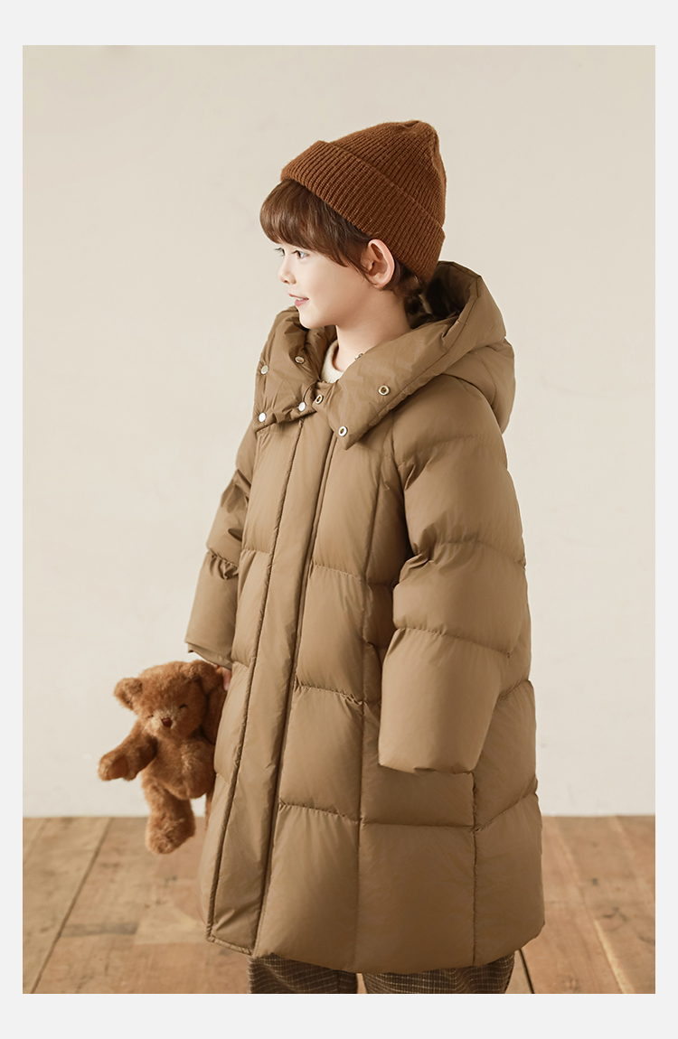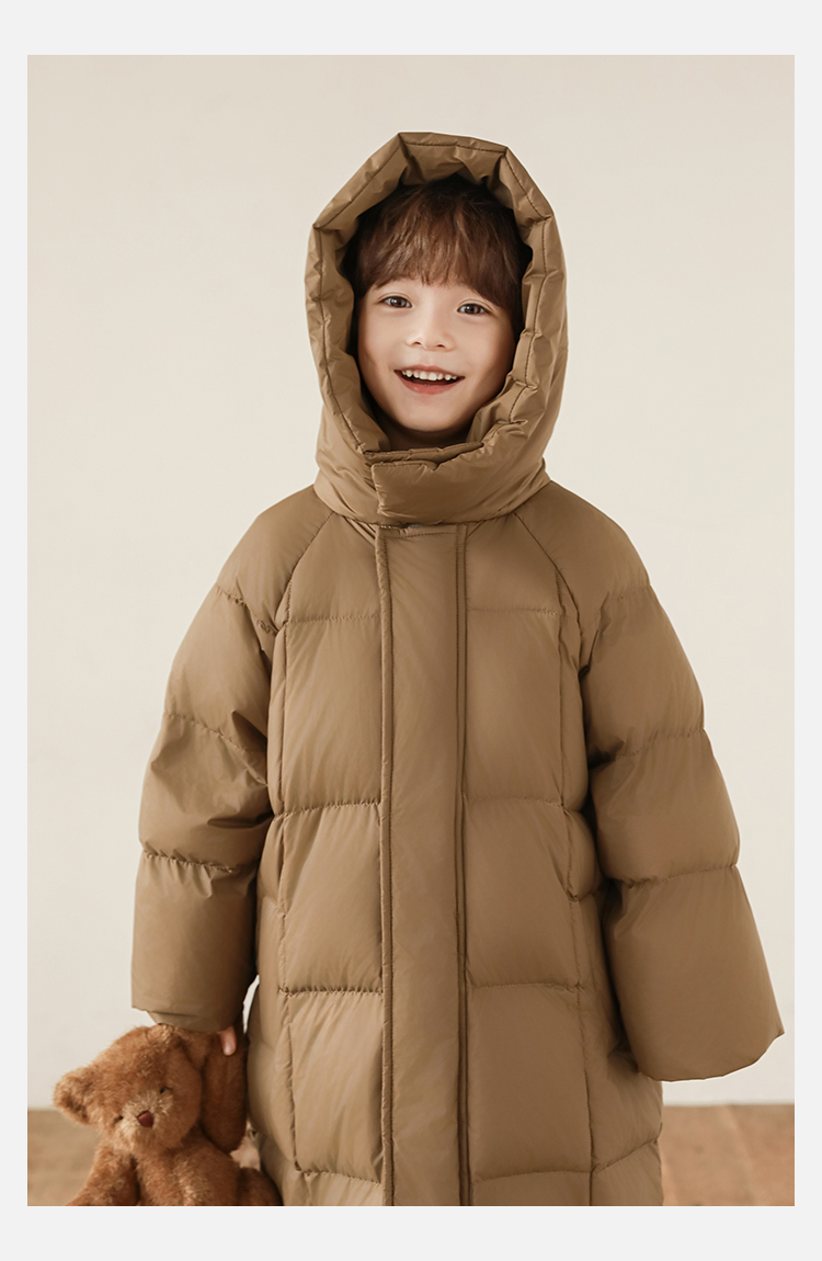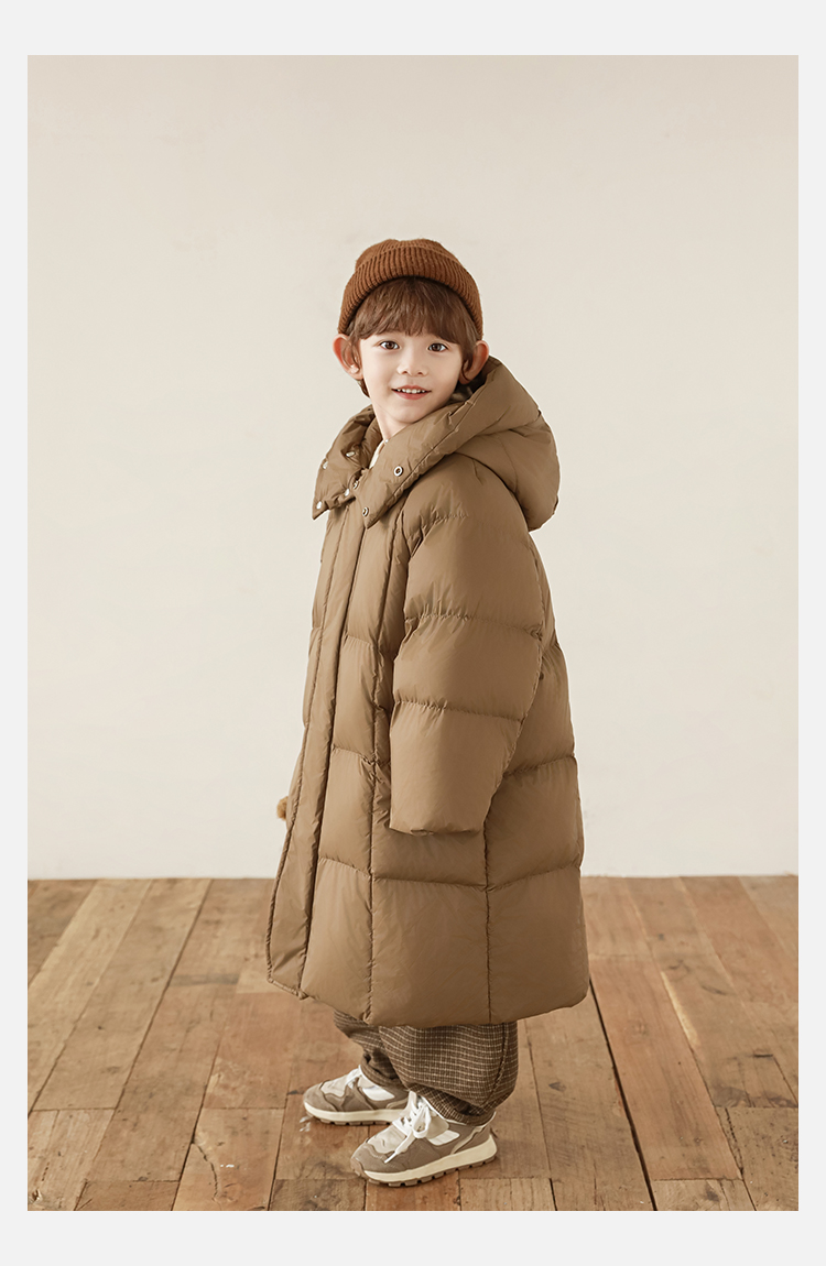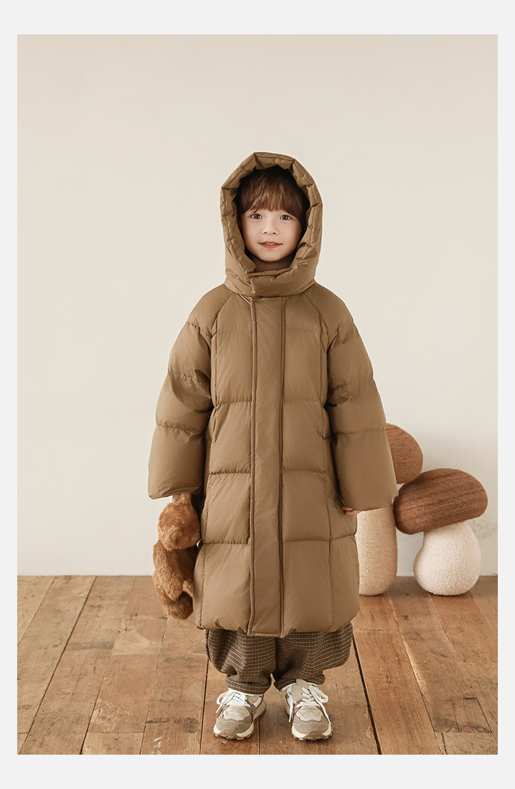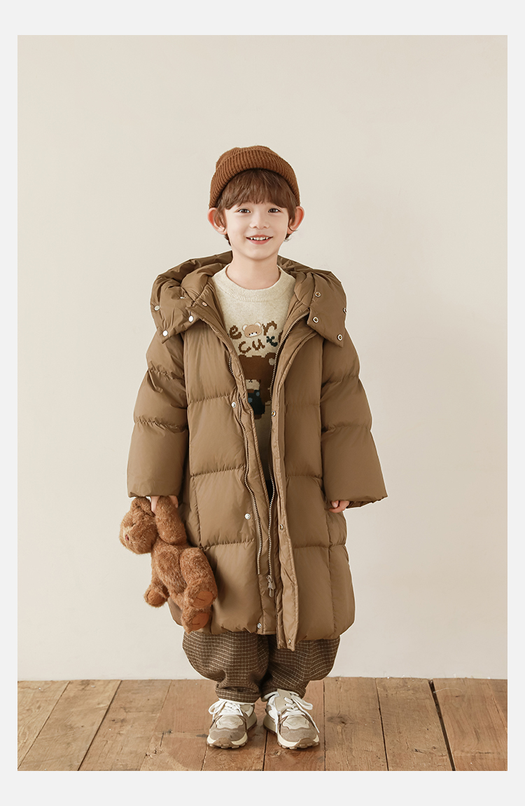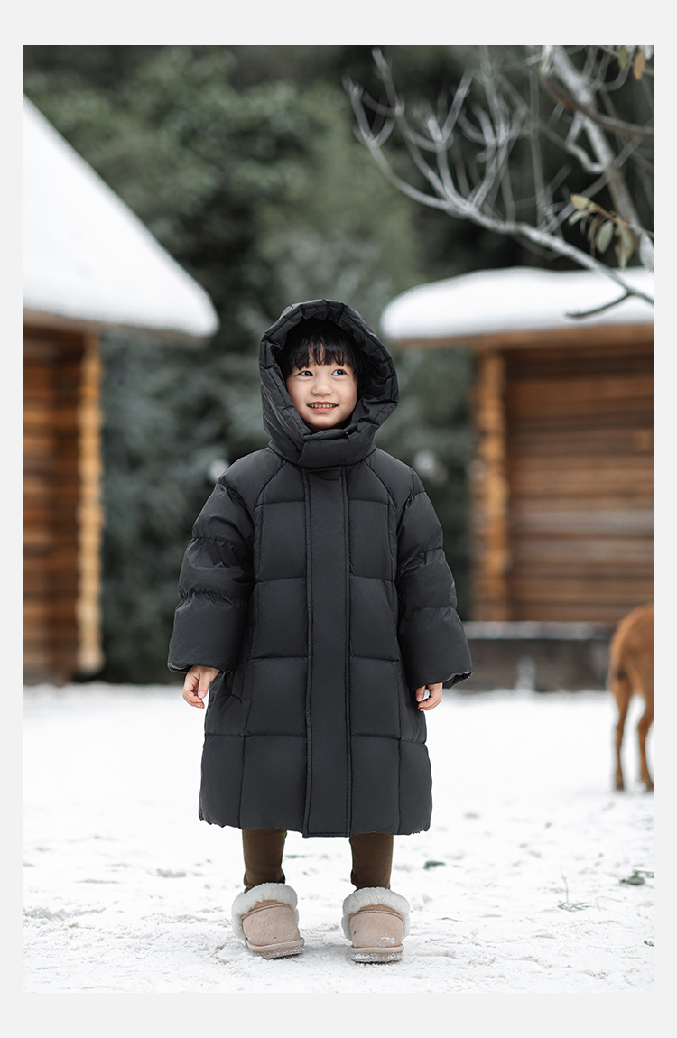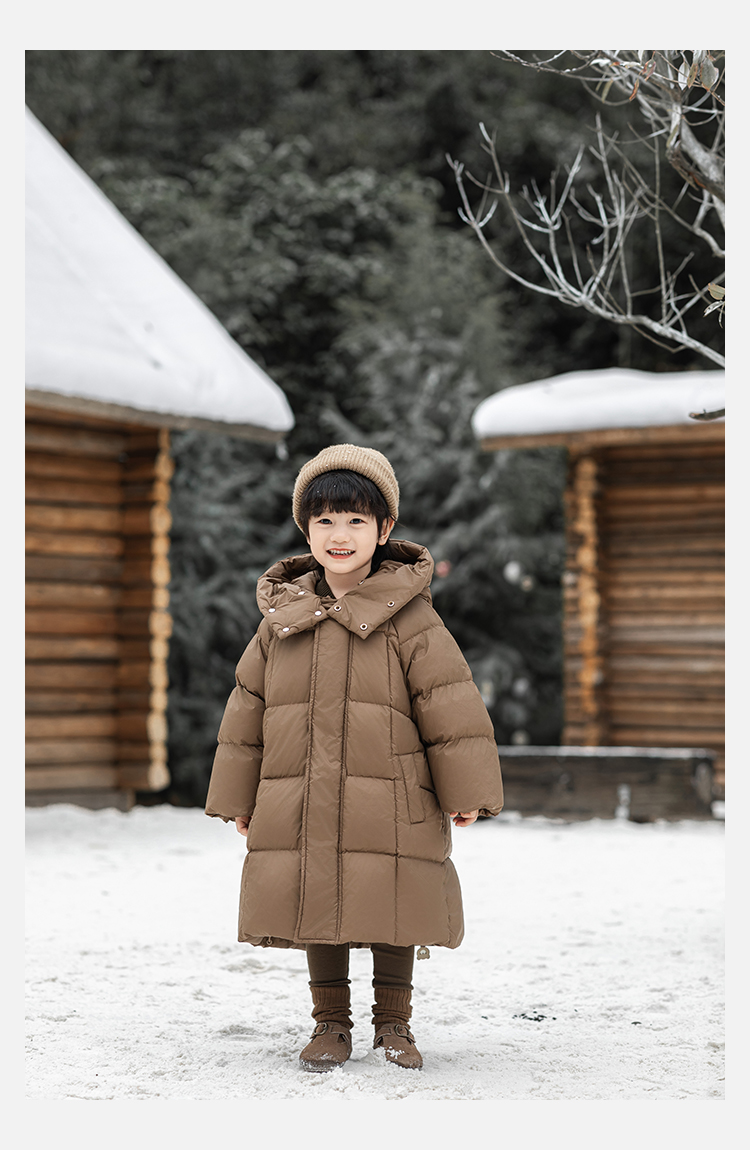 Wulibu Yinan 소년 다운 재킷 2025 신상 겨울 아동용 빨간색 중간 길이 후드 체크 무늬 두꺼운 재킷
