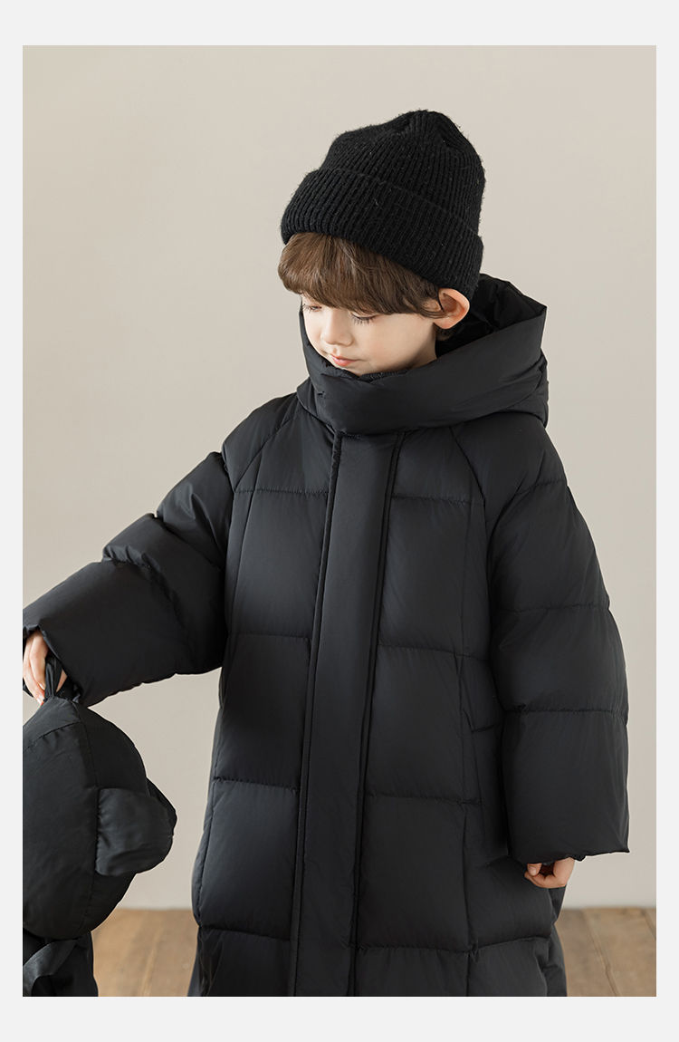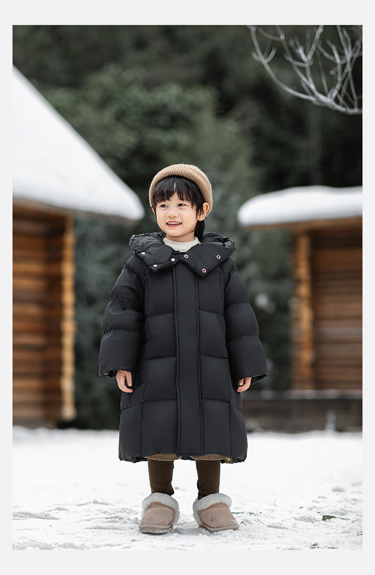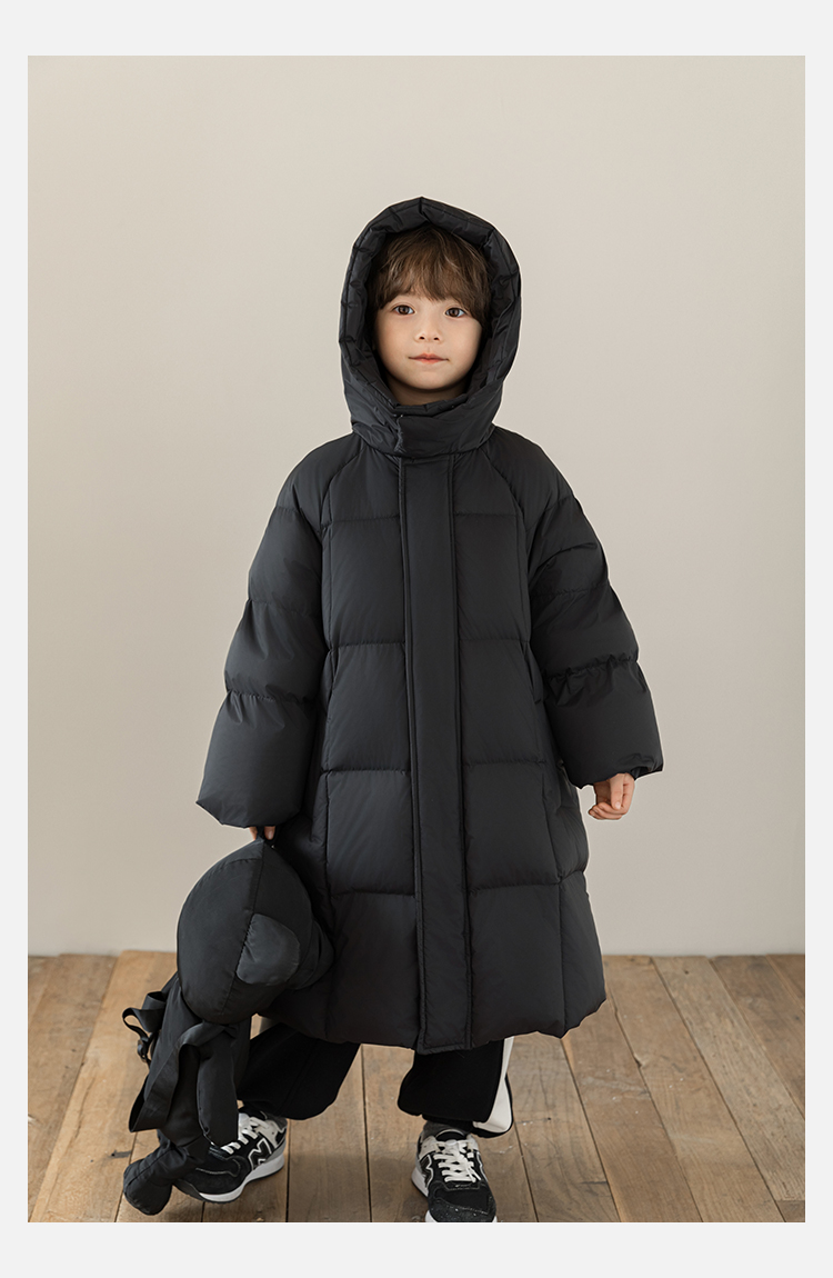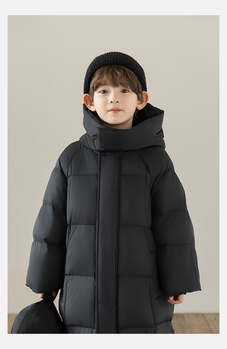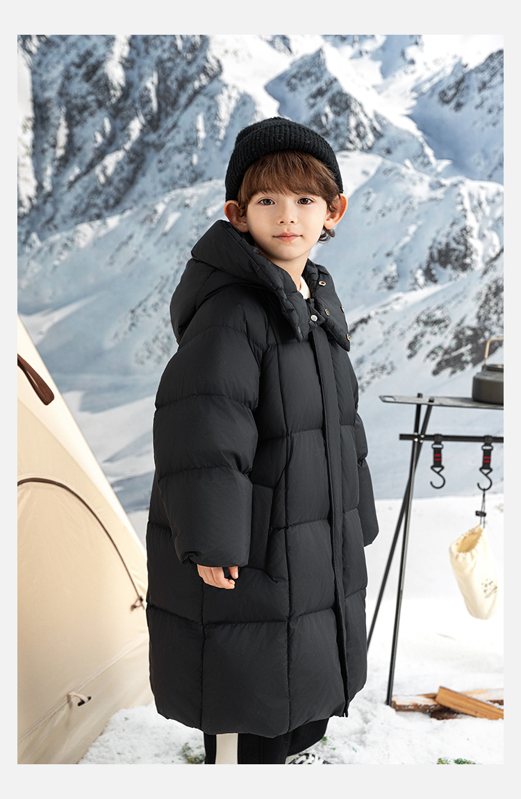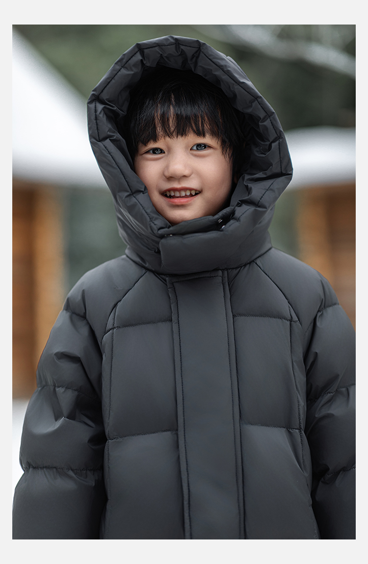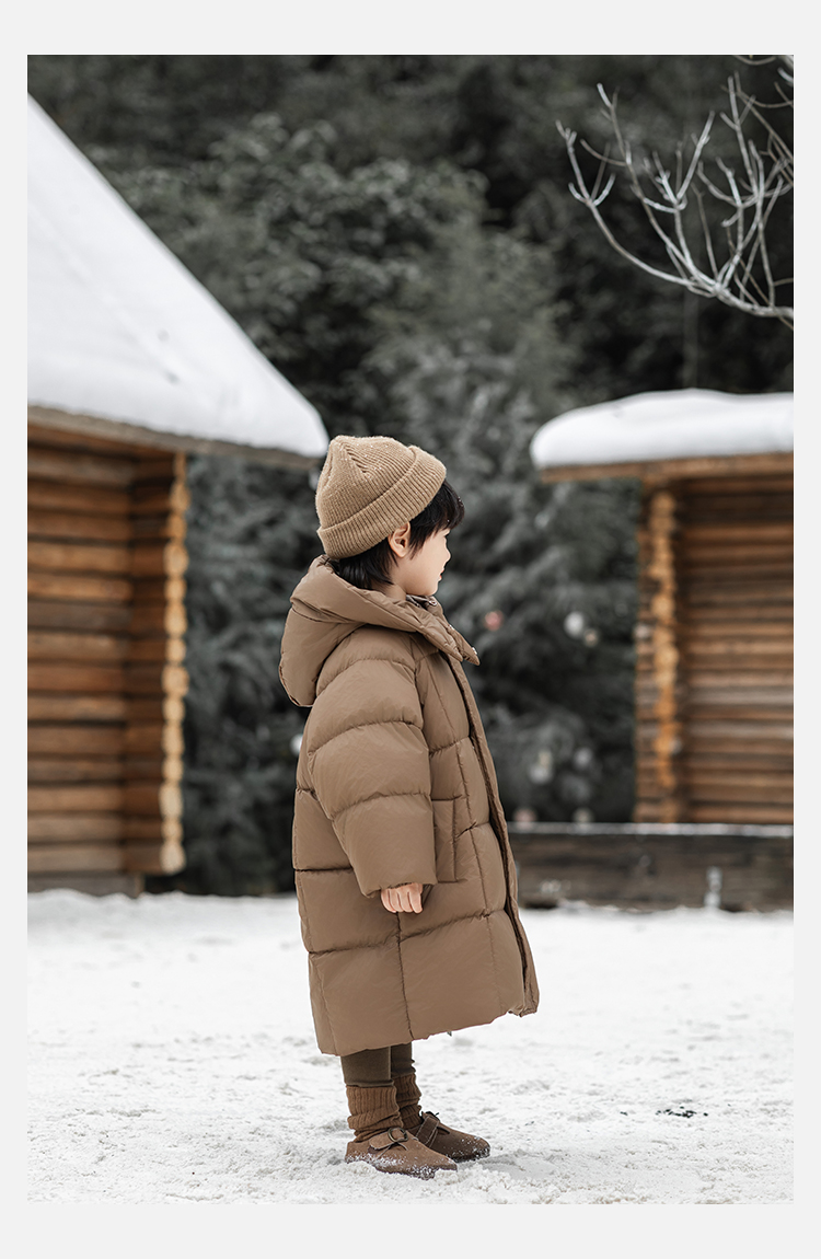 Wulibu Yinan 소년 다운 재킷 2025 신상 겨울 아동용 빨간색 중간 길이 후드 체크 무늬 두꺼운 재킷