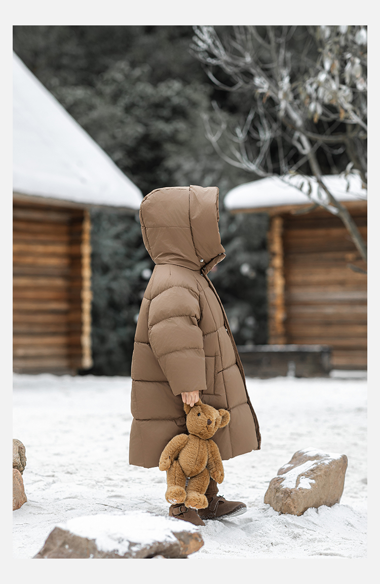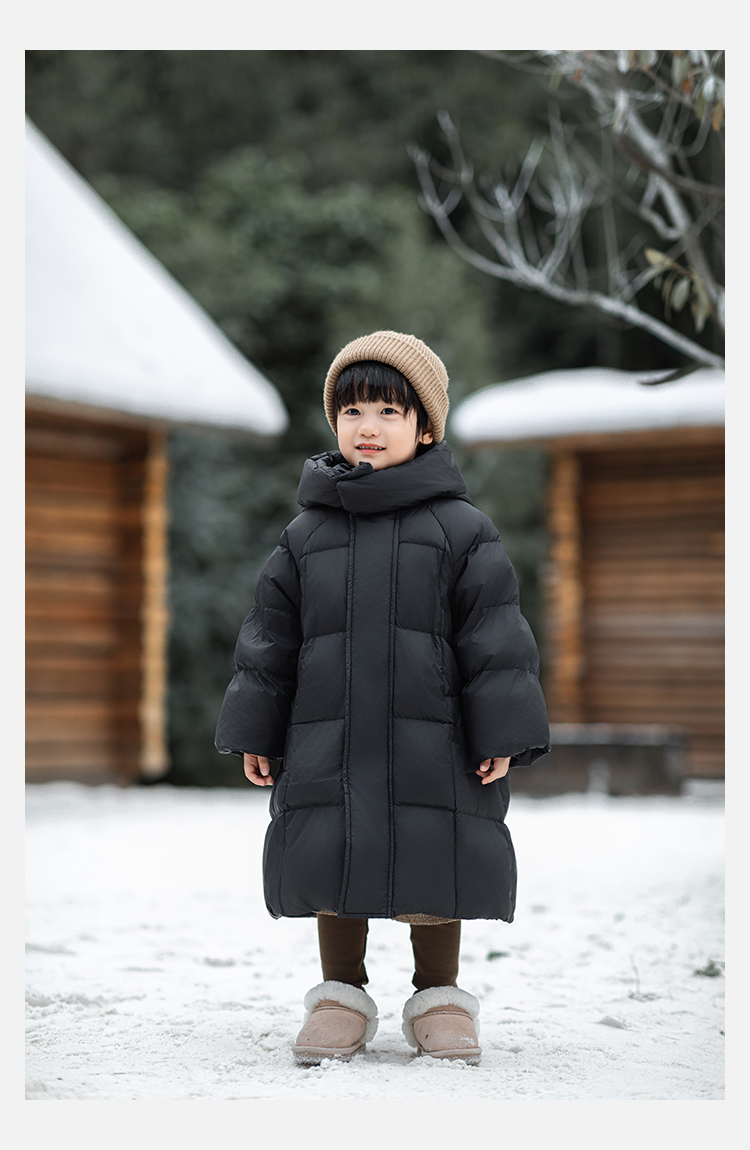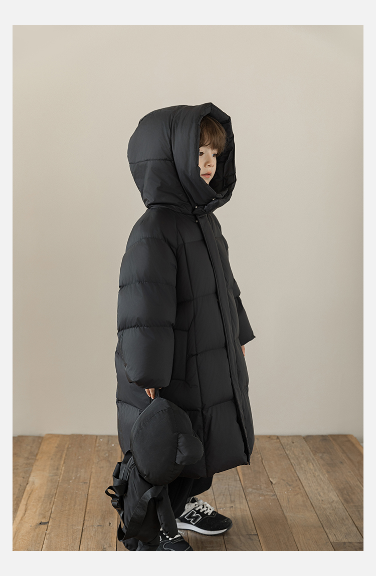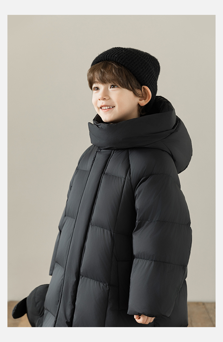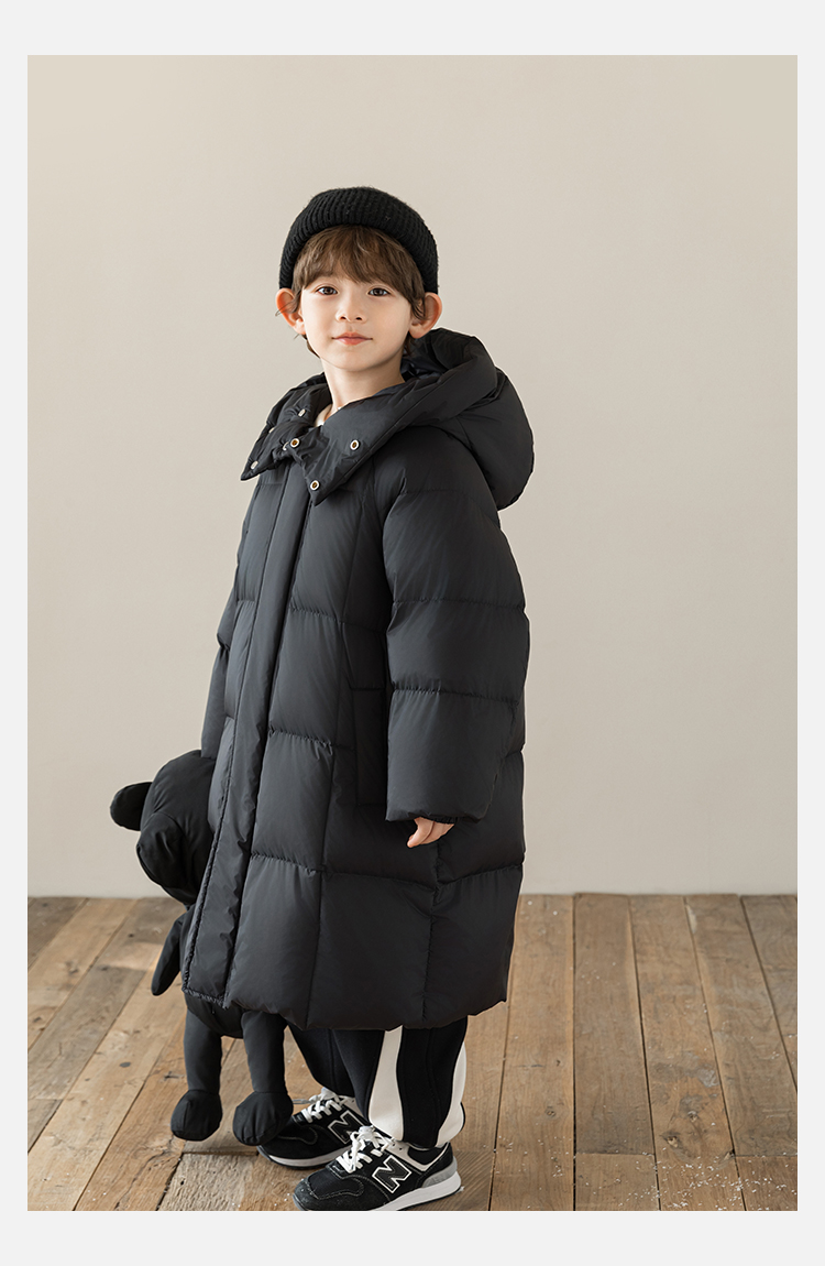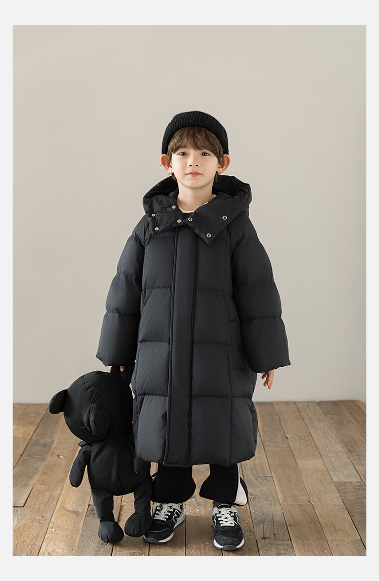 Wulibu Yinan 소년 다운 재킷 2025 신상 겨울 아동용 빨간색 중간 길이 후드 체크 무늬 두꺼운 재킷