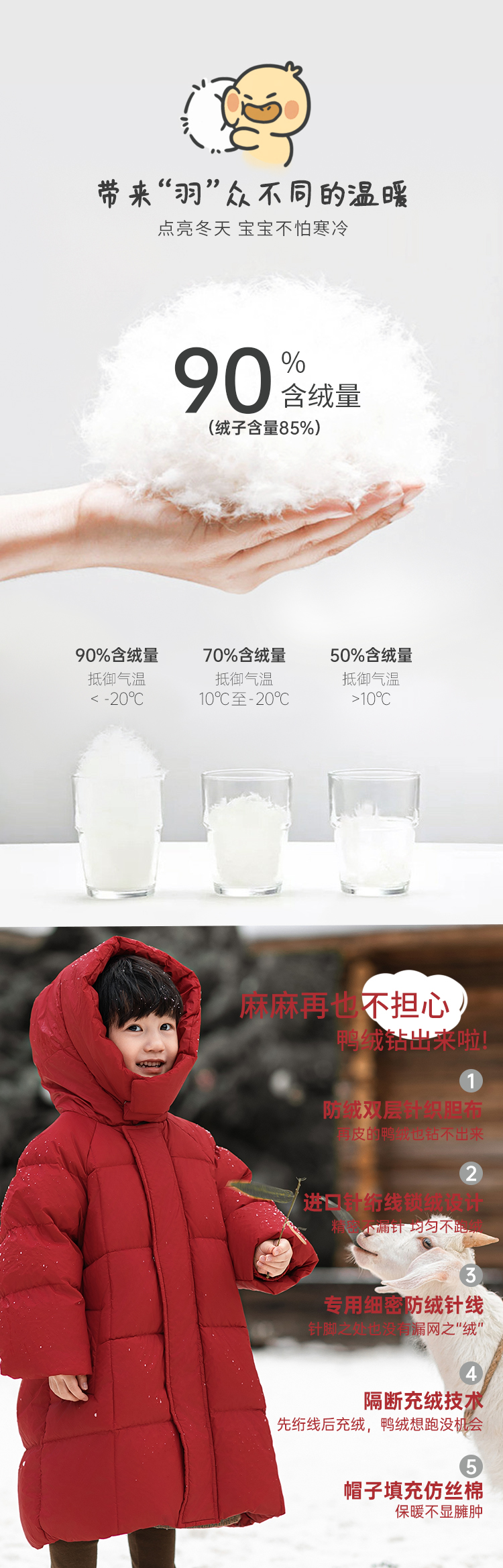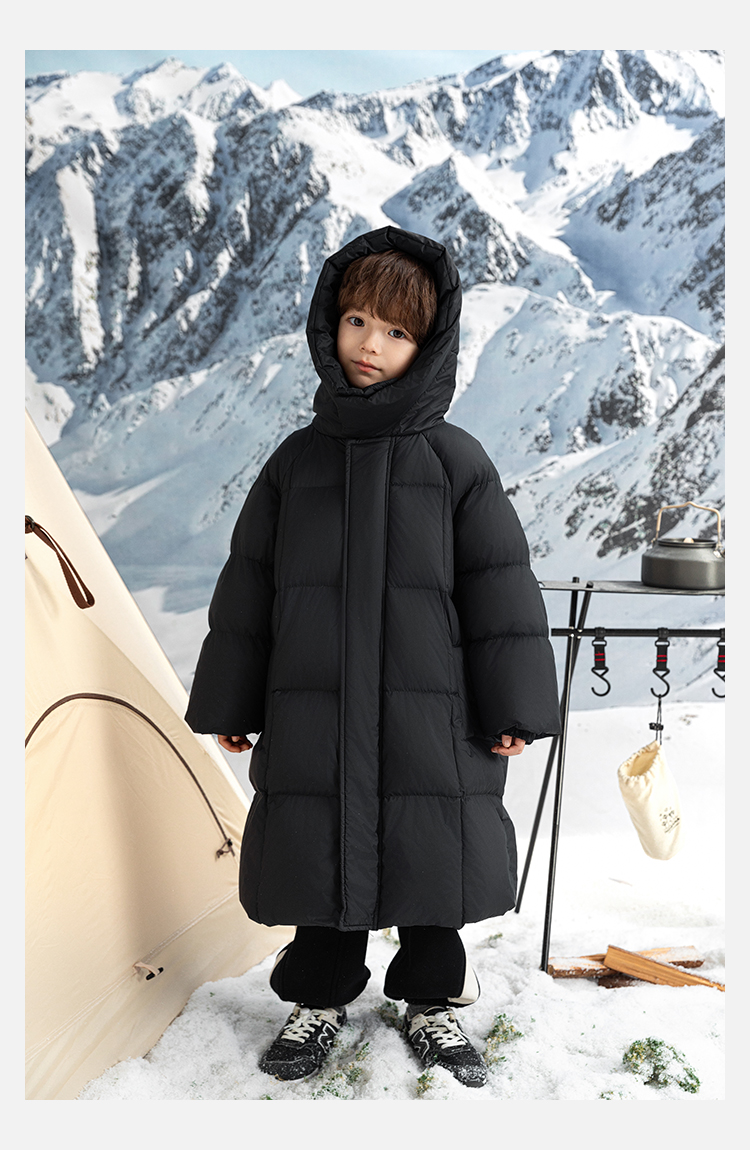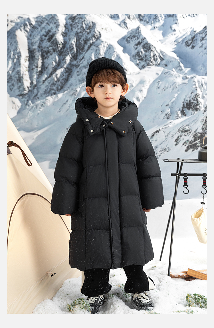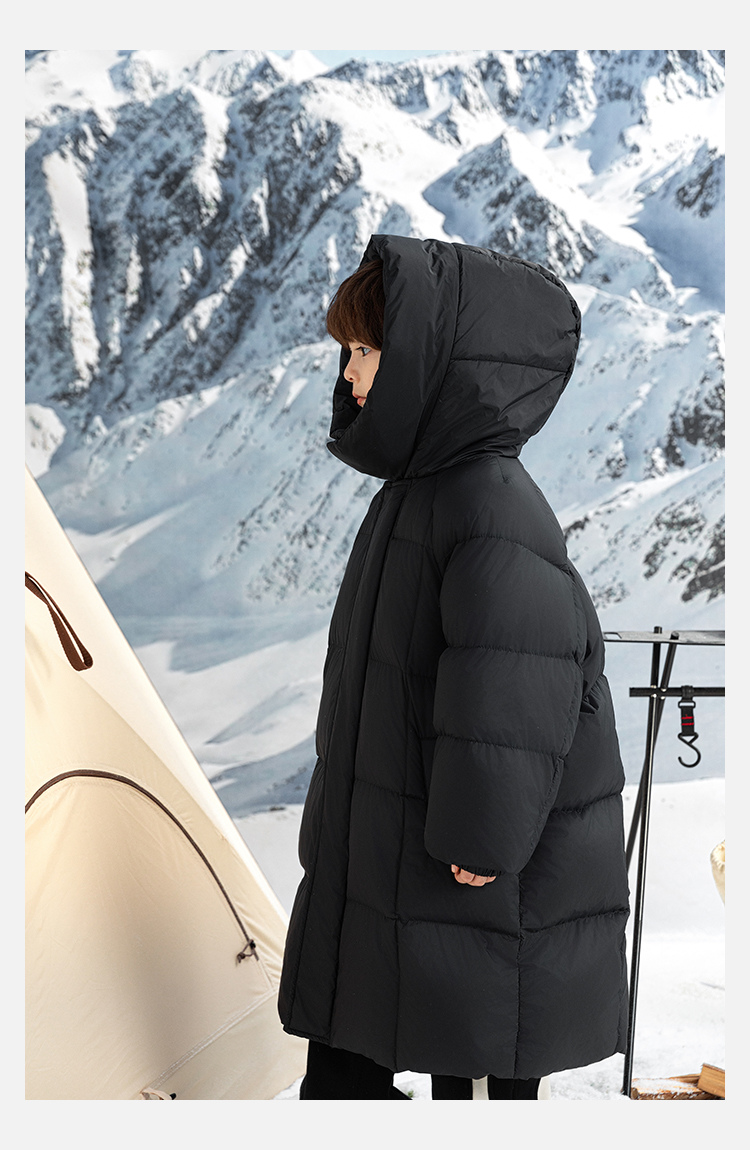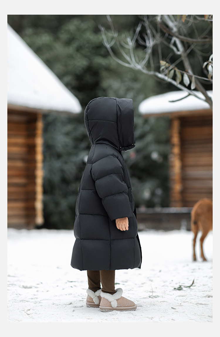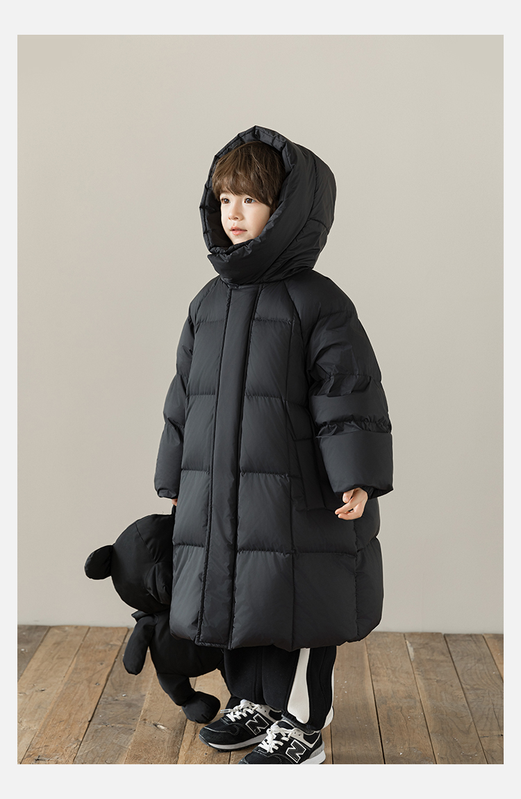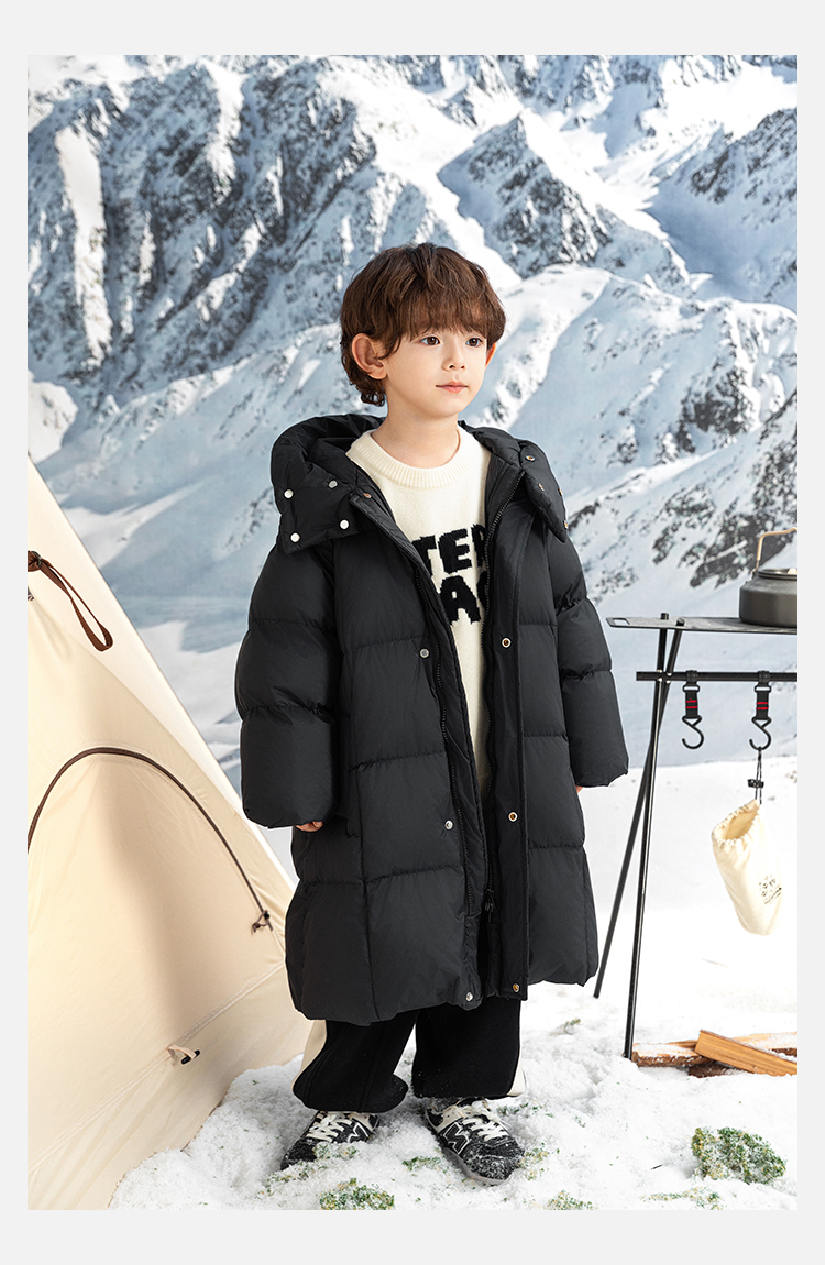 Wulibu Yinan 소년 다운 재킷 2025 신상 겨울 아동용 빨간색 중간 길이 후드 체크 무늬 두꺼운 재킷
