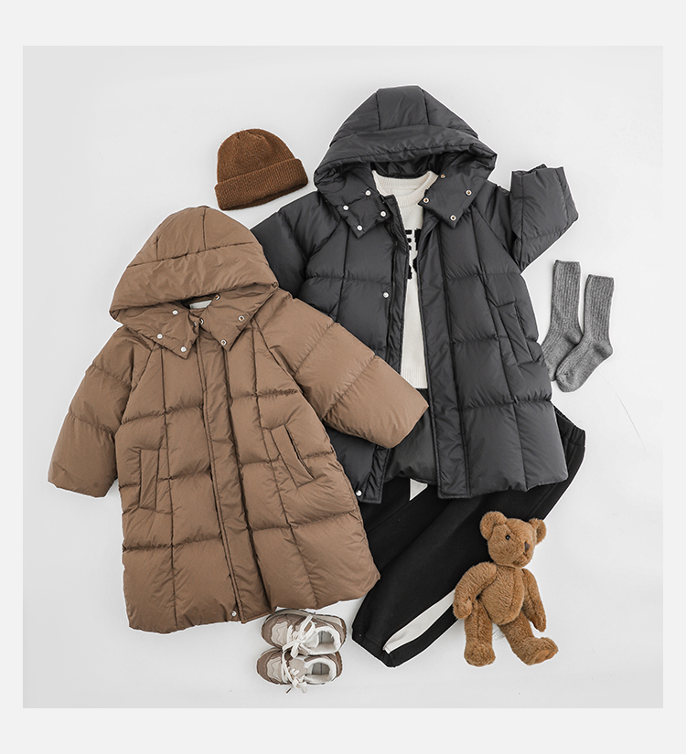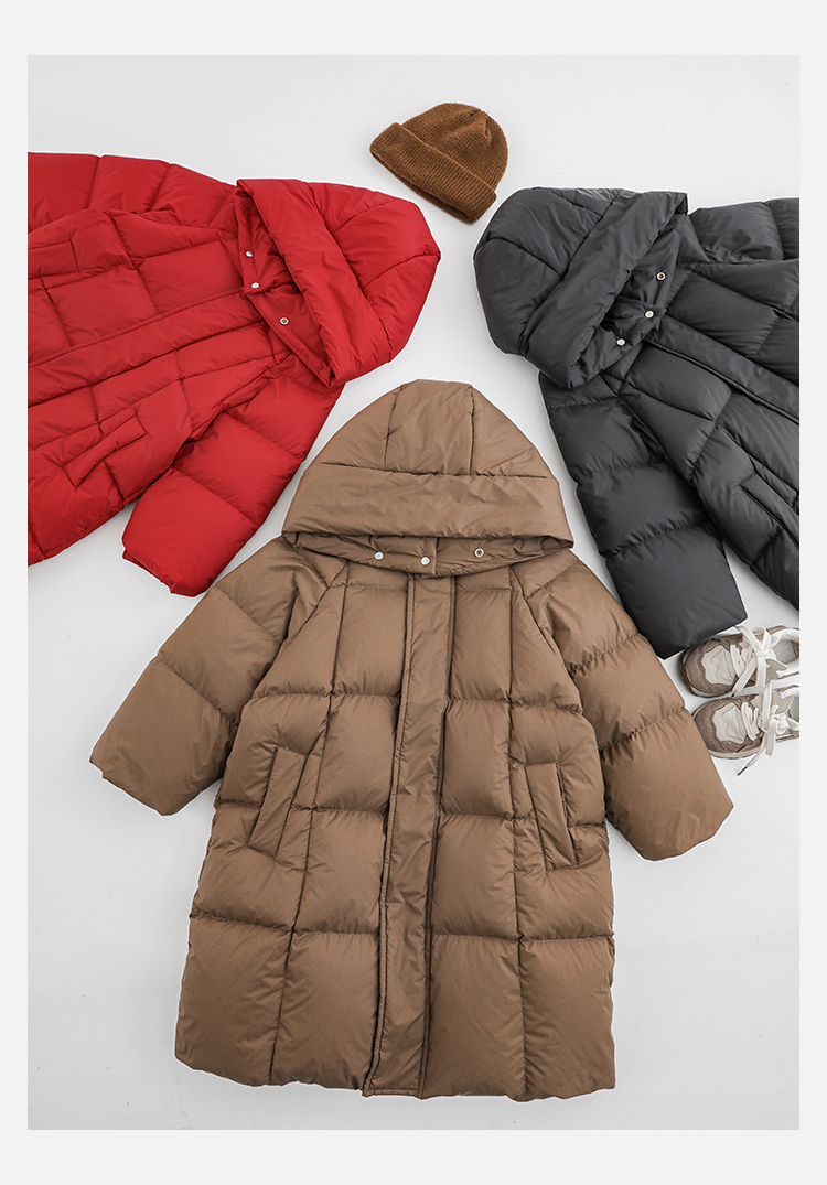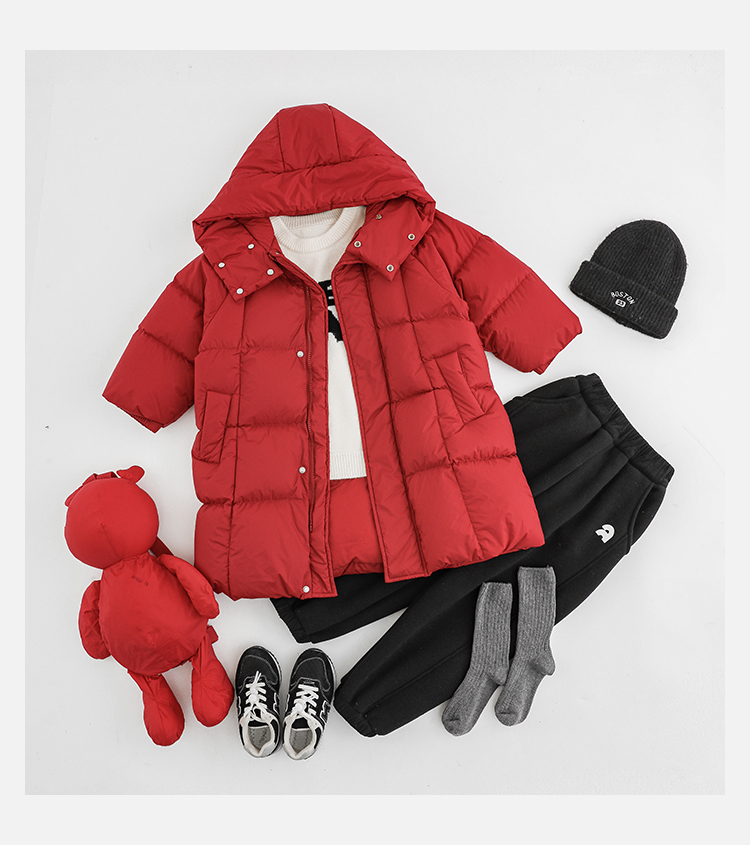 Wulibu Yinan 소년 다운 재킷 2025 신상 겨울 아동용 빨간색 중간 길이 후드 체크 무늬 두꺼운 재킷스토어 가기