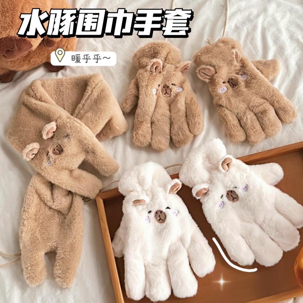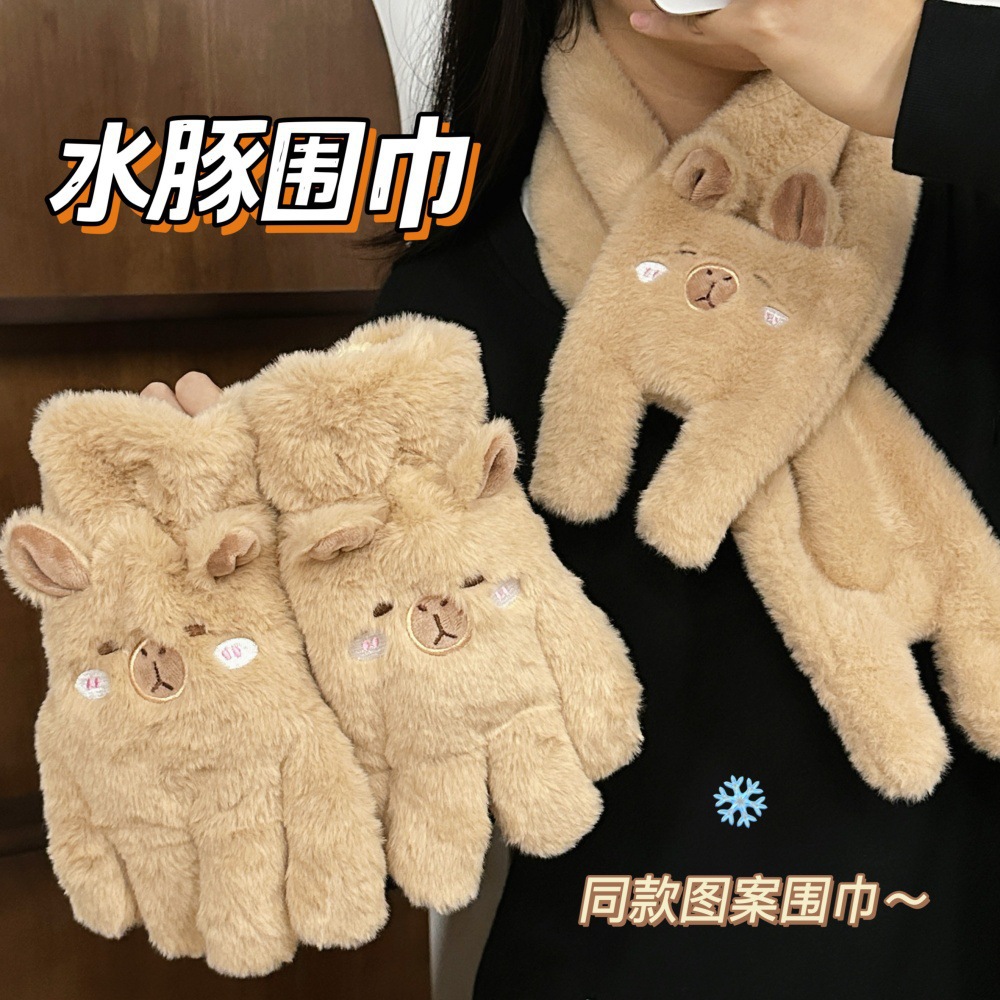 겨울 귀여운 봉제 카피 바라 장갑 스카프 소녀의 모든 경기 교수형 목 장갑 달콤한 만화 따뜻한 기모 목 장갑스토어 가기