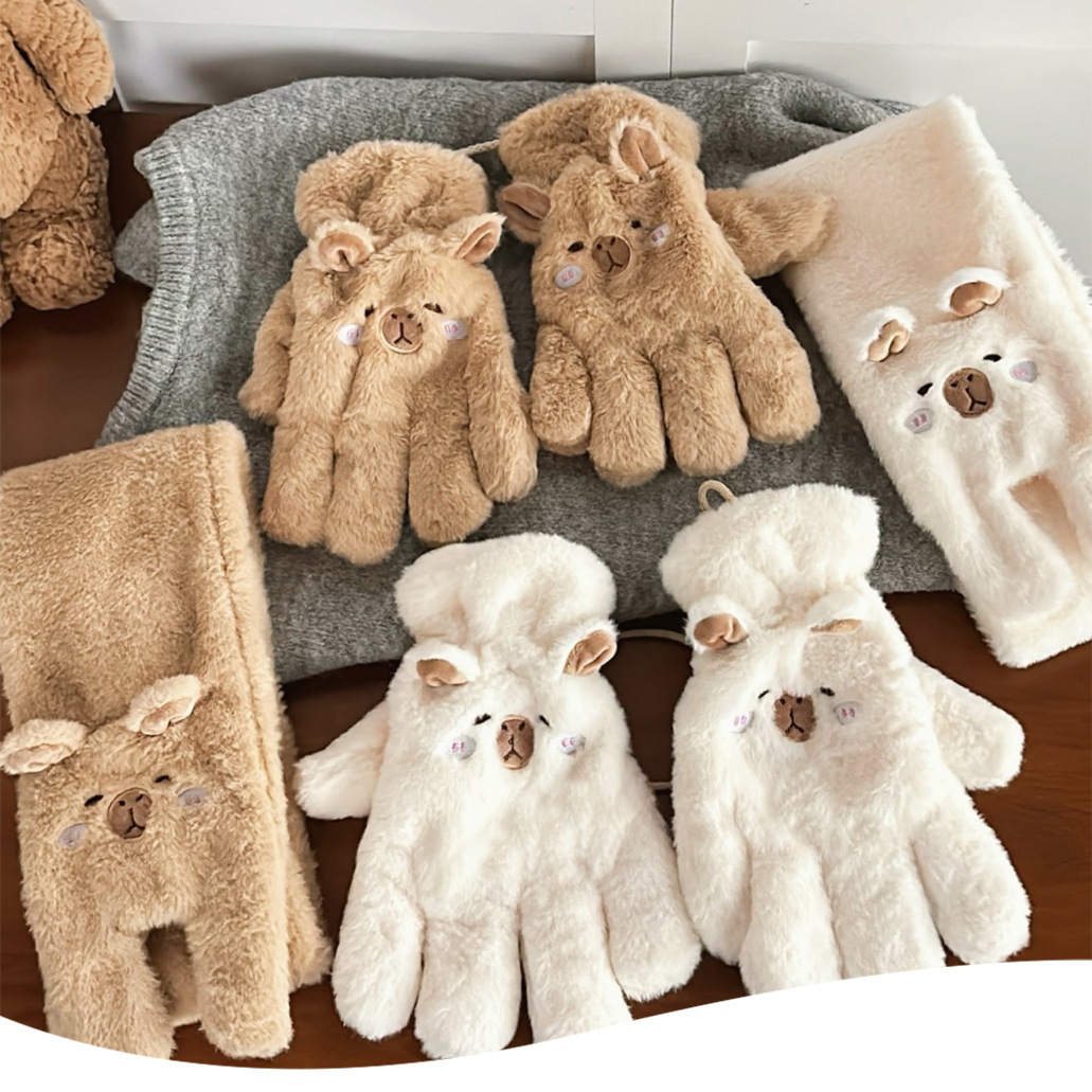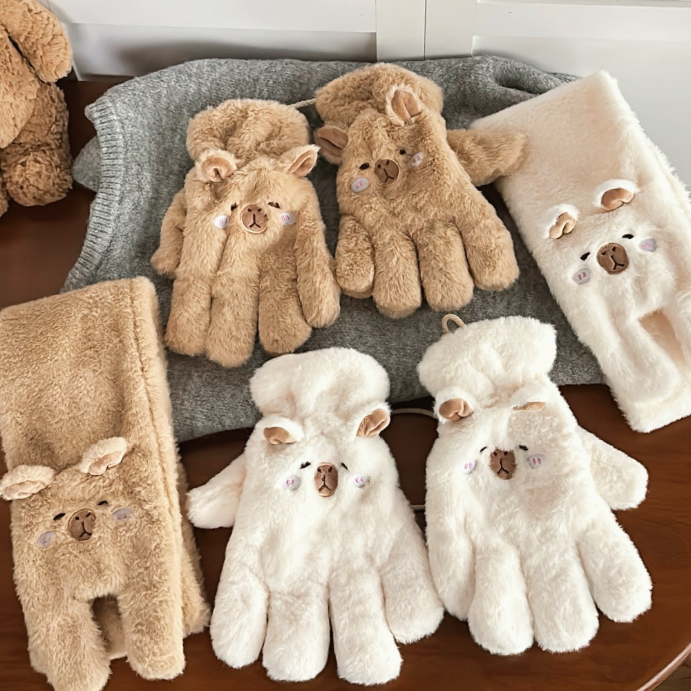 겨울 귀여운 봉제 카피 바라 장갑 스카프 소녀의 모든 경기 교수형 목 장갑 달콤한 만화 따뜻한 기모 목 장갑
