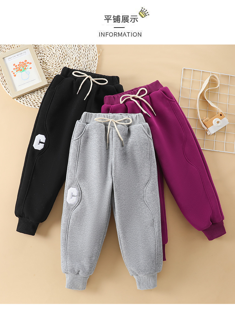 어린이 두꺼운 면 바지 2024 겨울 통합 면 여성용 아기 플러스 벨벳 캐주얼 바지 어린이 겨울 바지