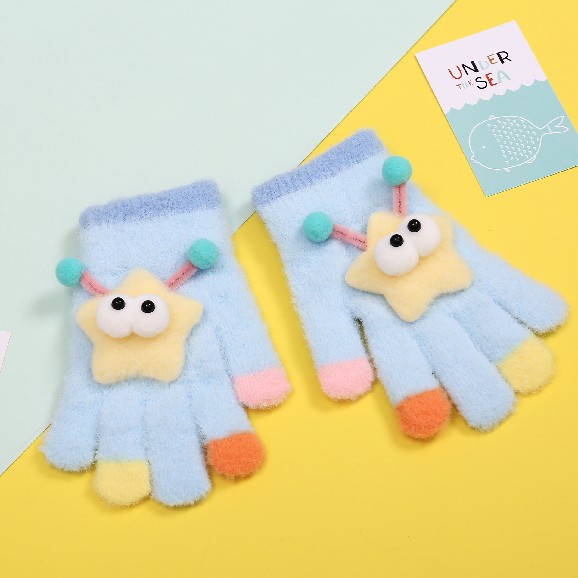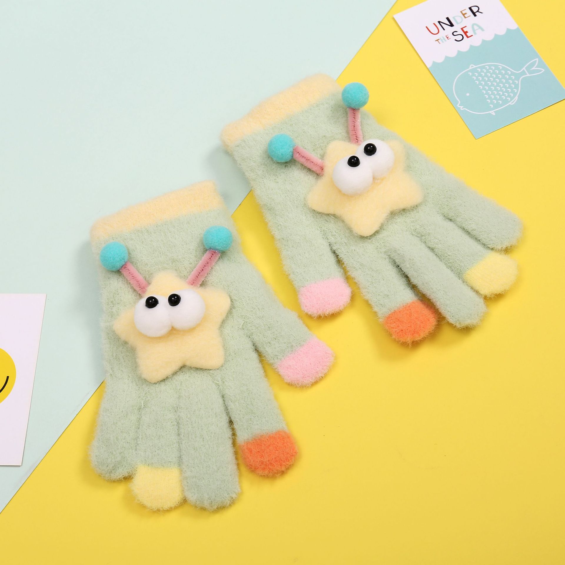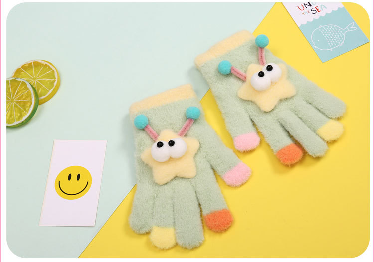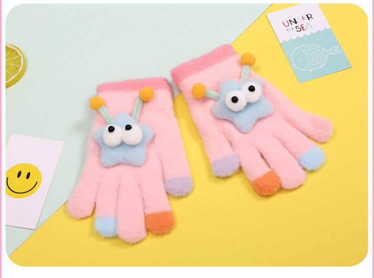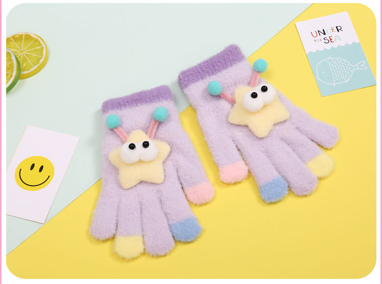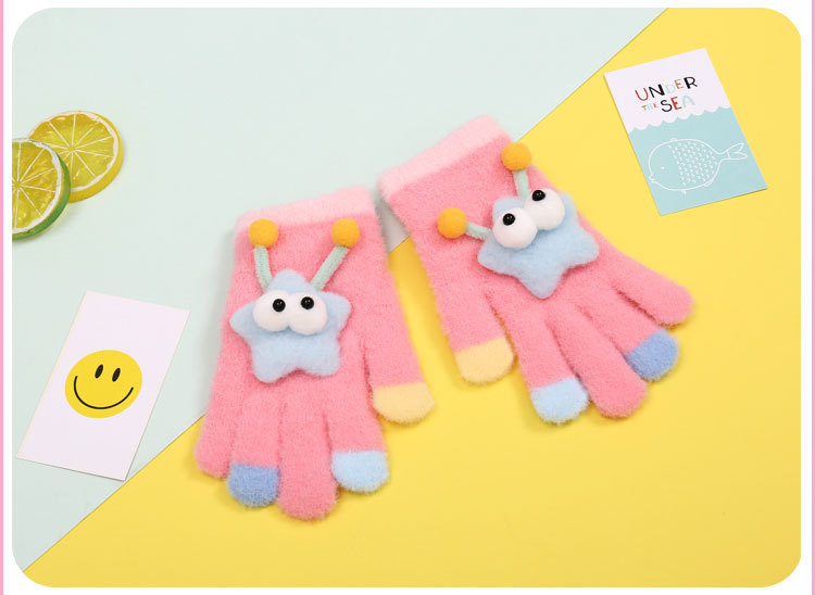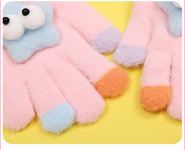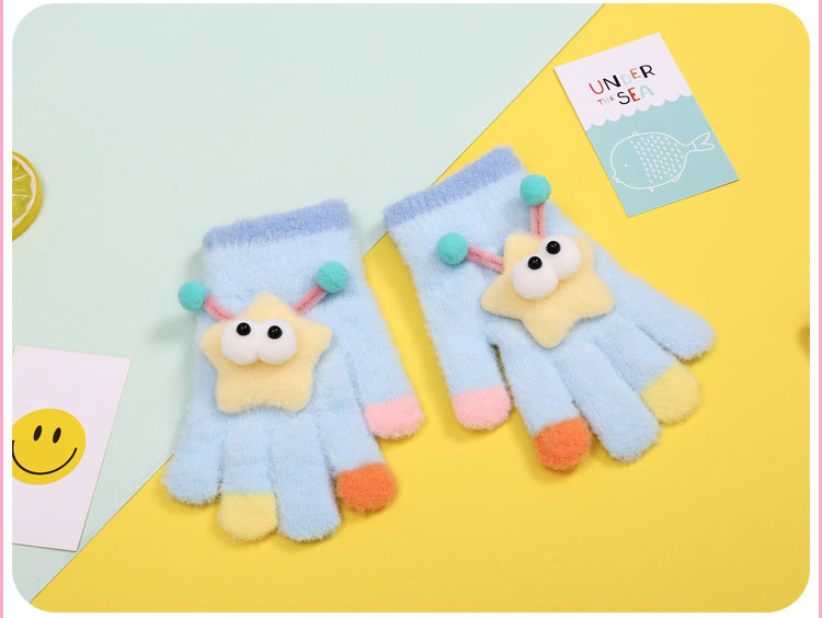 새로운 만화 힙합 어린이 따뜻한 장갑 겨울 감기 방지 5 손가락 한국 니트 장갑 풀 핑거 장갑 소년 소녀를위한 장갑스토어 가기