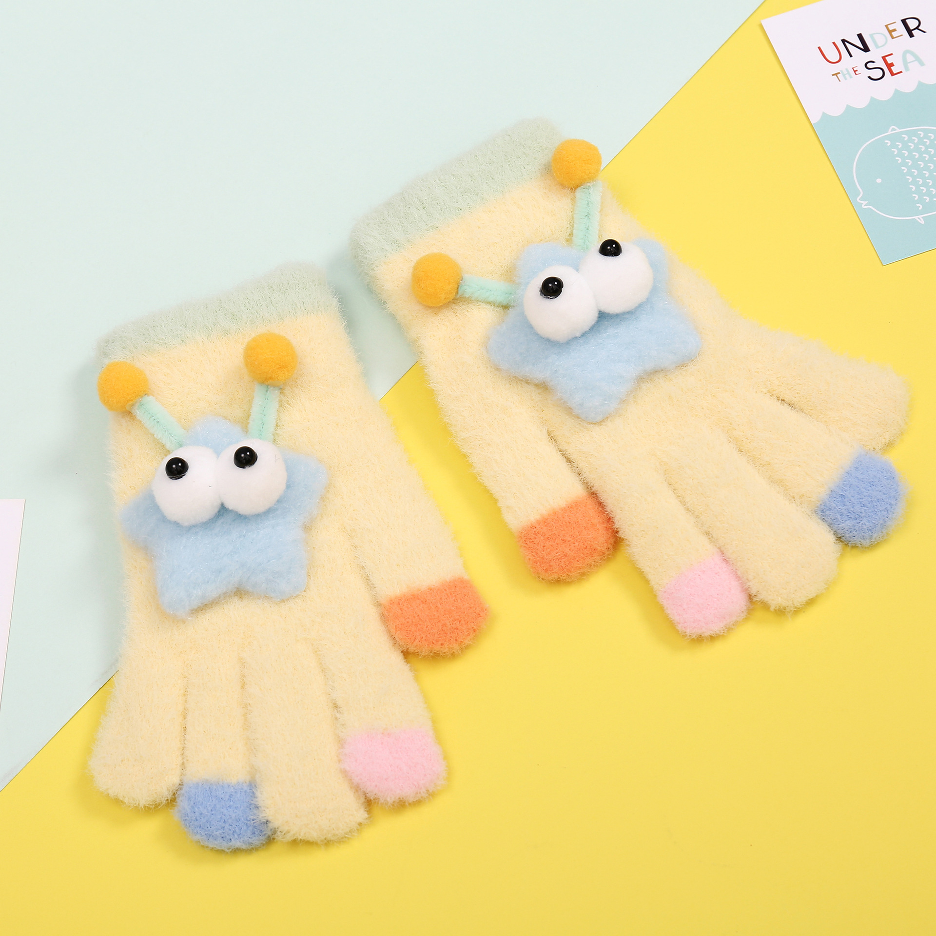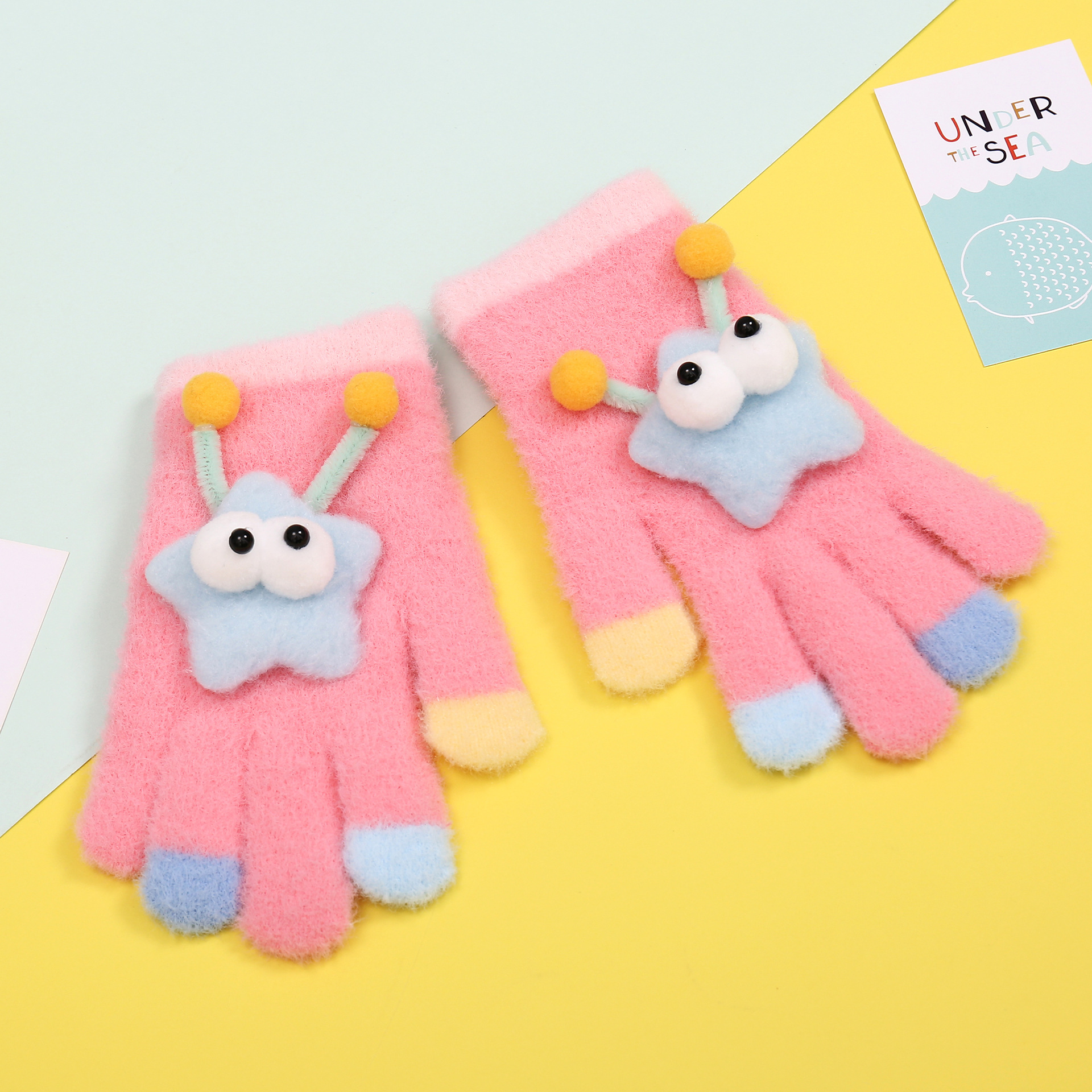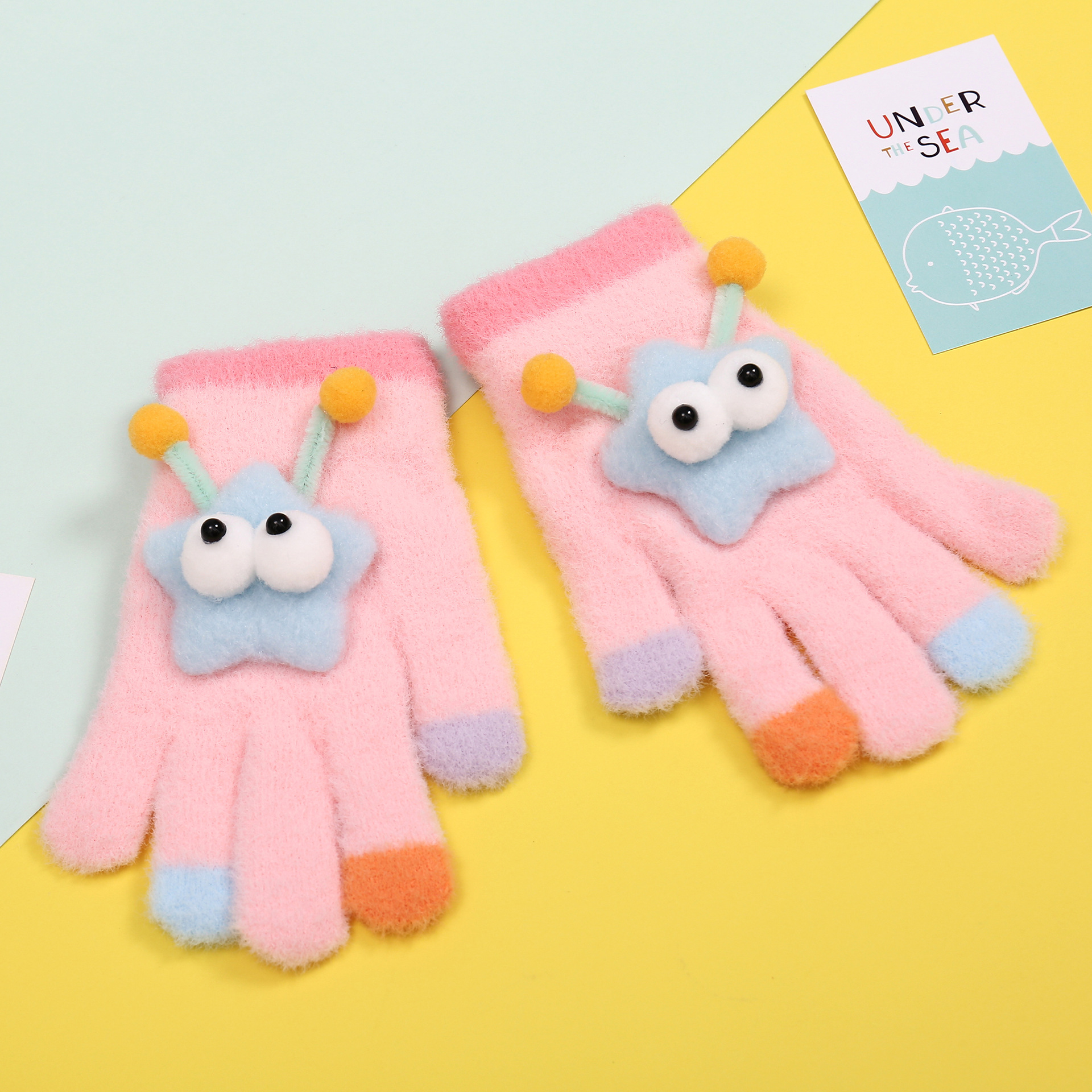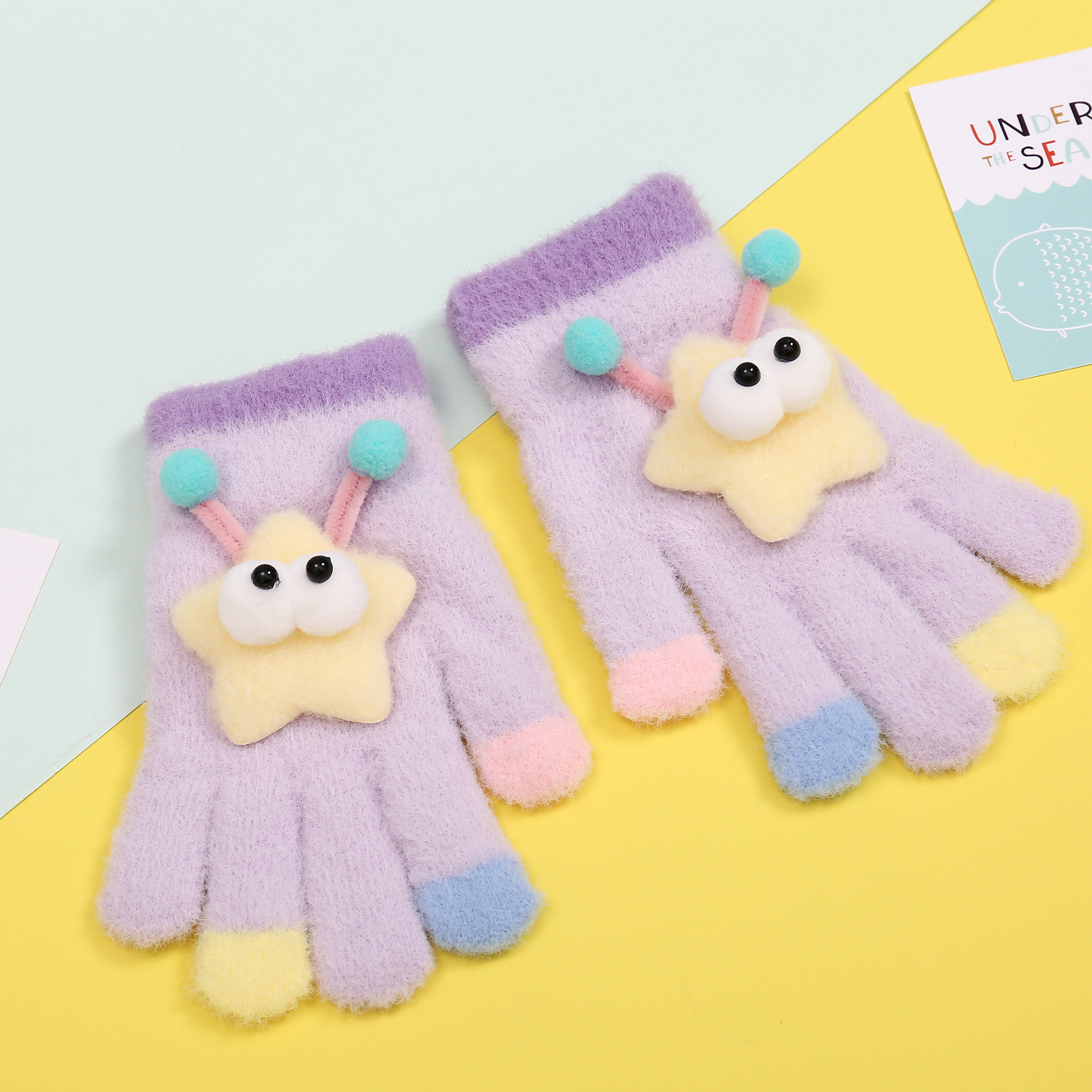 새로운 만화 힙합 어린이 따뜻한 장갑 겨울 감기 방지 5 손가락 한국 니트 장갑 풀 핑거 장갑 소년 소녀를위한 장갑스토어 가기