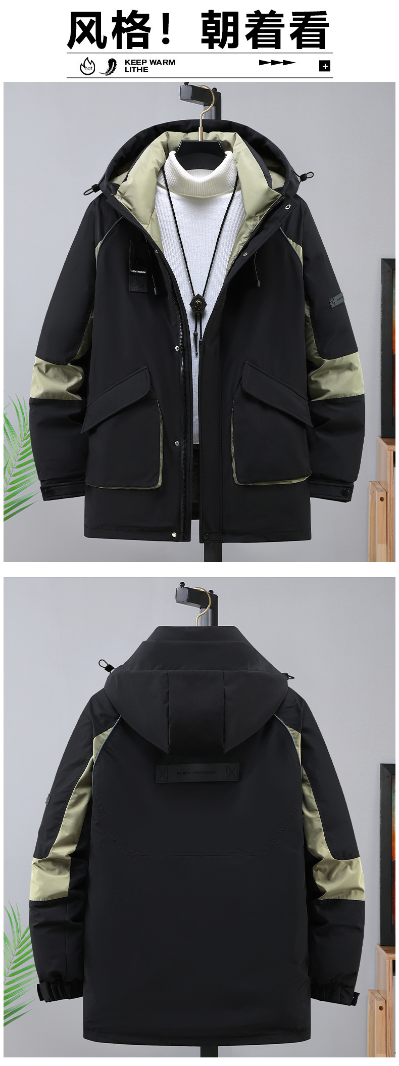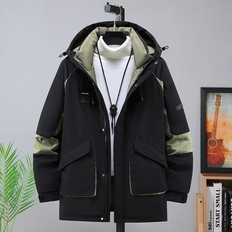 380kg 플러스 사이즈 남성면 패딩 재킷 긴 등산 세트 방수 플러스 비료를 사용하여 느슨한 레저 지방 후드 조수를 증가시킵니다.스토어 가기