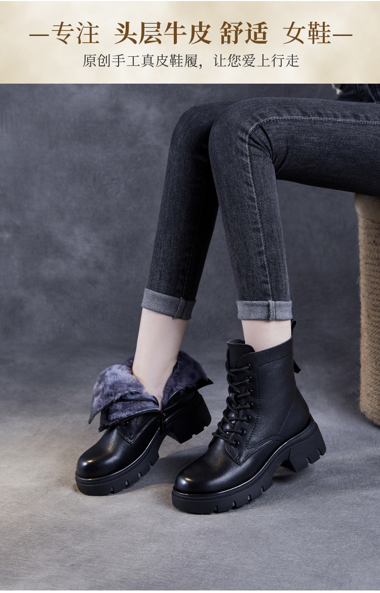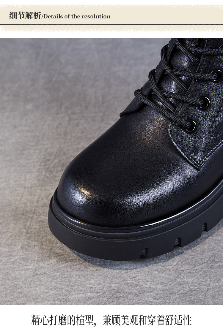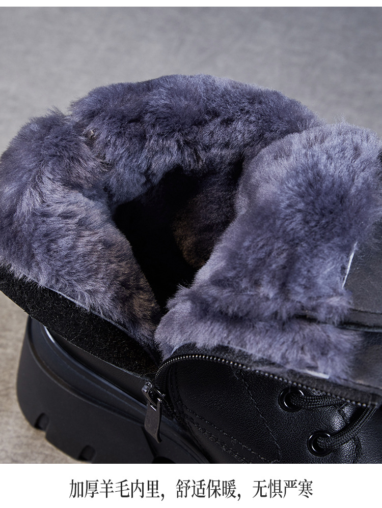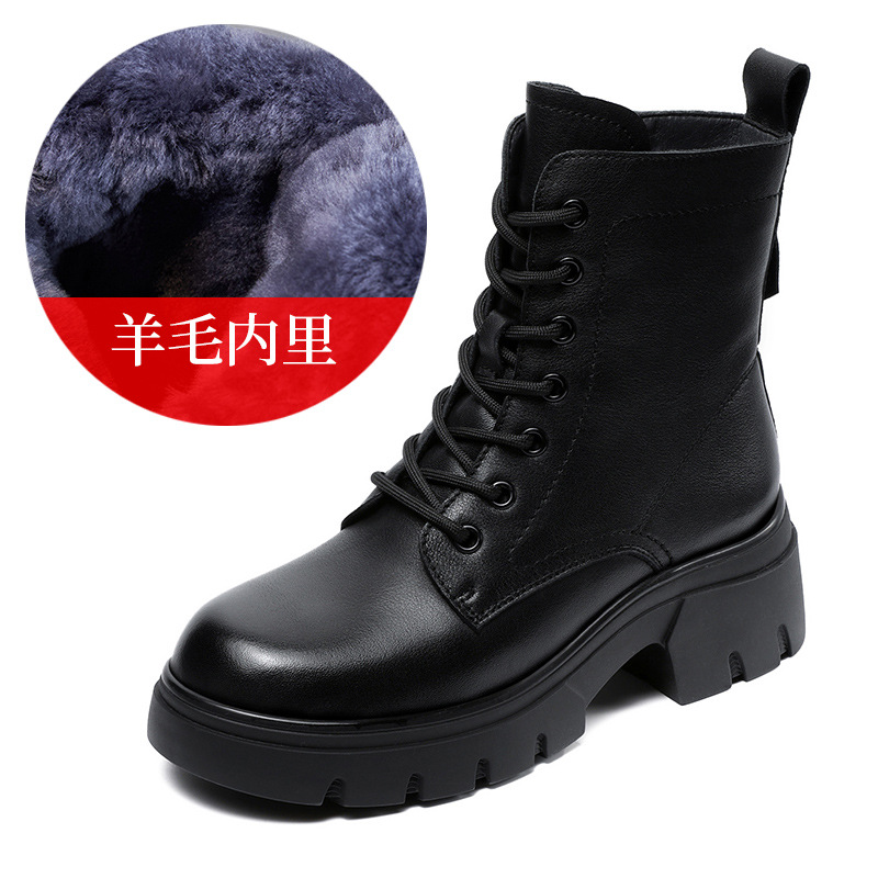 정품 가죽 대형 코튼 마틴 부츠 여성용 영국식 발목 부츠 동북 냉방형 양모 부츠 경량 두꺼운 부츠 두꺼운 코튼 부츠