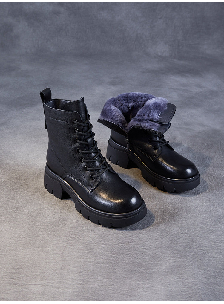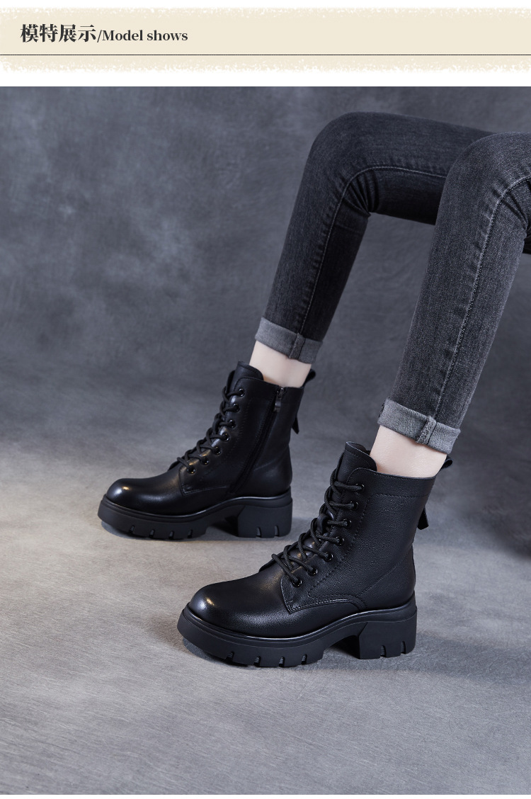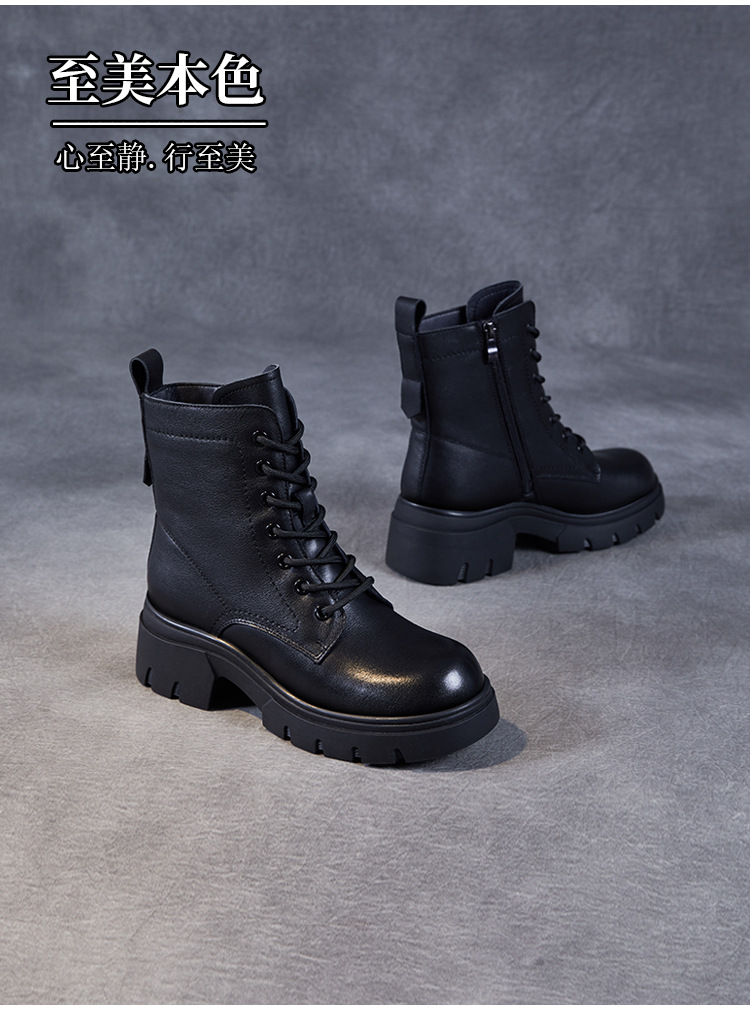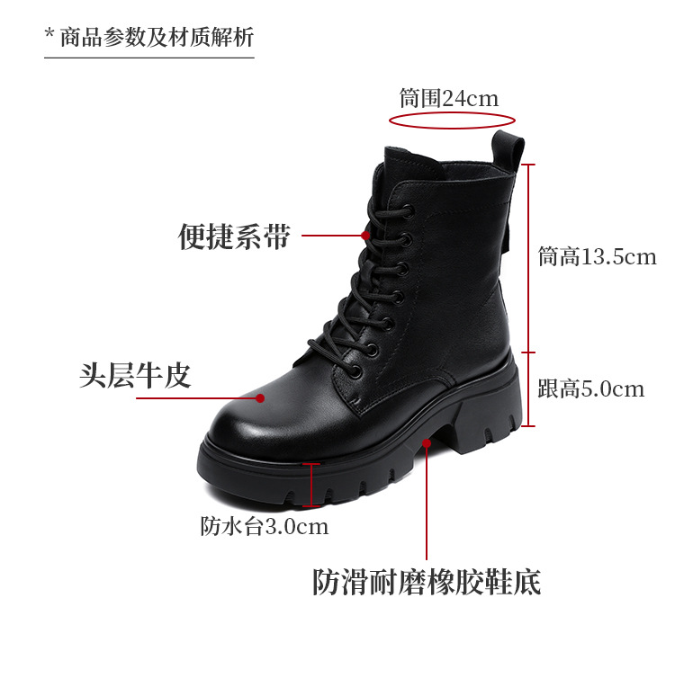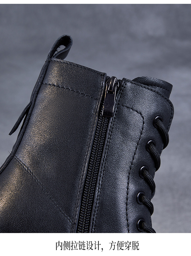정품 가죽 대형 코튼 마틴 부츠 여성용 영국식 발목 부츠 동북 냉방형 양모 부츠 경량 두꺼운 부츠 두꺼운 코튼 부츠