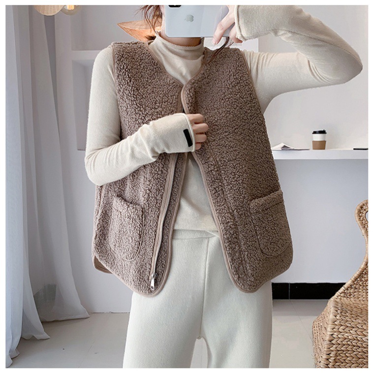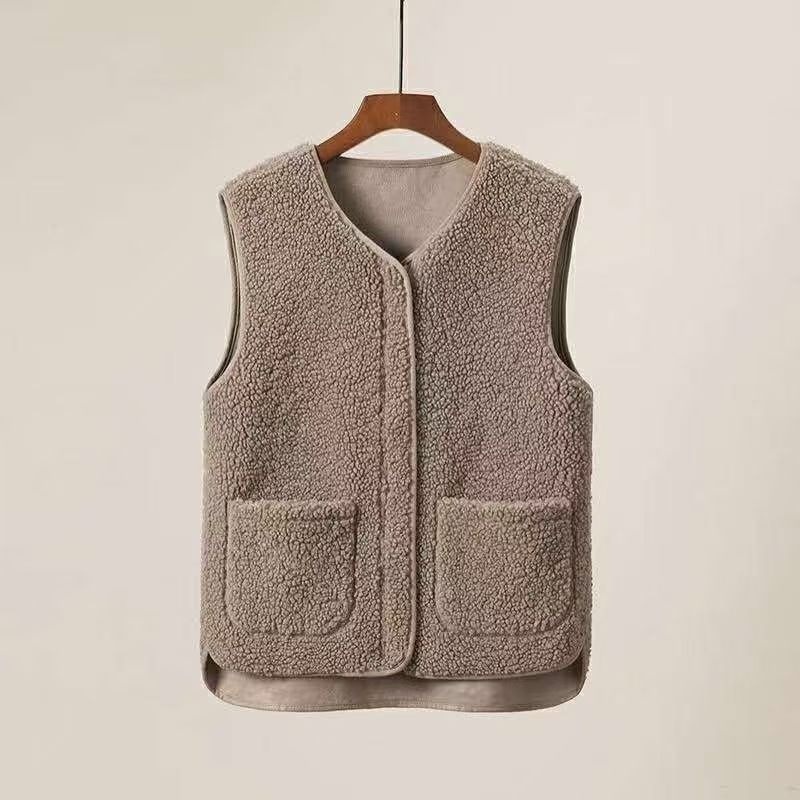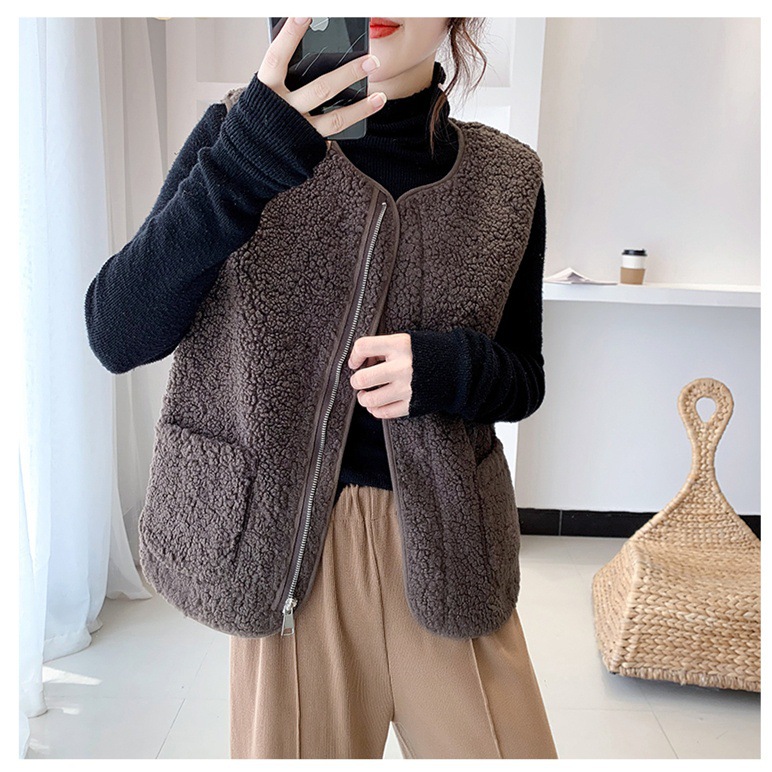 2025년 가을 겨울 신상 양털 조끼, 레트로 스타일 여성용 가죽과 모피 일체형 캐주얼 조끼스토어 가기