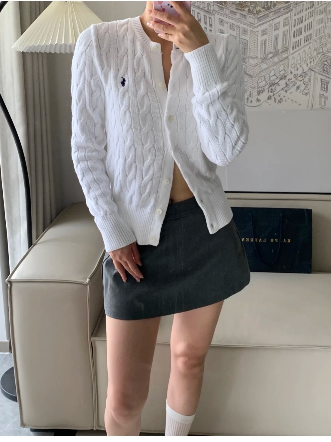 스윕 사이즈 RL 클래식 슬림 핏 코튼 니트 카디건 라프 라운드 넥 트위스트 슬림 핏 코트 코튼 카디건스토어 가기