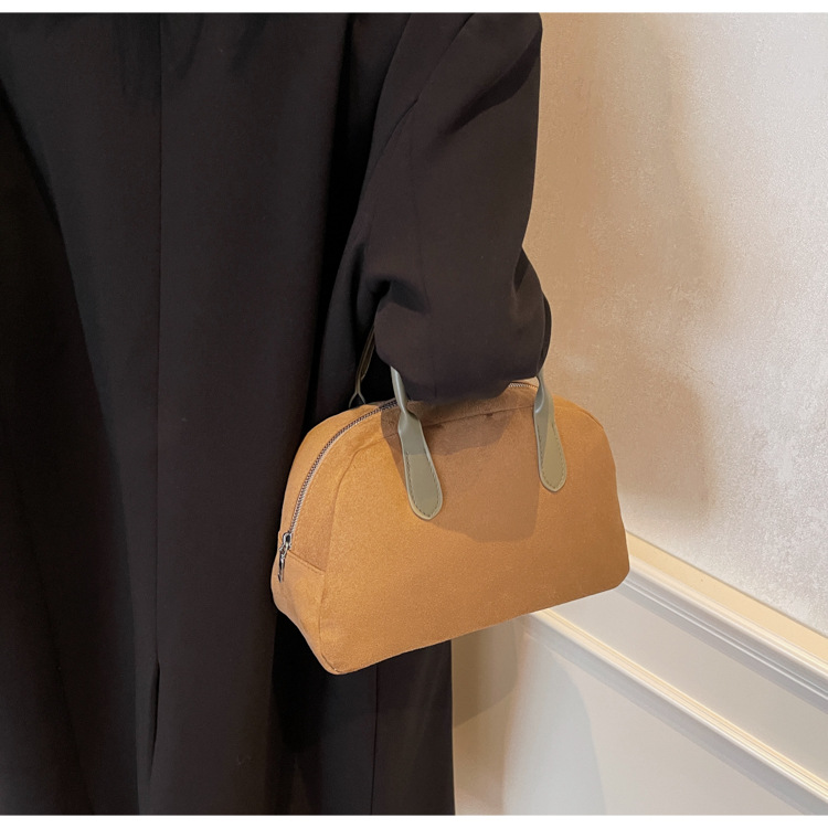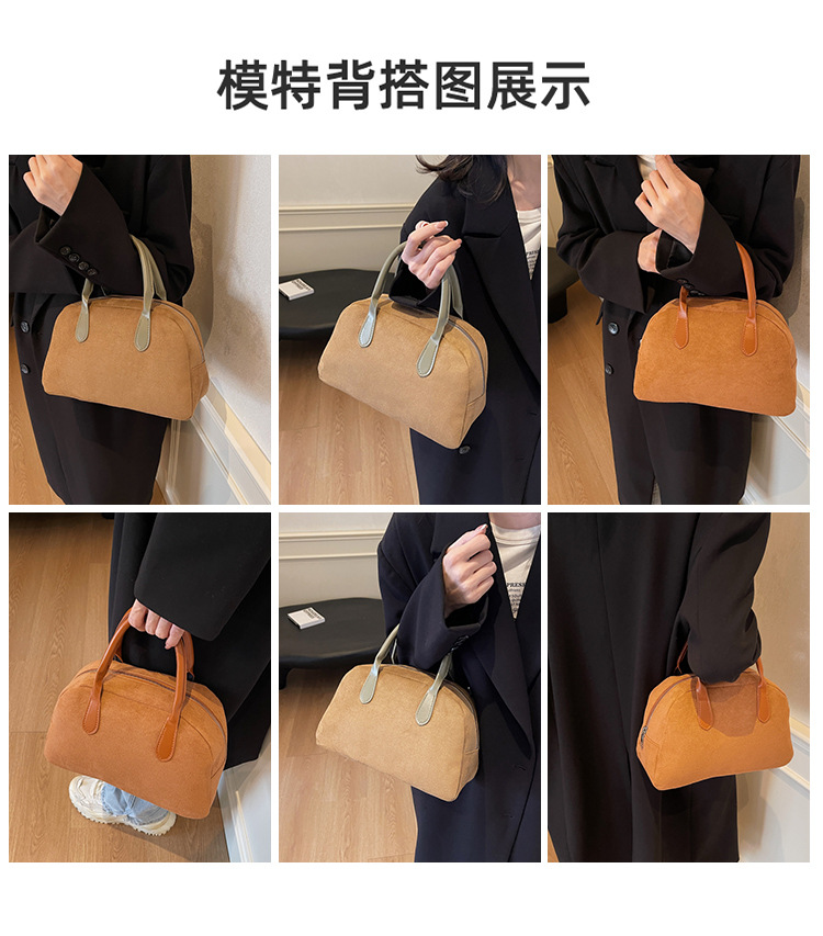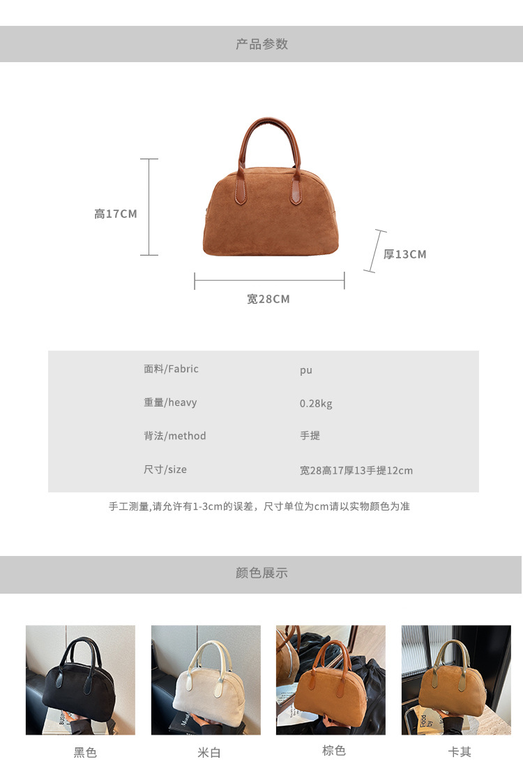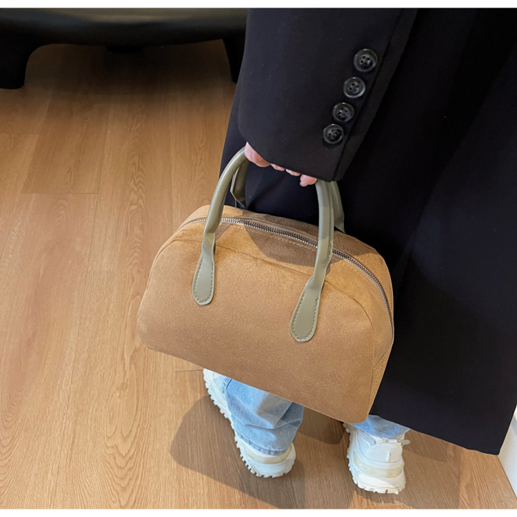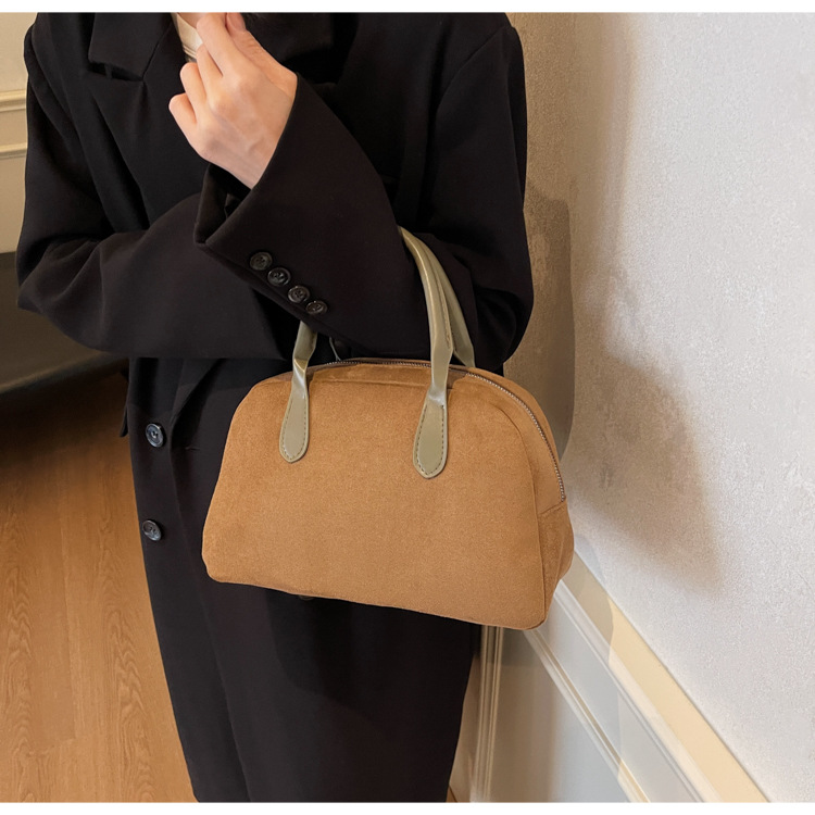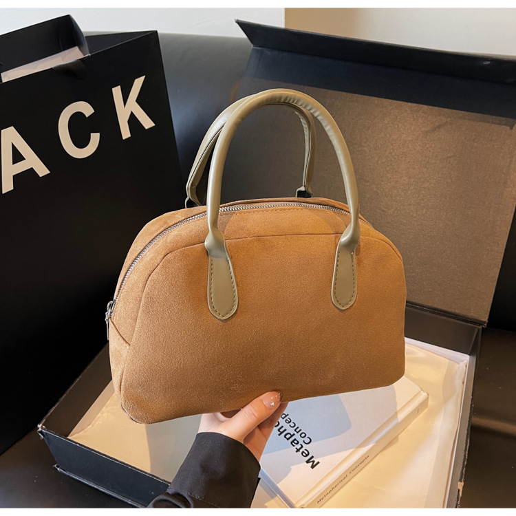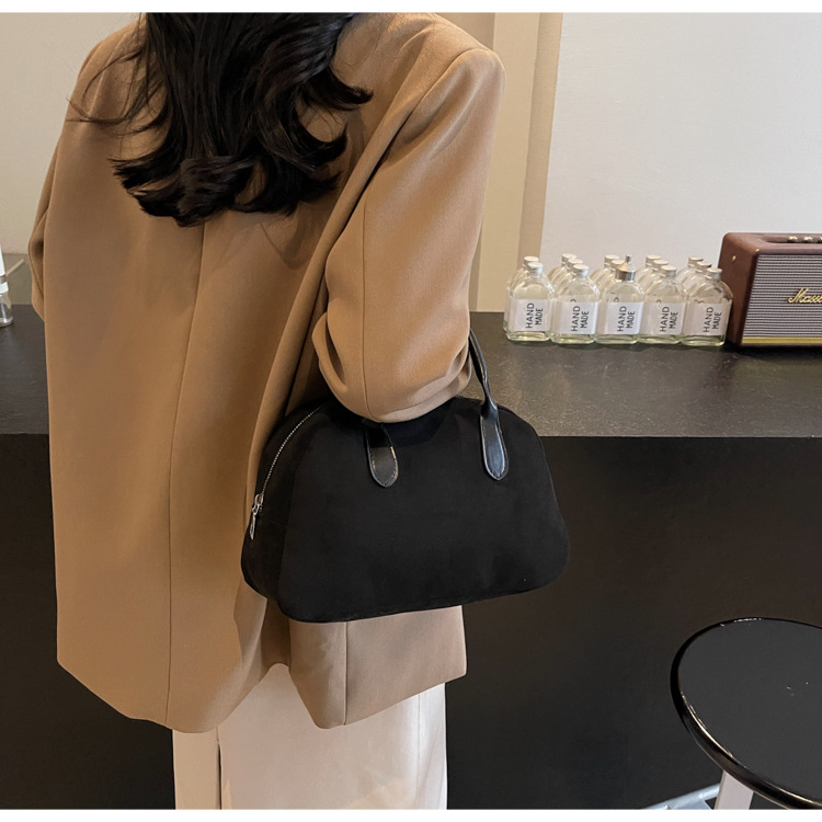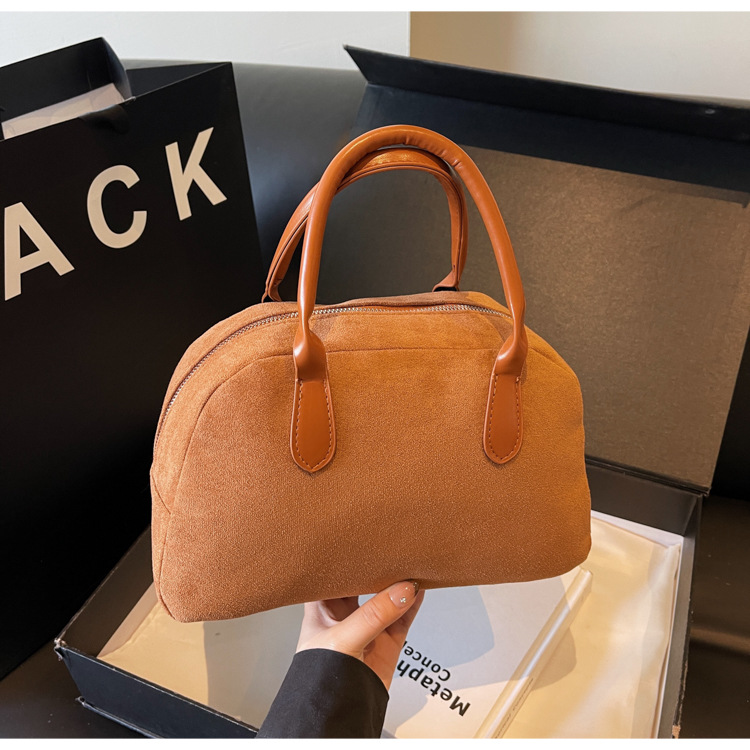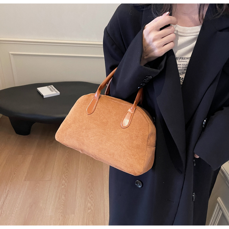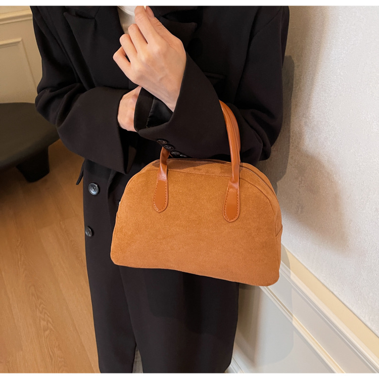 한국 빈티지 사슴 가죽 벨벳 볼링 가방 가을과 겨울 여성의 2024 새로운 패션 틈새 베개 가방 대용량 통근 가방스토어 가기