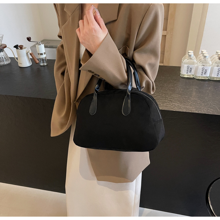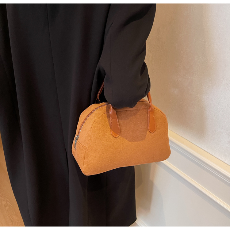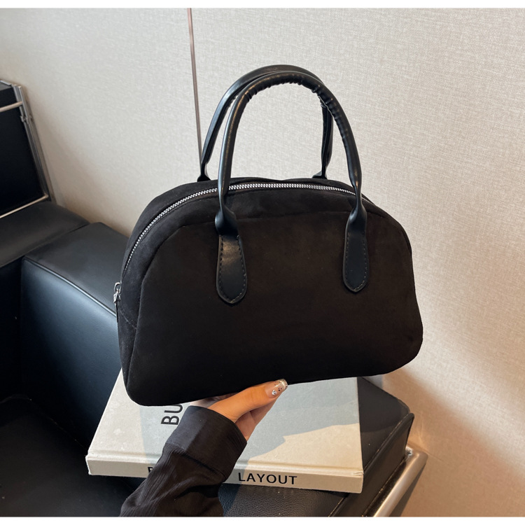 한국 빈티지 사슴 가죽 벨벳 볼링 가방 가을과 겨울 여성의 2024 새로운 패션 틈새 베개 가방 대용량 통근 가방