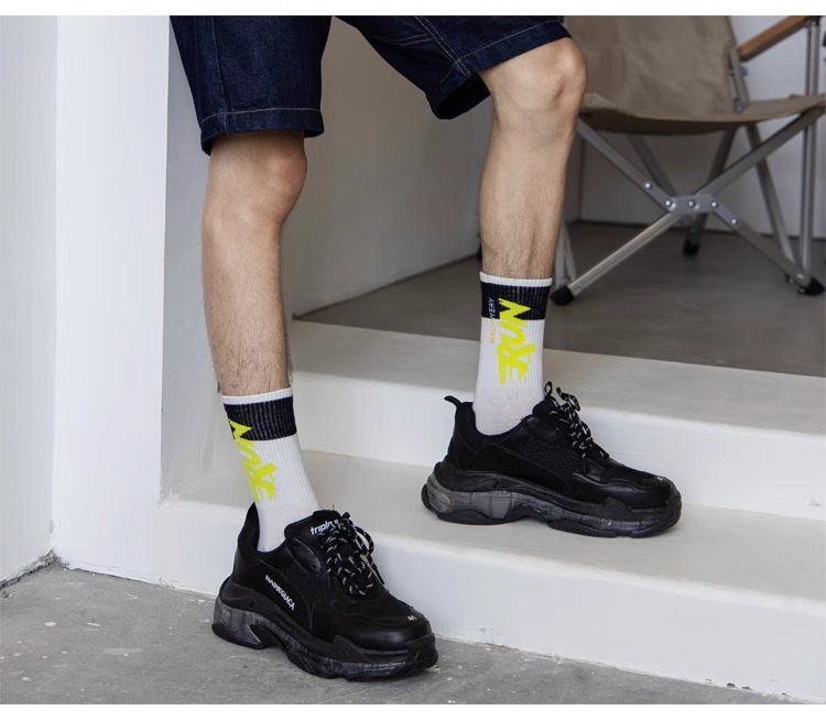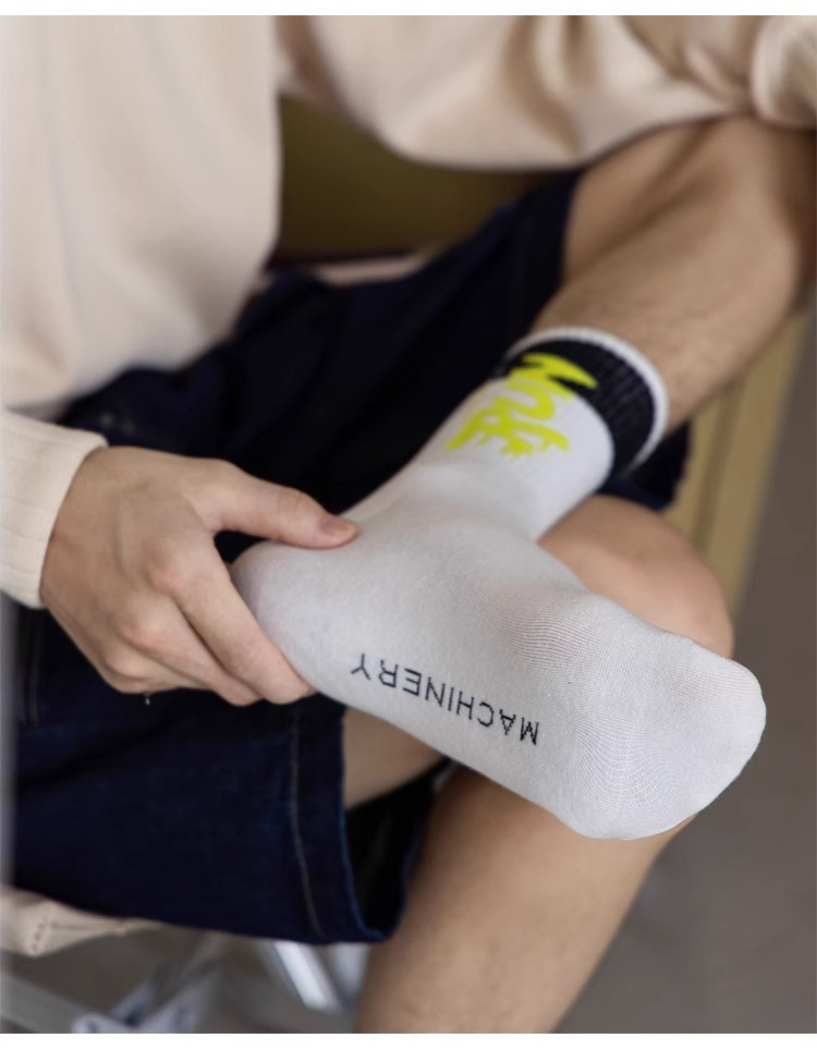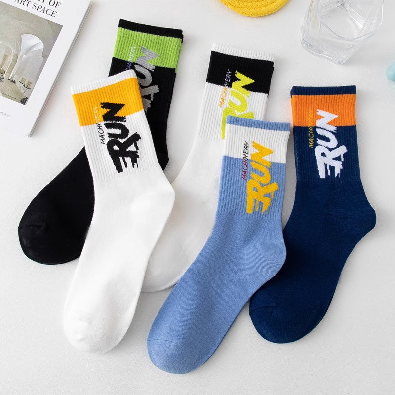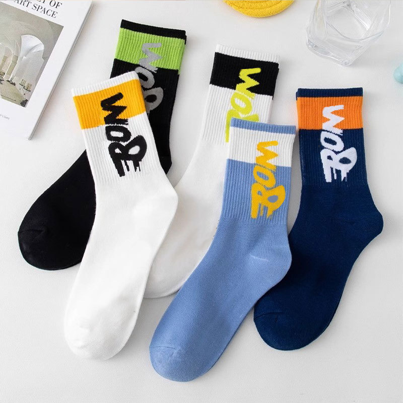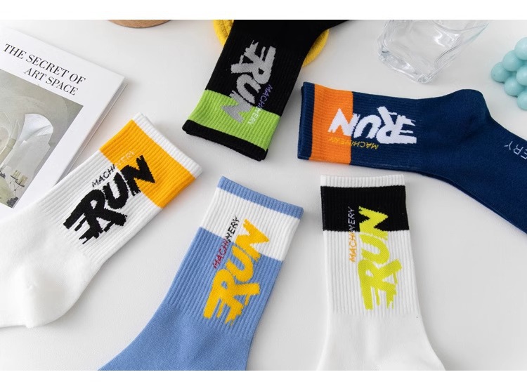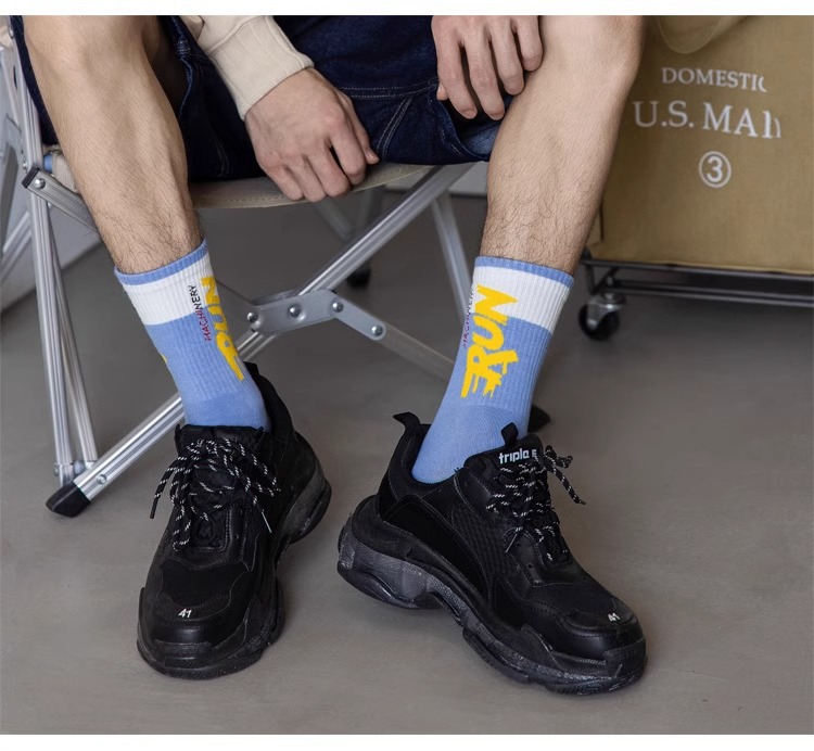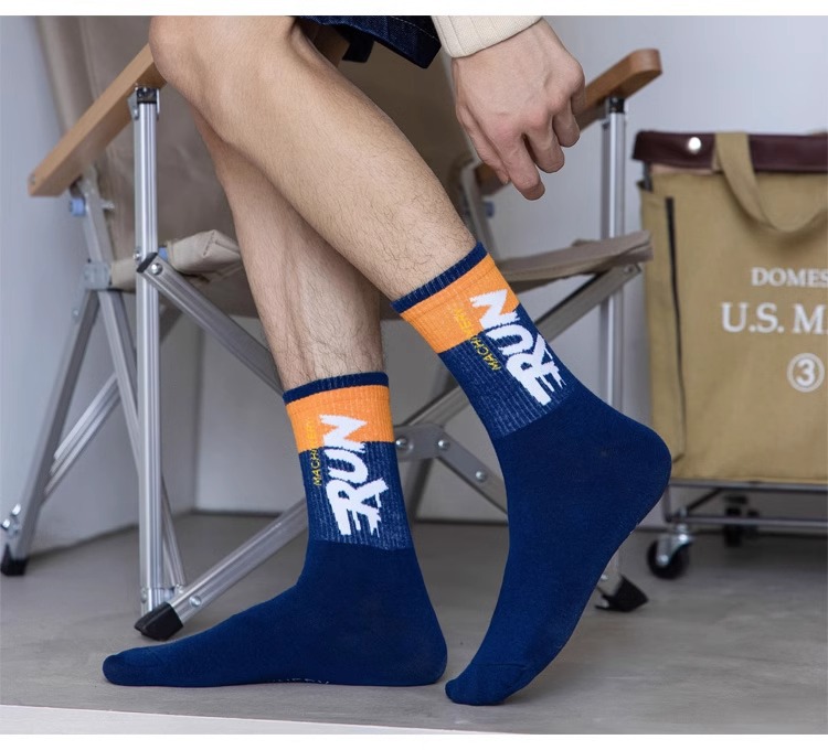 남성용 스포츠 양말, 트렌디한 레터링 양말, 면 소재, 땀 흡수 및 통기성, 청소년 농구 연습용 양말, 가을 겨울용 농구 긴 양말, 편안함스토어 가기