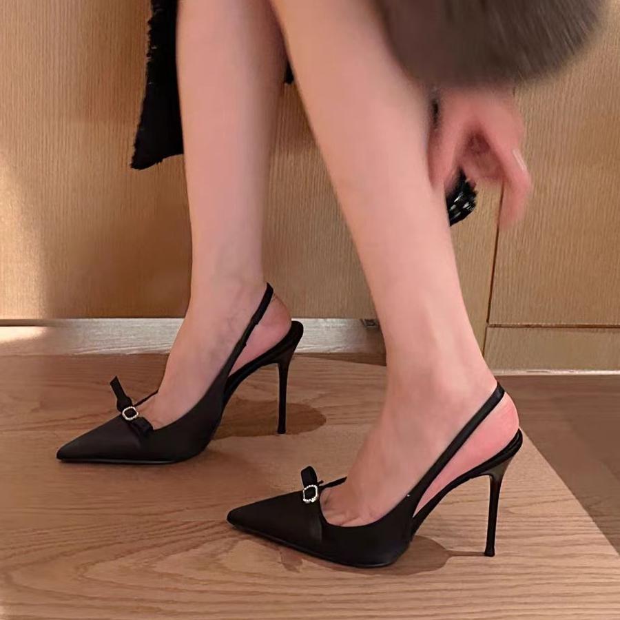 아마존 새로운 기질 신발 대외 무역 도매 얇은 뒤꿈치 빈 뾰족한 여성 신발 블랙 프랑스 전문 하이힐스토어 가기