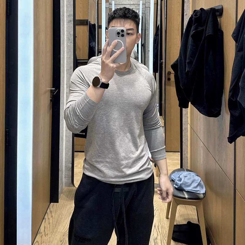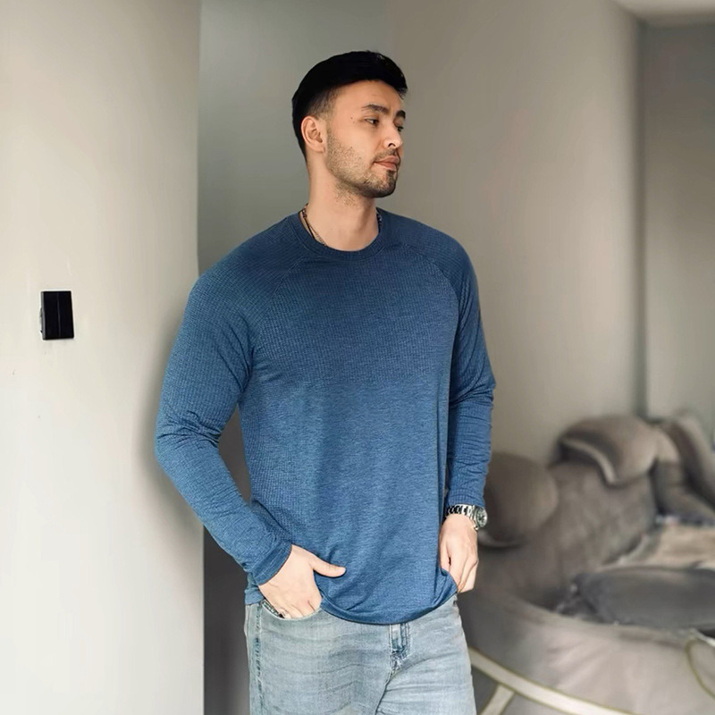 Lu의 남성 스포츠 긴팔 다용도 탑 봄, 가을 새로운 라운드 넥 남성 스포츠 및 레저 통기성 긴팔 티셔츠스토어 가기