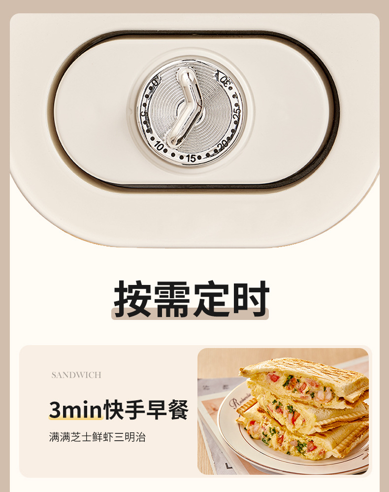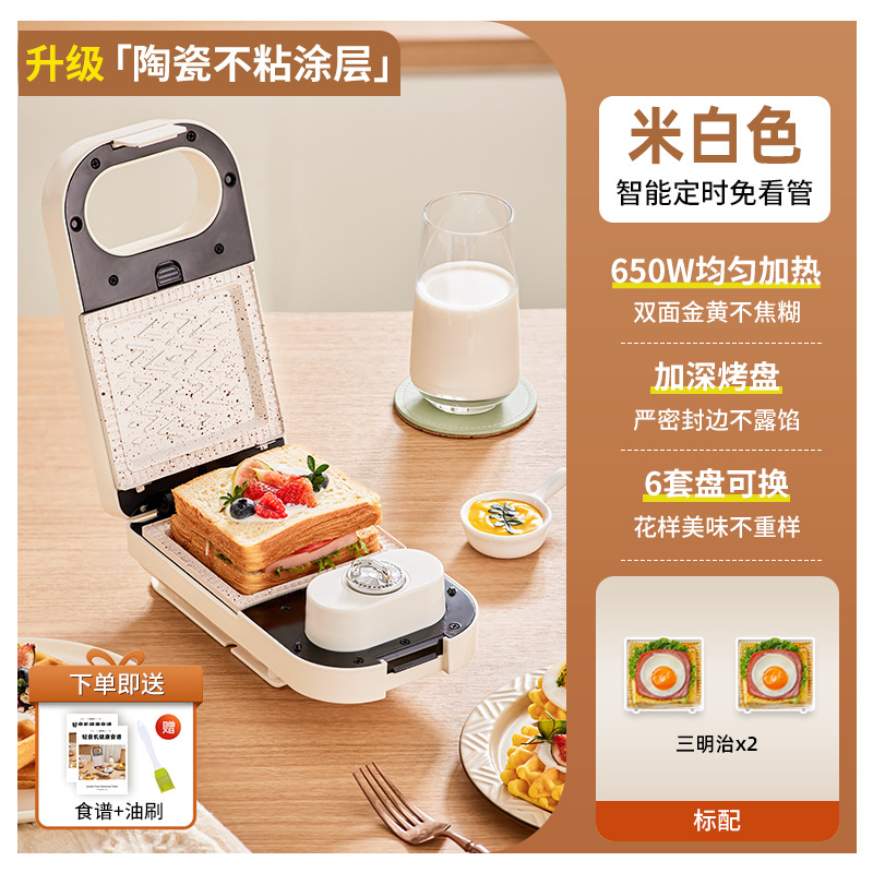 가열식 샌드위치 조식기 타이머 기능 다기능 가정용 소형 토스트 와플 제빵기 샌드위치스토어 가기
