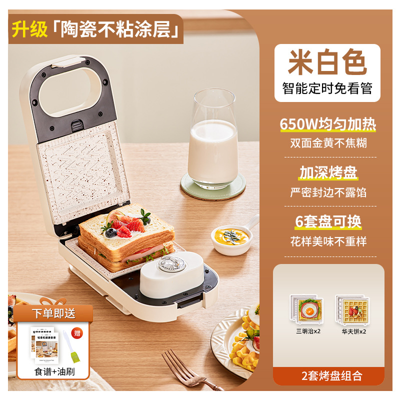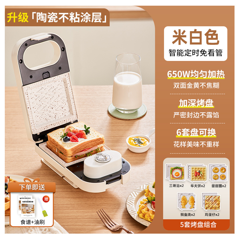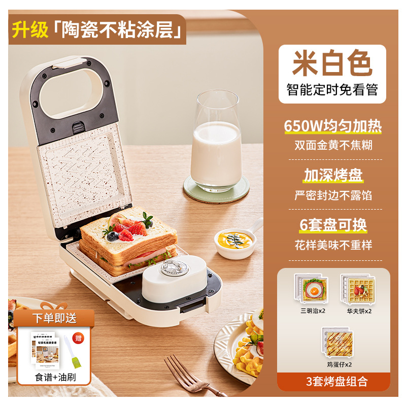 가열식 샌드위치 조식기 타이머 기능 다기능 가정용 소형 토스트 와플 제빵기 샌드위치