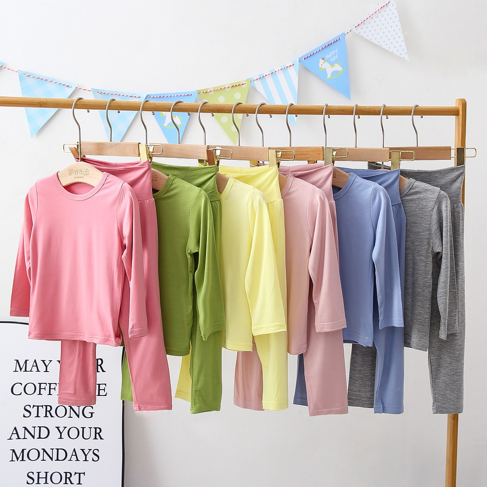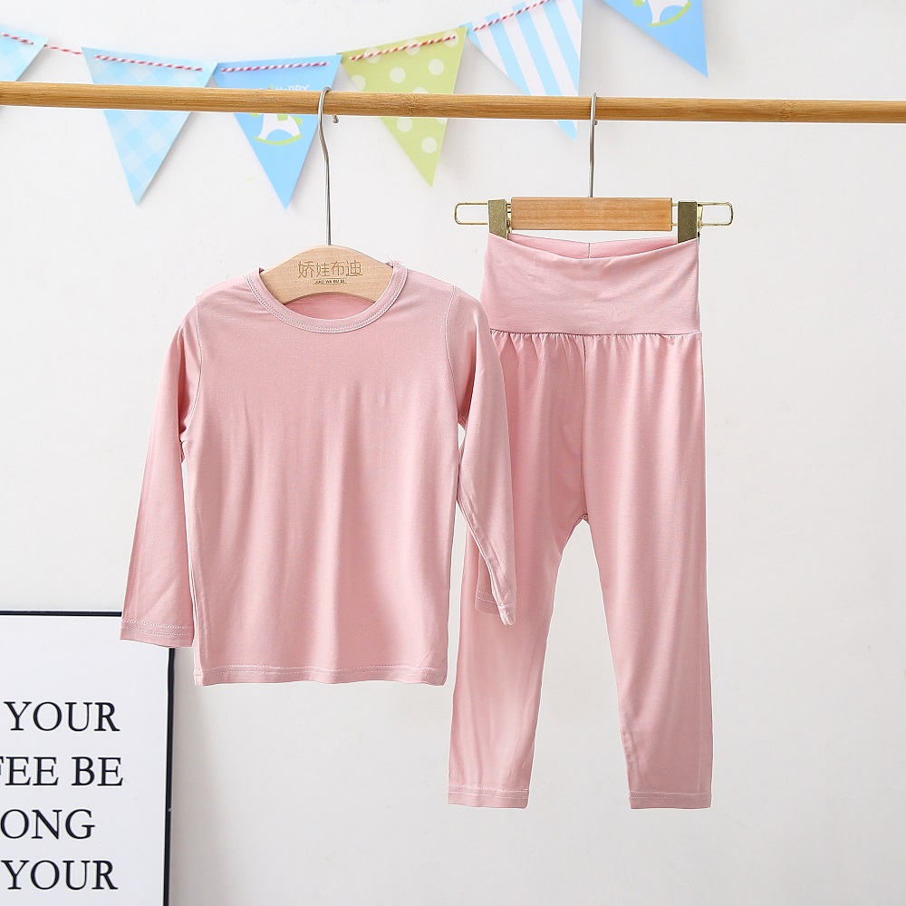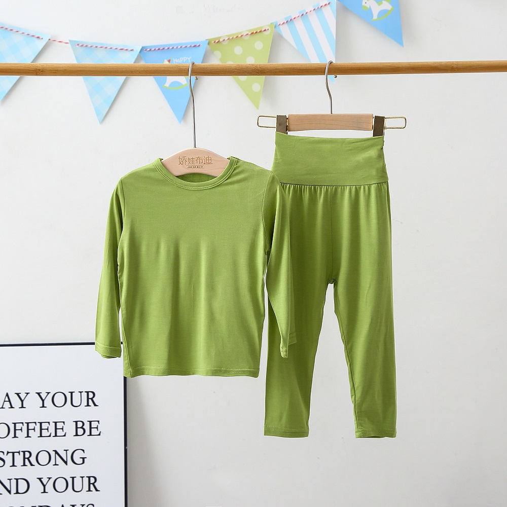 어린이 잠옷 모달 봄과 가을 높은 허리 배꼽 보호 홈 의류 소년 소녀 아기의 가을 옷과 바지 속옷 세트