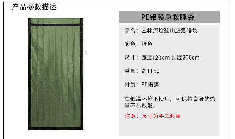 원산지 공장 야외 응급 구명 침낭, 야생 생존용, 국경 간 특별 공급, 26um 두께의 PE 알루미늄 필름 보온 담요