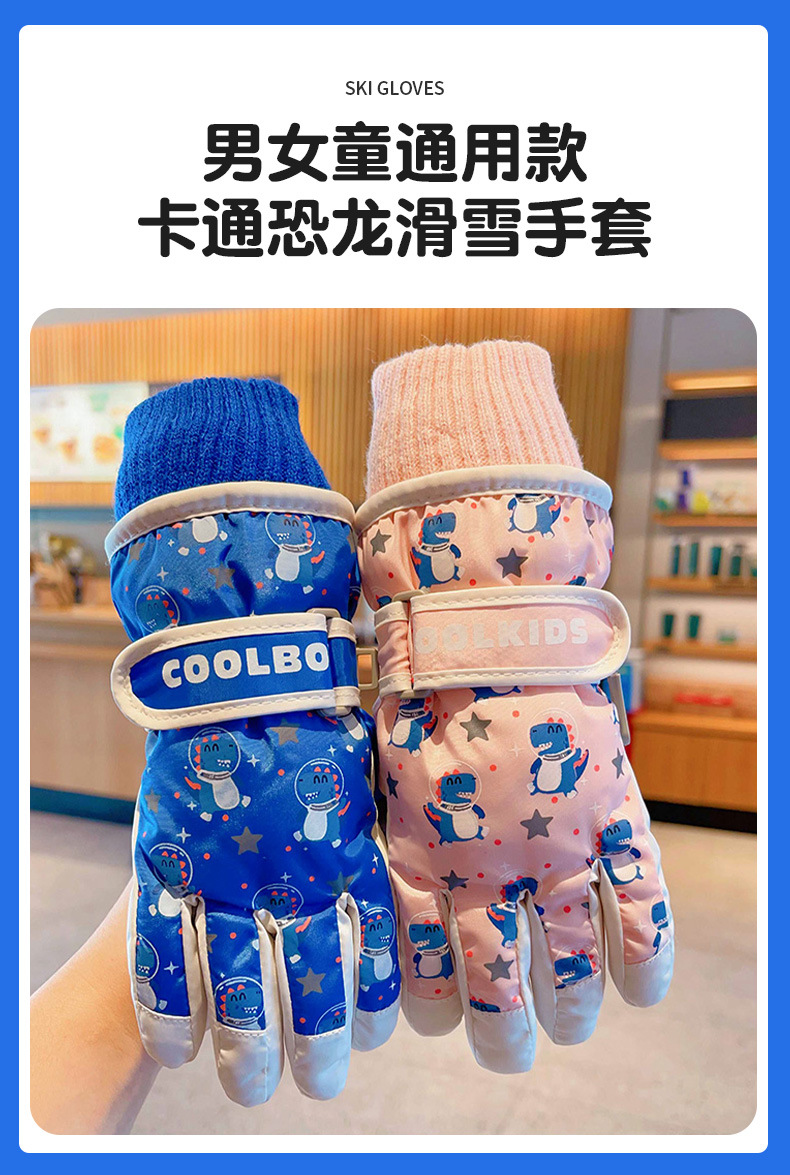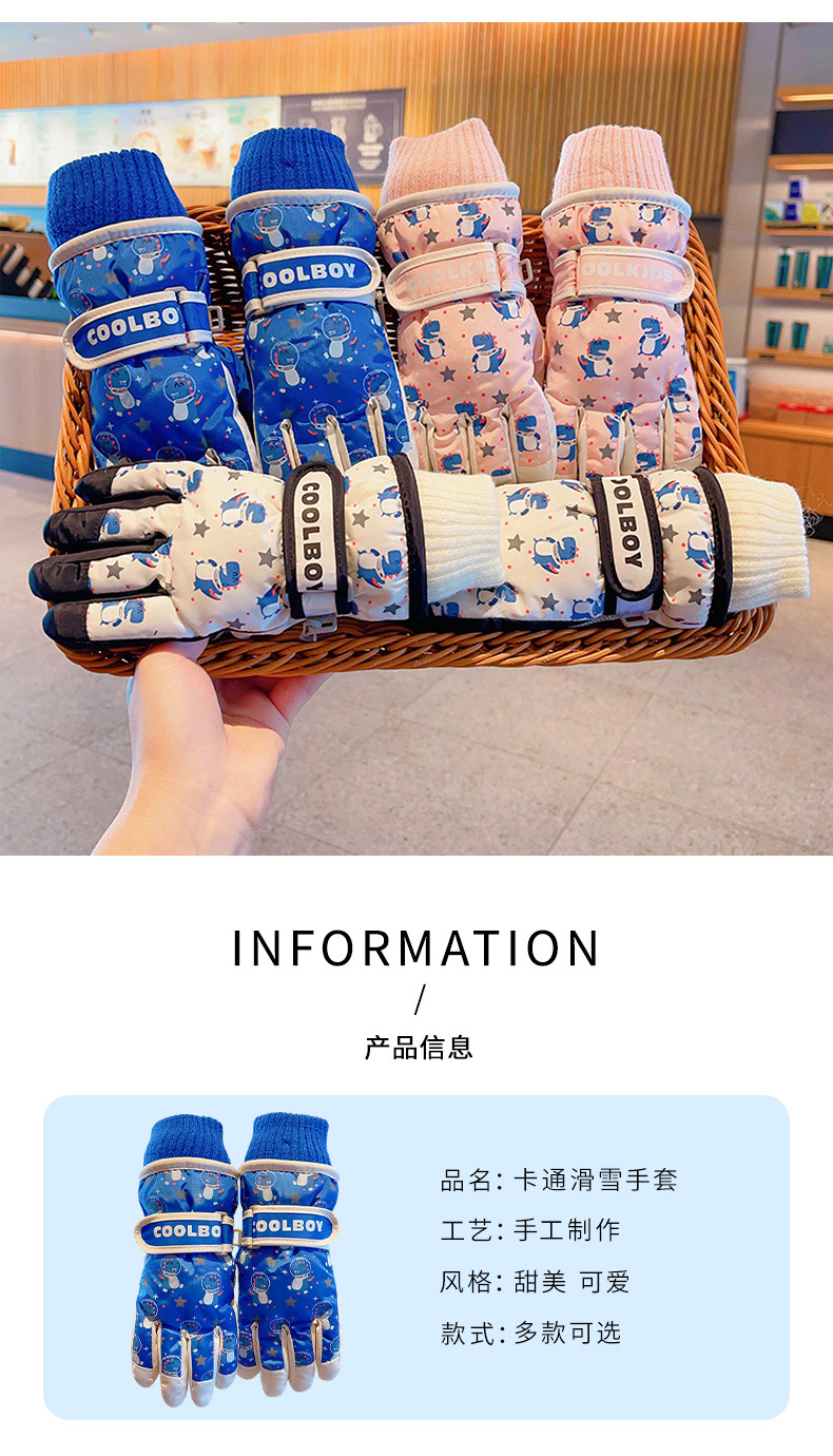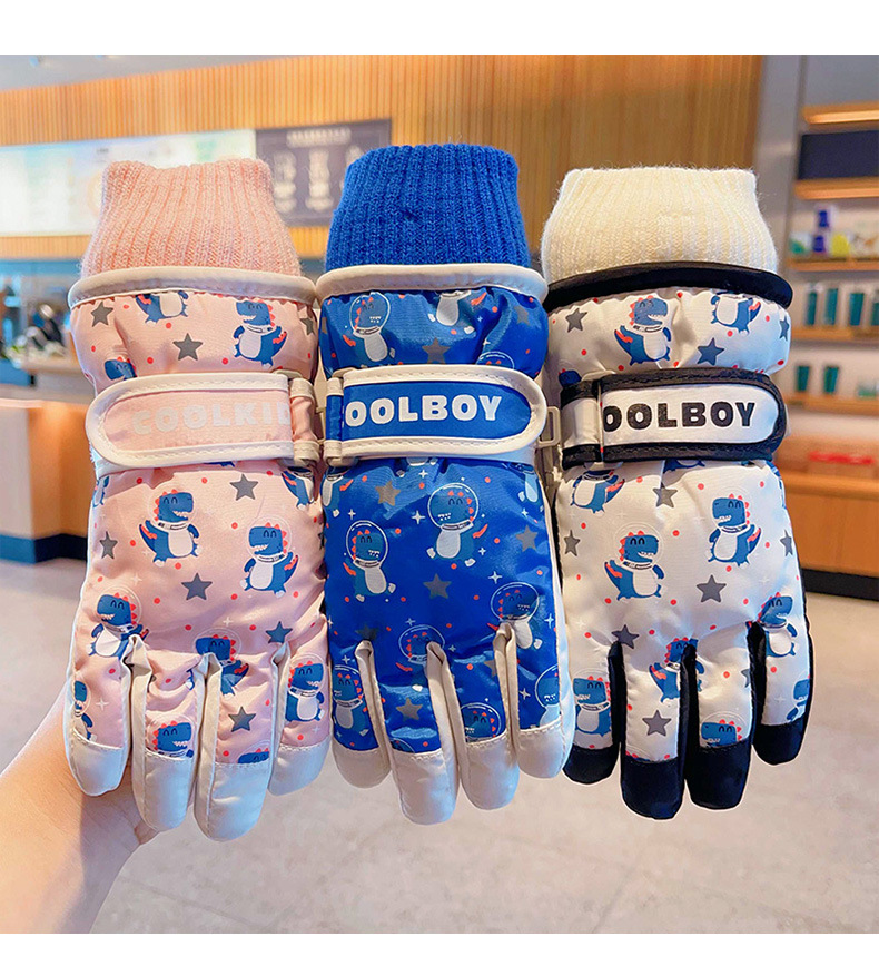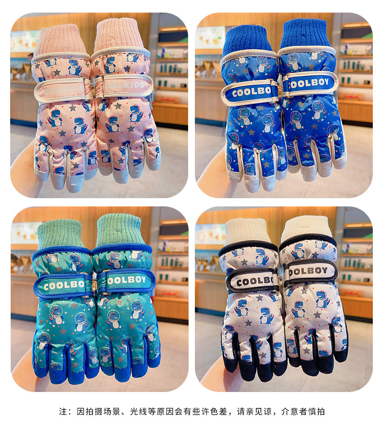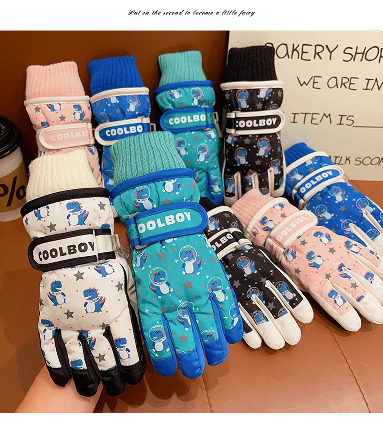 어린이 스키 장갑 봉제 따뜻한 소년 만화 공룡 소녀 방수 부동액 겨울 사이클링 기모 두껍게스토어 가기