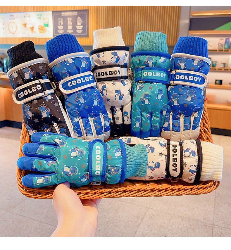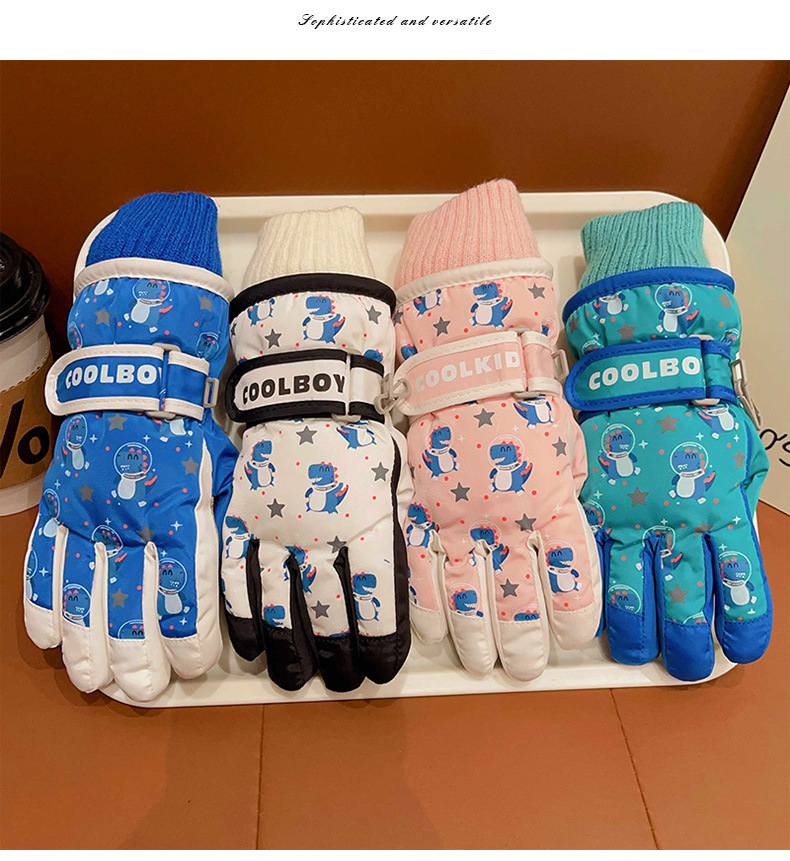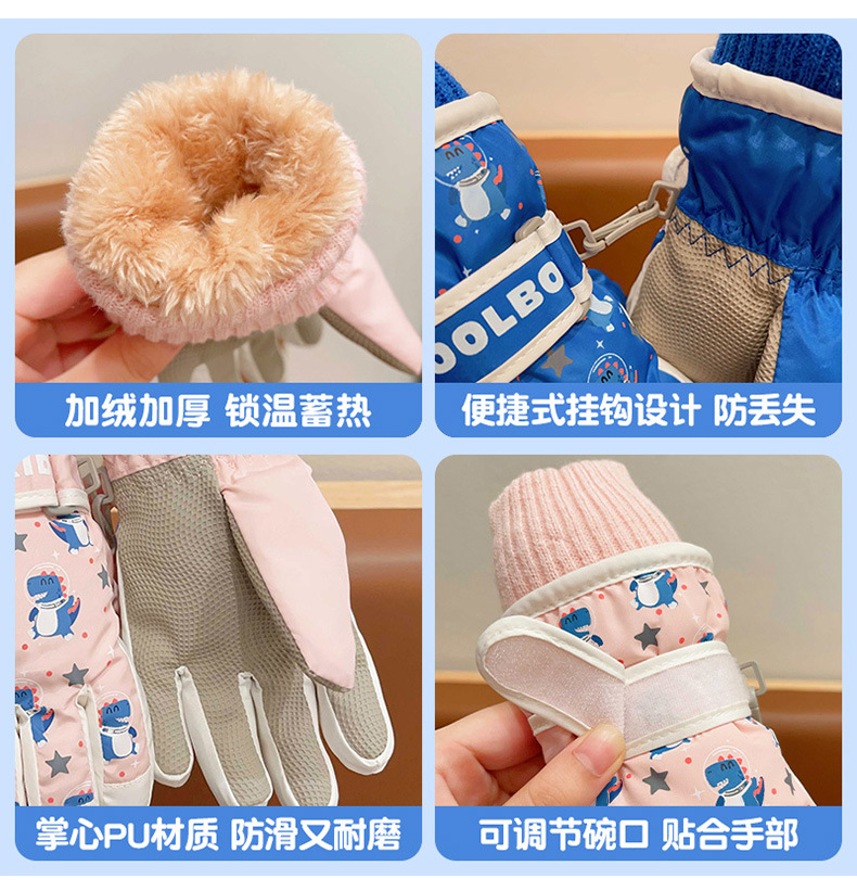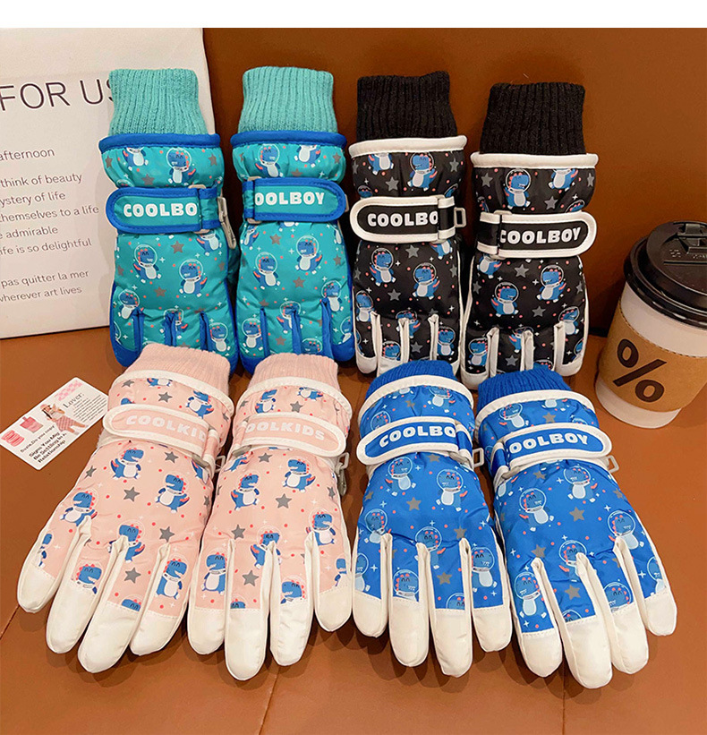 어린이 스키 장갑 봉제 따뜻한 소년 만화 공룡 소녀 방수 부동액 겨울 사이클링 기모 두껍게