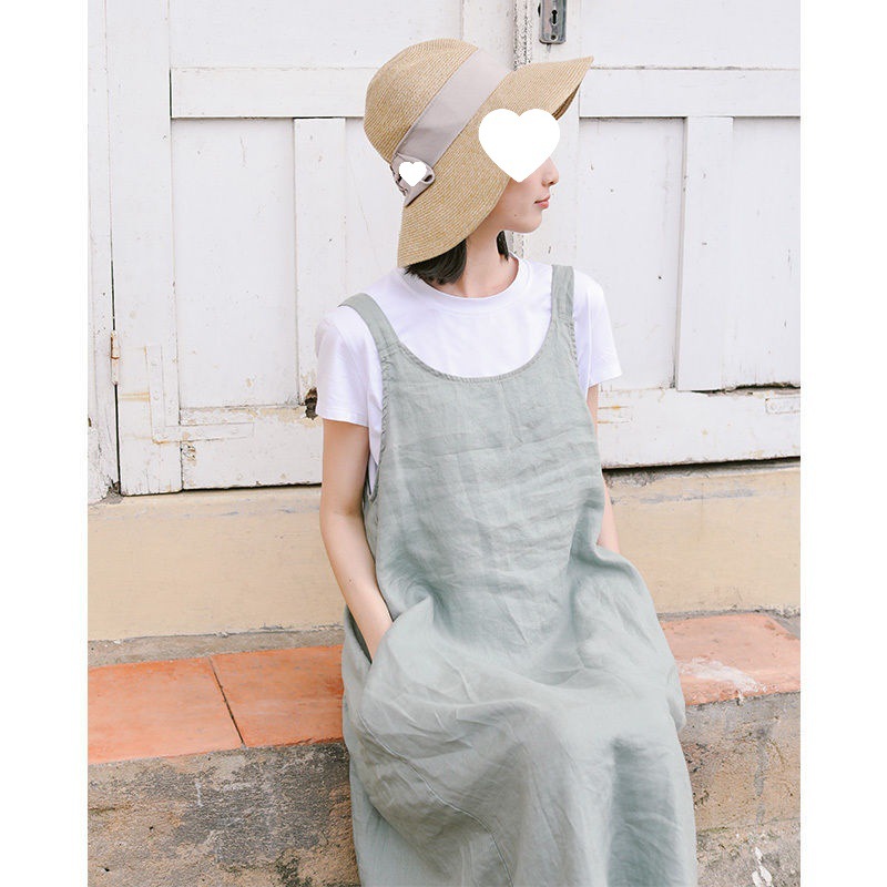 2024 년 여름 뉴 코튼 및 리넨 스트랩 원피스 여성 패션 크로스 보더 틈새 중간 길이 원피스 일본 연령 감소 원피스스토어 가기
