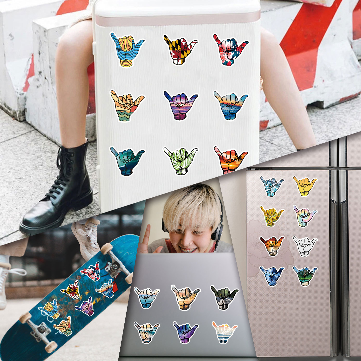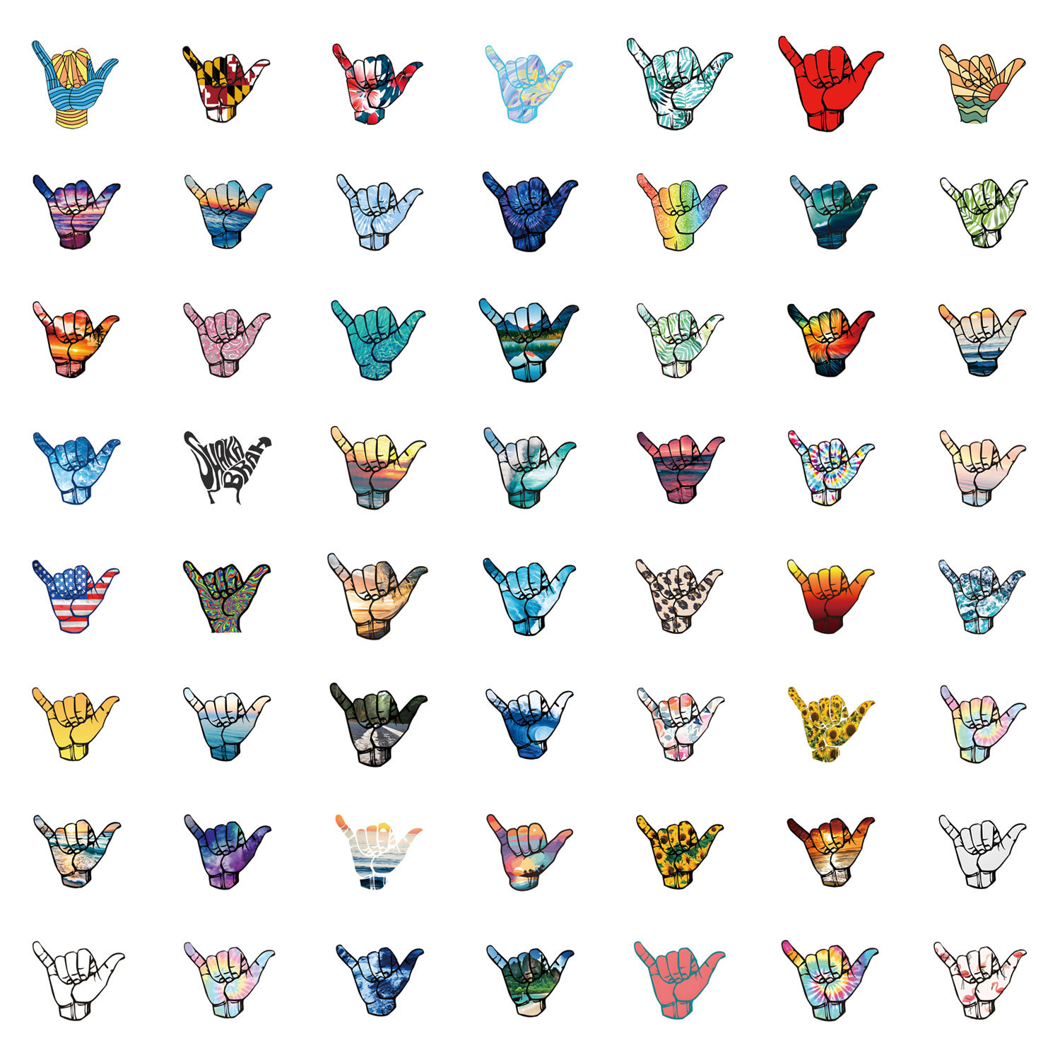 55 새로운 인사말 제스처 Shaka 성격 창조적 인 낙서 스티커 자동차 수하물 스티커 도매스토어 가기