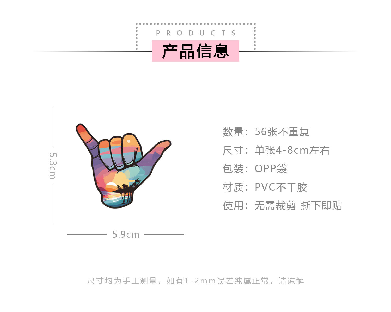 55 새로운 인사말 제스처 Shaka 성격 창조적 인 낙서 스티커 자동차 수하물 스티커 도매