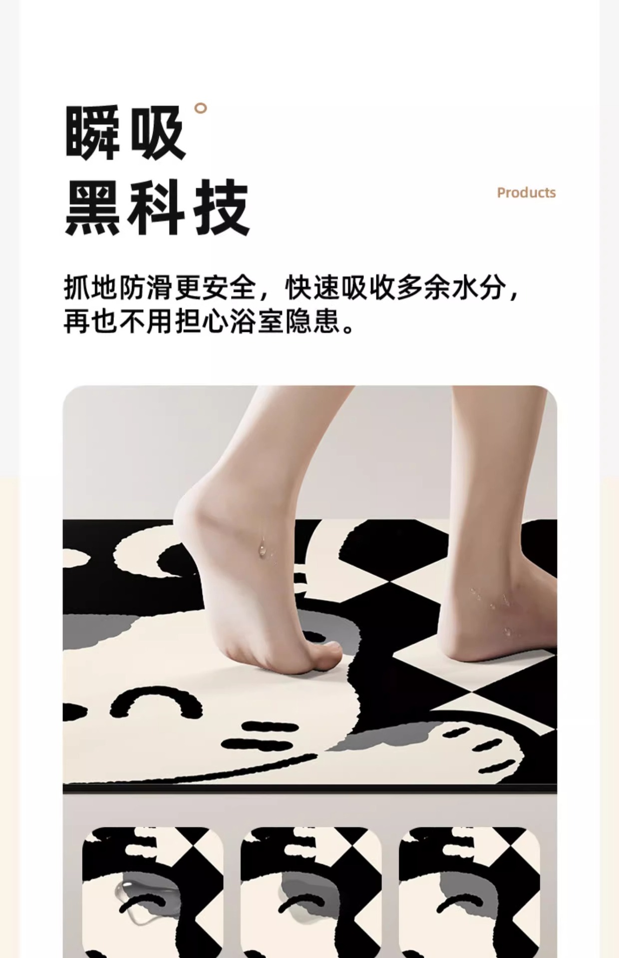만화 욕실 바닥 매트 슈퍼 흡수성 욕실 문 미끄럼 방지 매트 가정용 먼지 방지 쉬운 Diatom 진흙 바닥 매트스토어 가기
