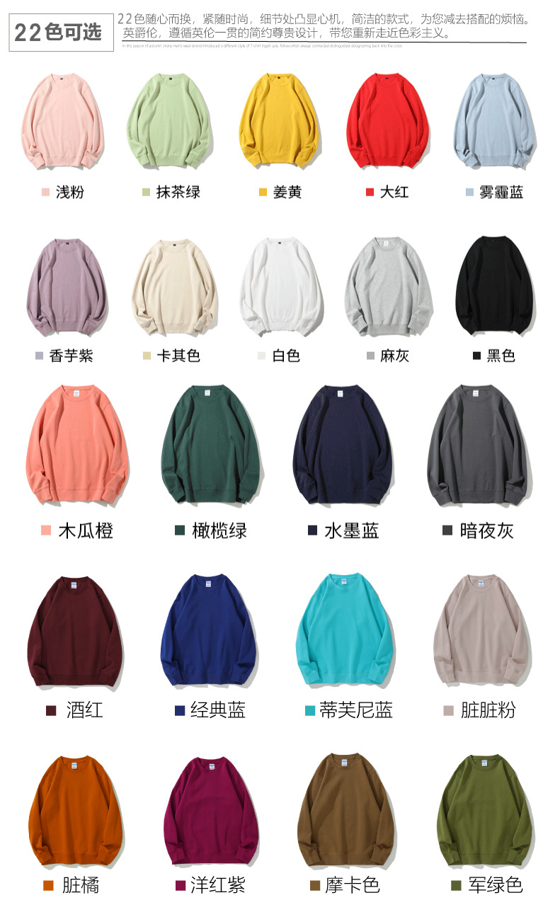 남성용 맞춤형 300g 솔리드 컬러 라운드 넥 스웨트 셔츠, 오프 숄더 루즈 클래스 유니폼, 그룹 유니폼, 커플 스타일 프린트 로고 작업복