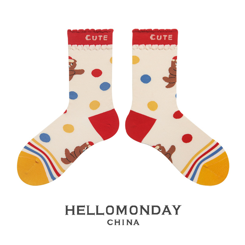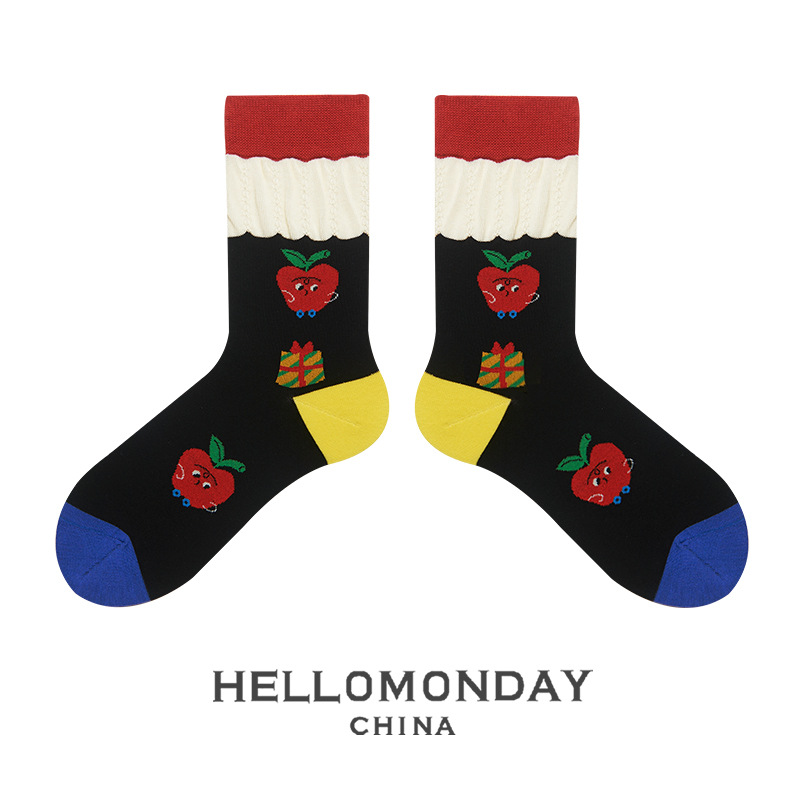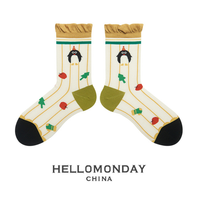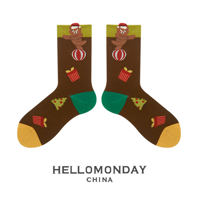85368 Zhuji 양말 여성의 가을과 겨울 2024 새로운 폭발 중간 양말 뼈없는 면 양말 만화 귀여운 크리스마스
