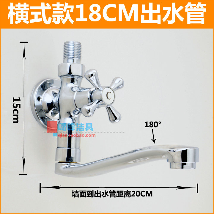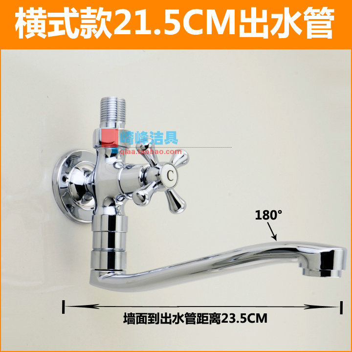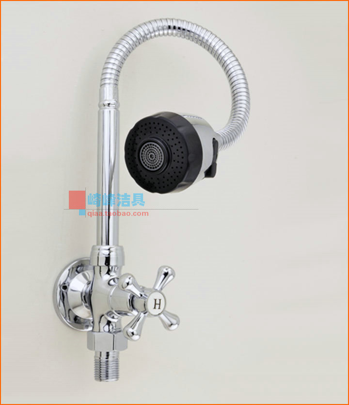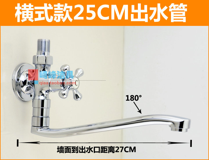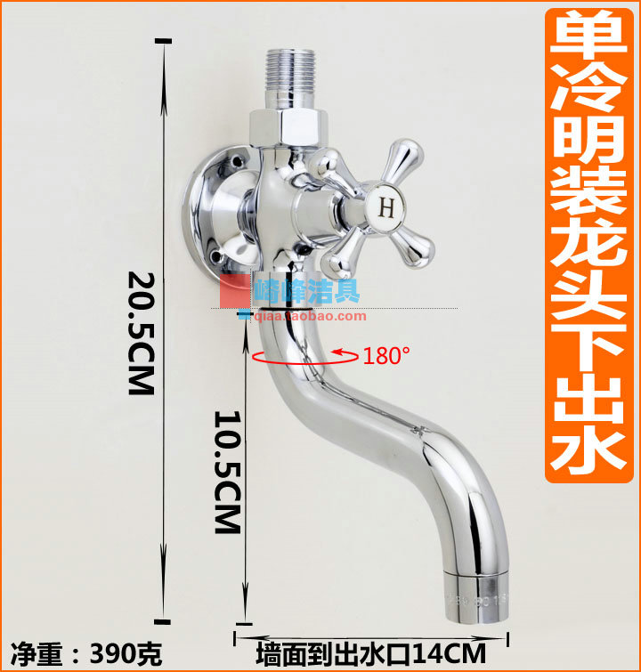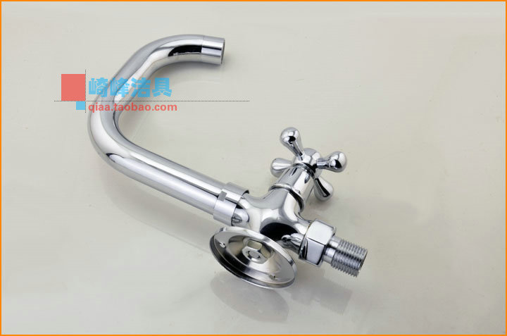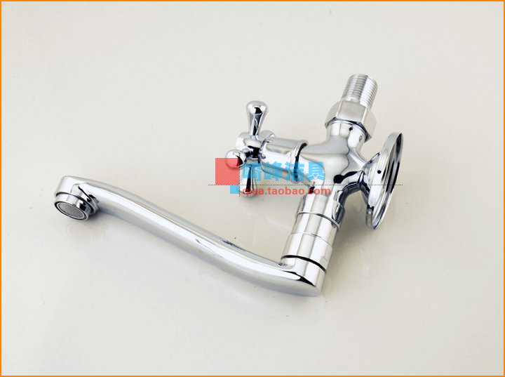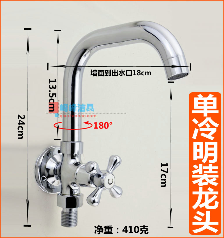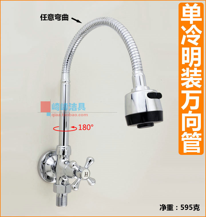 모든 구리 단일 물 주방 접시 분지 싱크대 차가운 수도꼭지 벽걸이 세척 수영장 발코니 수평 오픈 튜브 4 점스토어 가기