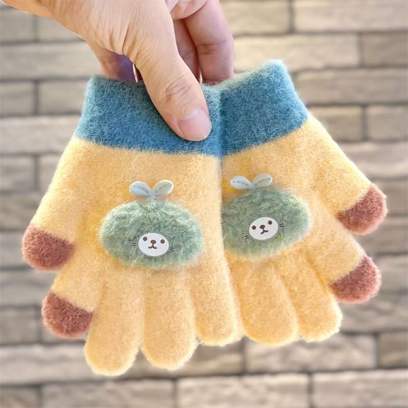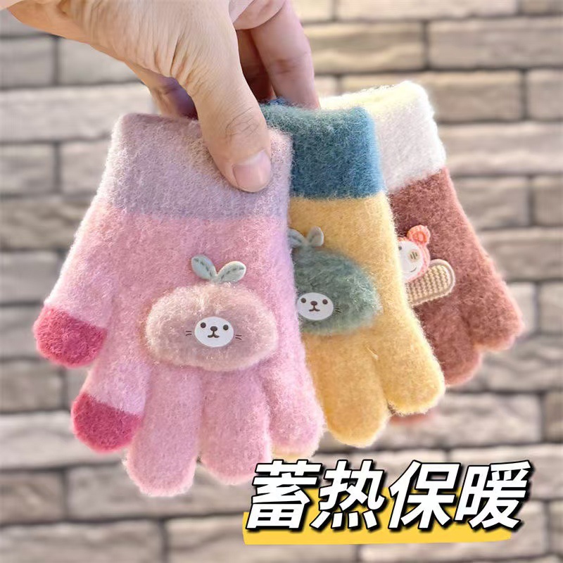 새로운 어린이 장갑 가을과 겨울 귀여운 아기 따뜻한 방한 장갑 소년 소녀를위한 모든 것을 포함하는 5 손가락 손가락 손가락 장갑