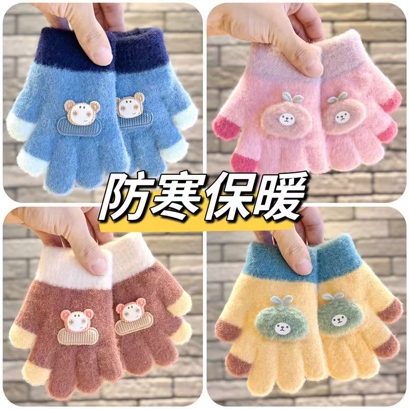 새로운 어린이 장갑 가을과 겨울 귀여운 아기 따뜻한 방한 장갑 소년 소녀를위한 모든 것을 포함하는 5 손가락 손가락 손가락 장갑스토어 가기