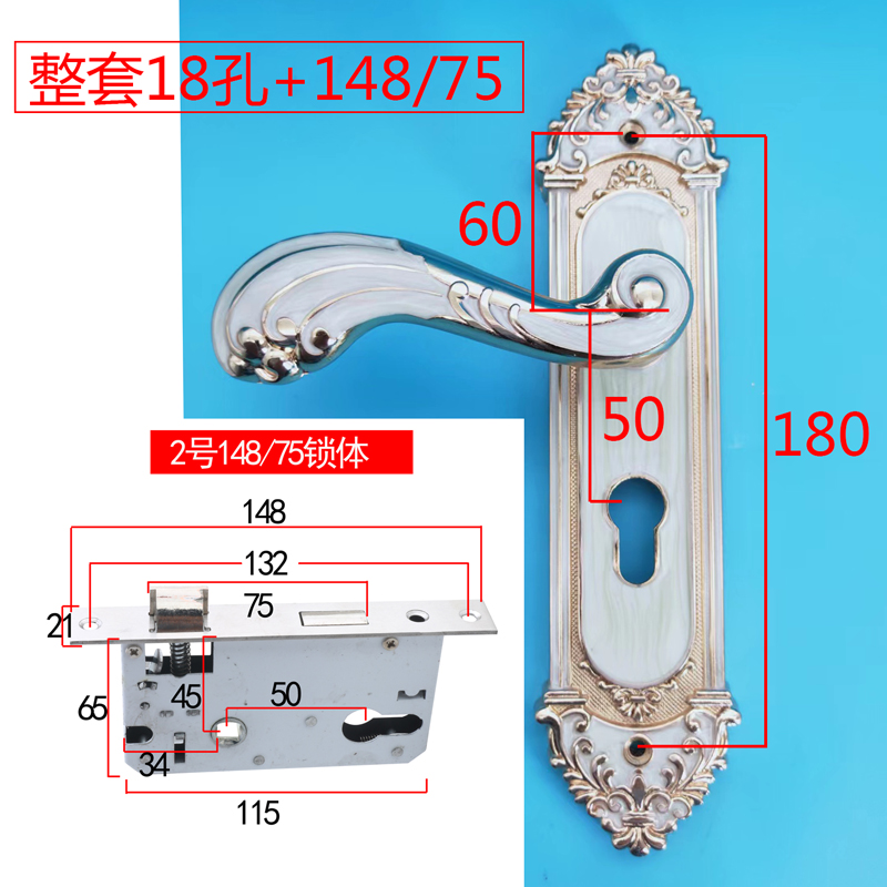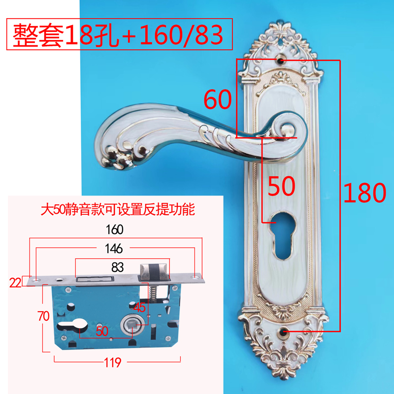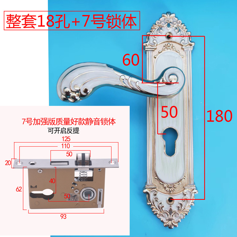 가정용 유럽식 화이트 룸 도어 잠금 침실 구식 나무 도어 핸들 잠금 핸들 크기 50 잠금 바디 18 홀