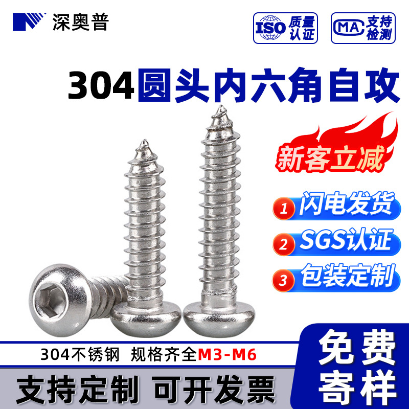 304 스테인리스 둥근 머리 육각형 소켓 셀프 태핑 나사 M3-M6 버섯 머리 육각형 소켓 기계 나사 작은 나사스토어 가기