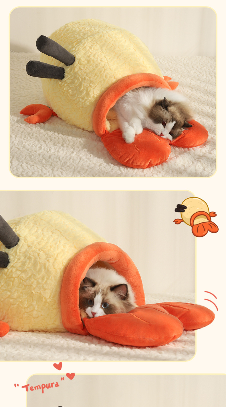 Meow Xiaoyuan | 튀긴 새우 고양이 둥지 닫힌 고양이 잠자는 가방 고양이 둥지 겨울 따뜻한 매트 고양이 잠자는 개 둥지 겨울