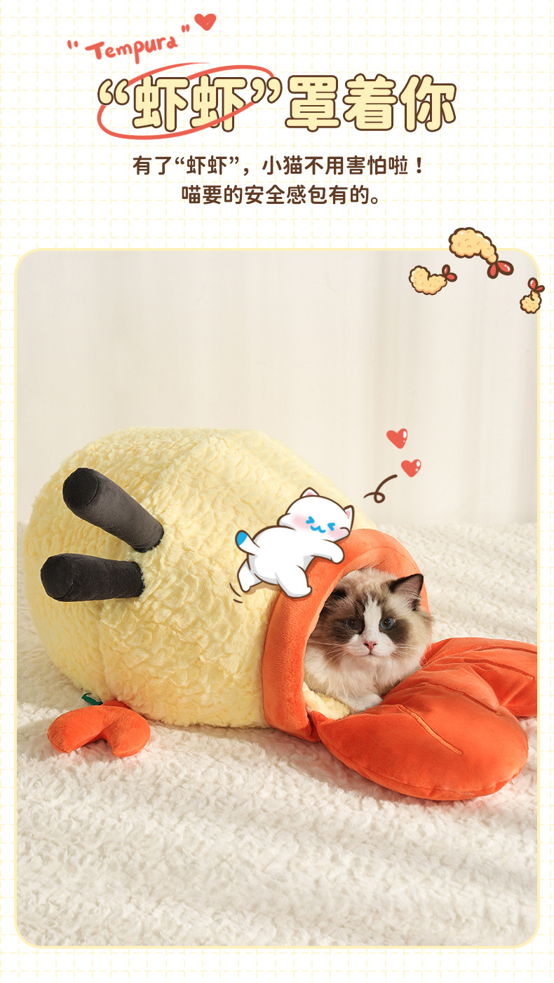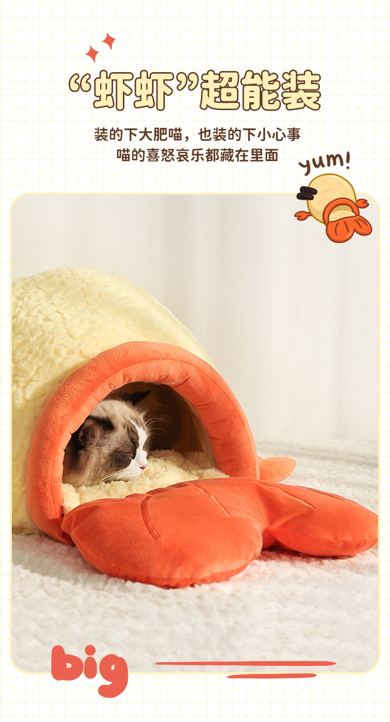 Meow Xiaoyuan | 튀긴 새우 고양이 둥지 닫힌 고양이 잠자는 가방 고양이 둥지 겨울 따뜻한 매트 고양이 잠자는 개 둥지 겨울스토어 가기
