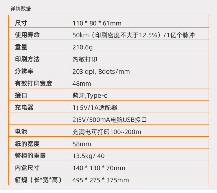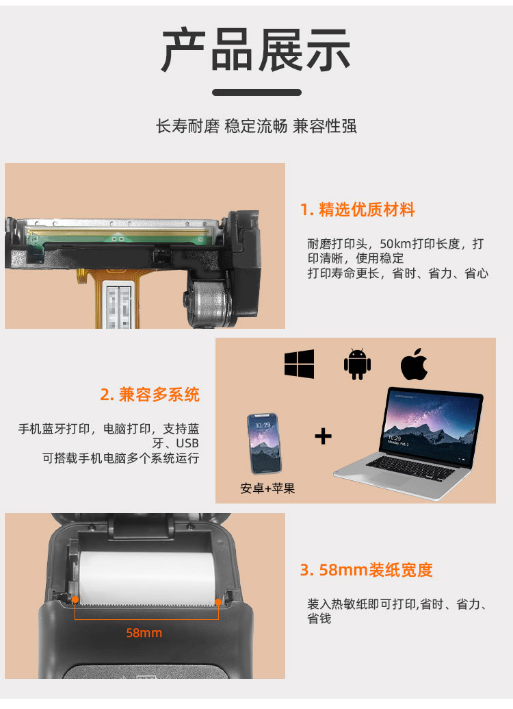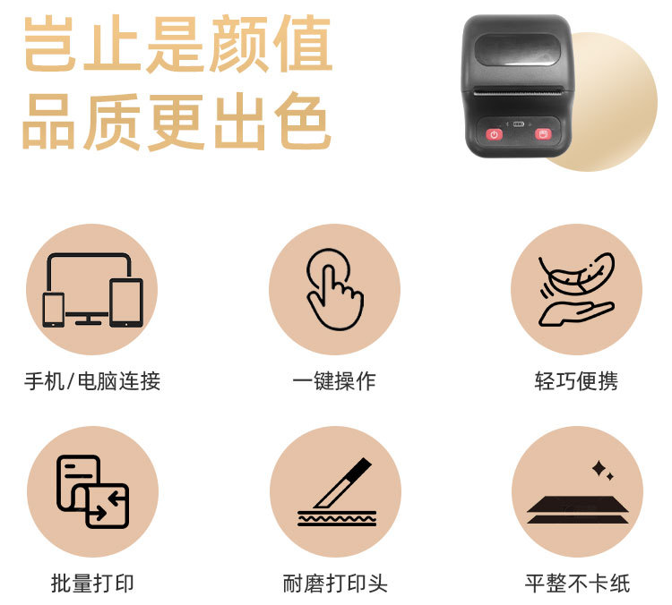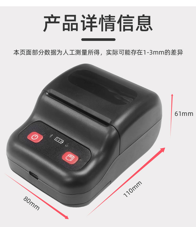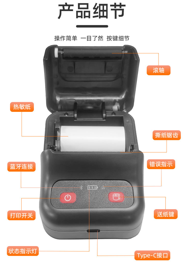 - 支持蓝牙功能,支持Android,iOS和Windows,方便您无线打印设备中的数据