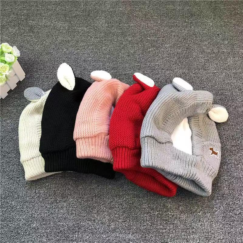 가을, 겨울 어린이 모자 만화 강아지 귀 모직 모자 플러스 벨벳 아기 모자 아기 모자 따뜻한 풀오버 모자
