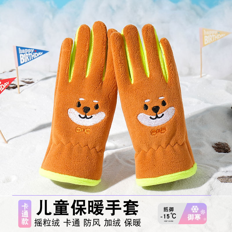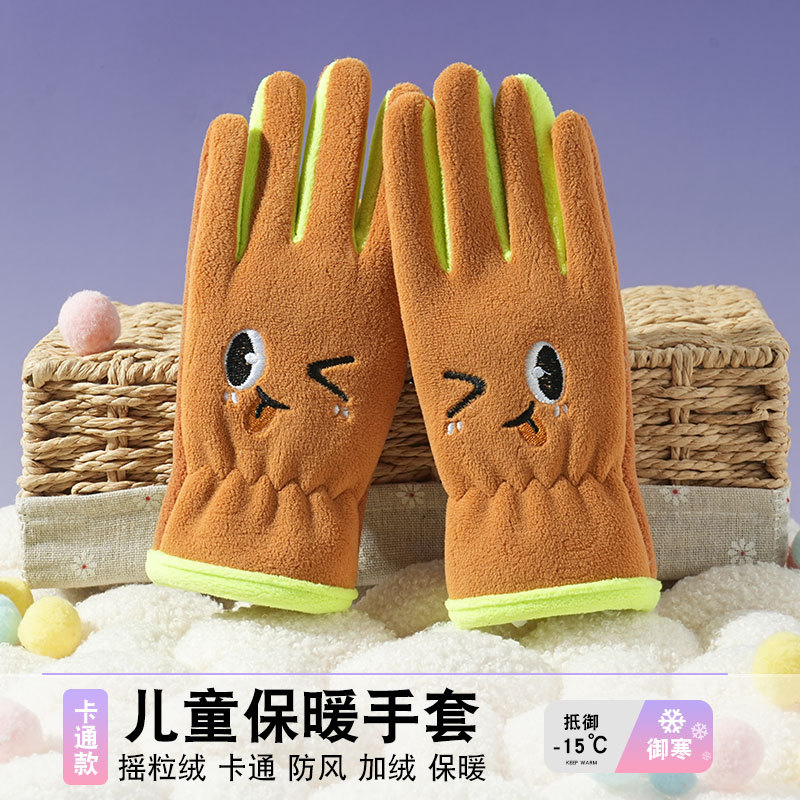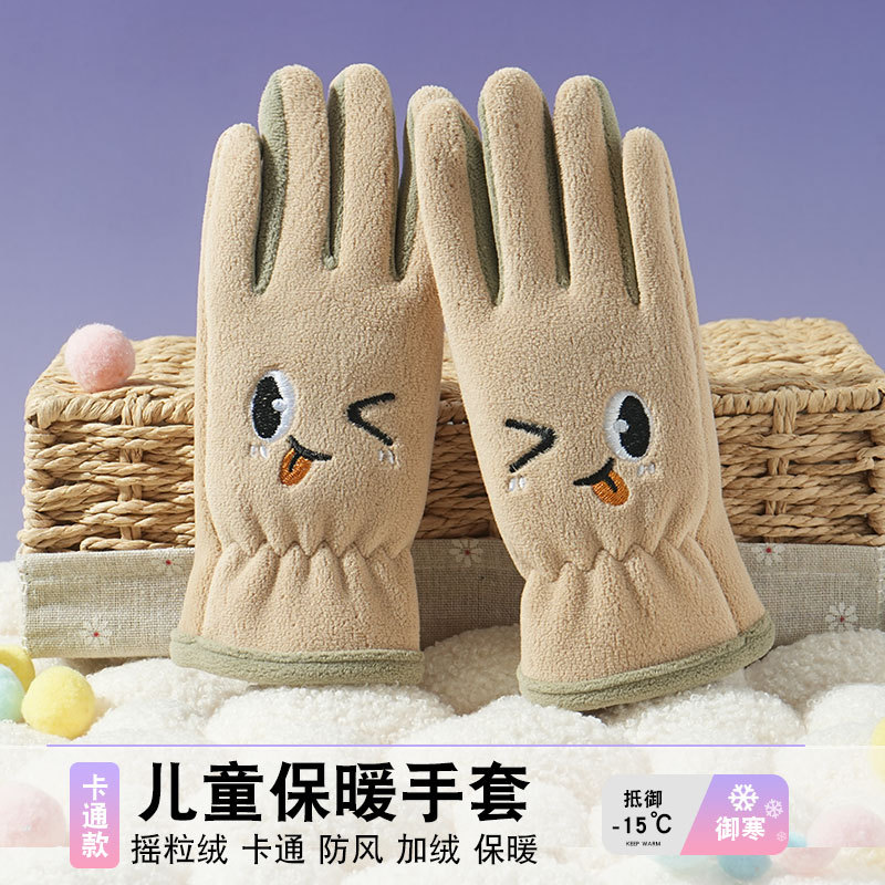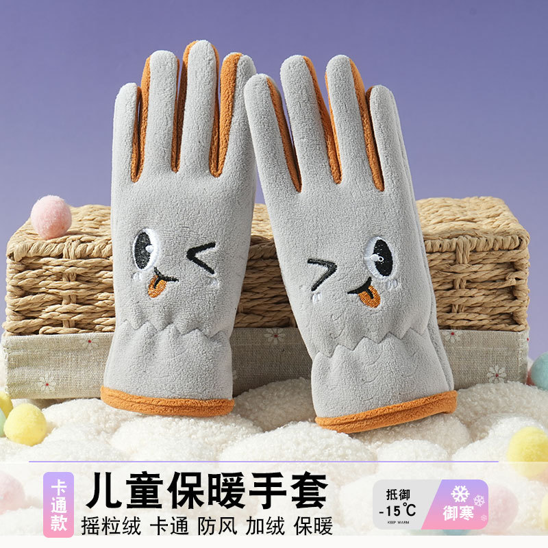 어린이 장갑 가을과 겨울 새로운 귀여운 만화 양털 따뜻한 야외 감기 방풍 학생 승마 서리 방지