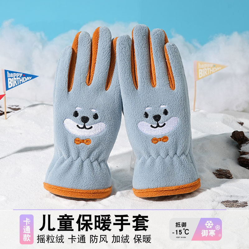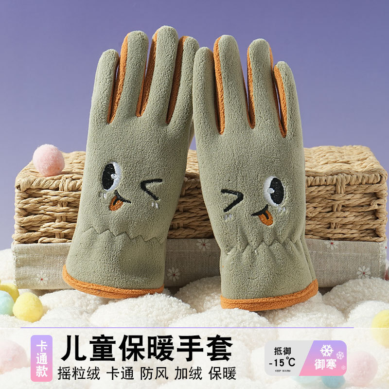 어린이 장갑 가을과 겨울 새로운 귀여운 만화 양털 따뜻한 야외 감기 방풍 학생 승마 서리 방지스토어 가기