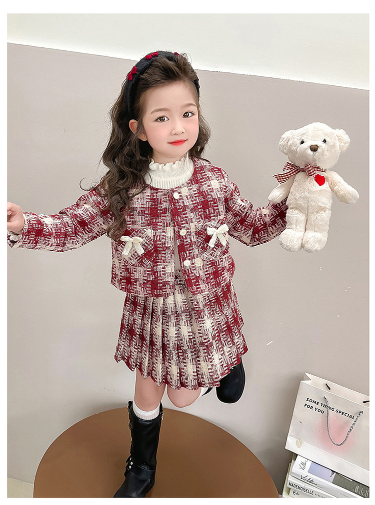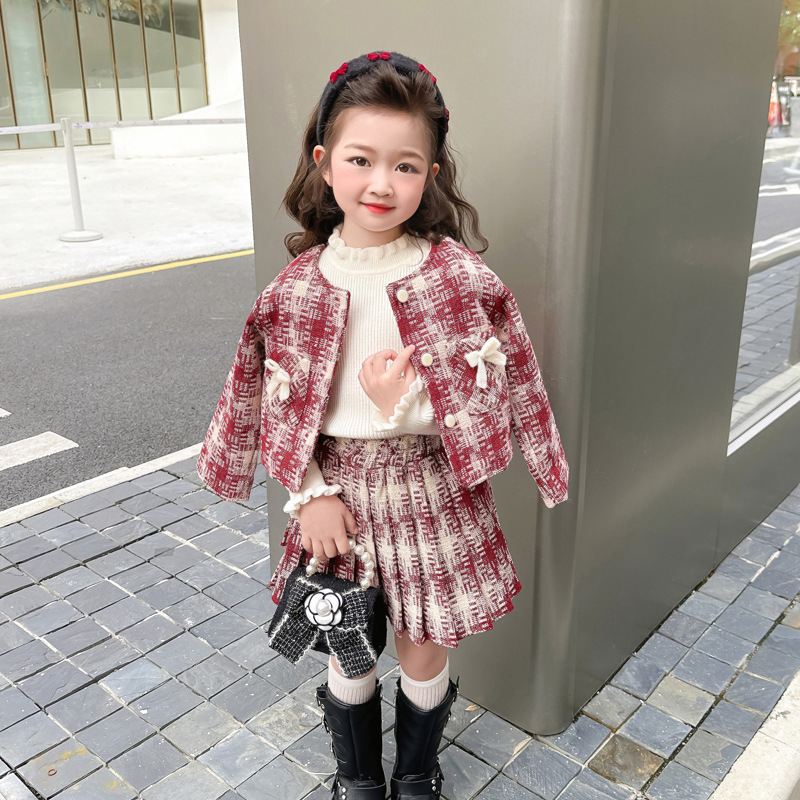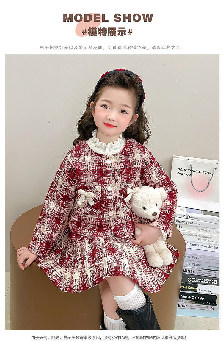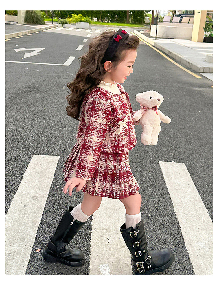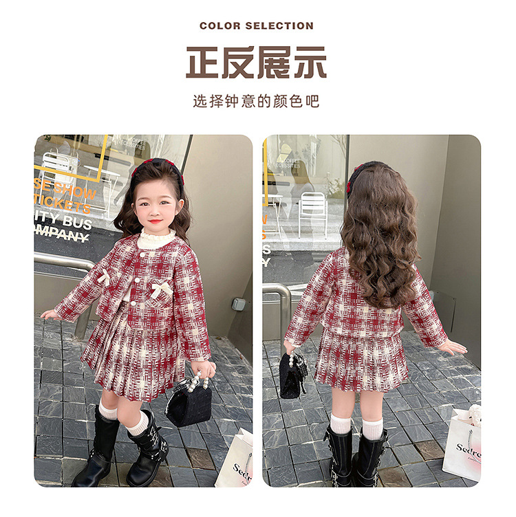 여아용 작은 프랑스 스타일 투피스 세트 가을 겨울 2025 신상 패션 여아용 누빔 두꺼운 세트 중소 어린이용스토어 가기